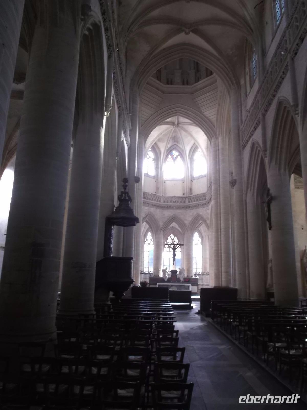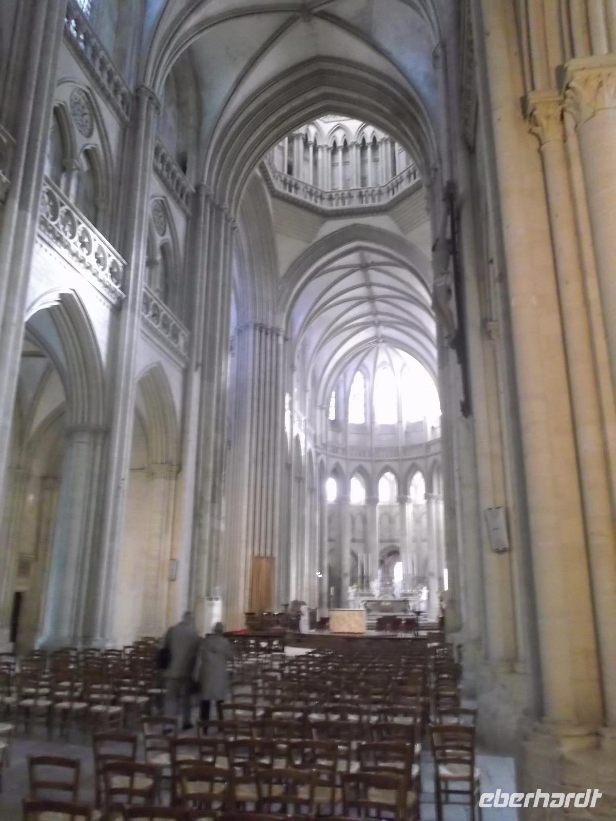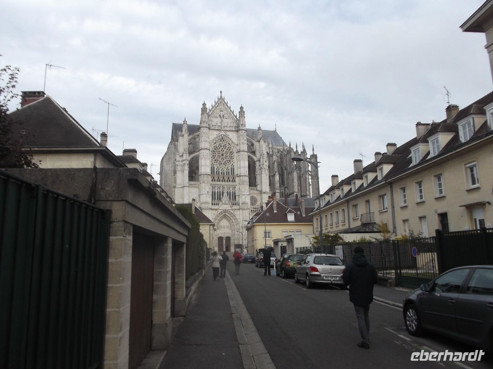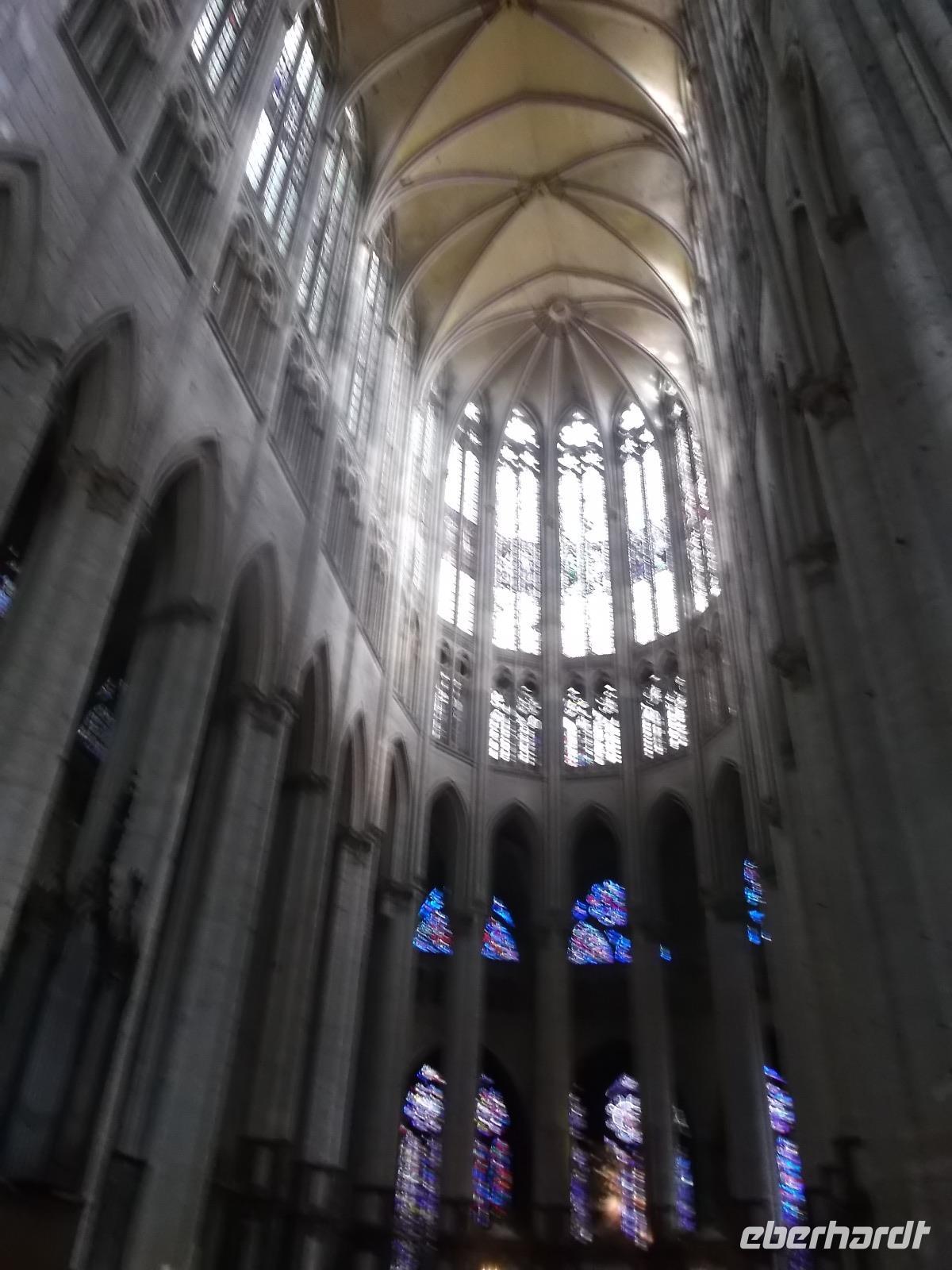 Nach unserem Aufenthalt verließen wir die Küste und fuhren ins Landesinnere. Nur noch ein Programmpunk blieb, bevor es endgültig in Richtung Heimat gehen würde. Da hatten wir die Normandie bereits verlassen und hielten an in Beauvais. Die alte Bischofsstadt wird dominiert von ihrer niemals fertiggestellten Kathedrale. Obwohl das Mitte des 13. Jh. begonnene Bauwerk nur aus Querschiff und Chor mit Apsis und Seitenkapellen besteht, zieht dieses Wunderwerk der Gotik alljährlich hunderttausende Touristen an. Der Grund dafür - und der führte auch uns hierher - ist die Tatsache, dass hier das höchste gotische Gewölbe der Welt existiert. Mit 48,50 m Höhe versetzt es nicht nur Besucher Statiker in Erstaunen, es läßt auch erahnen, wie unglaublich gewaltig das Bauwerk auf die Gläubigen des Mittelalters gewirkt haben muss. Selbst die etwas früher gebaute Kathedrale von Amiens, der größte Sakralbauwerk Frankreichs, die das zweithöchste Gewölbe hat, kann hier nicht mithalten.