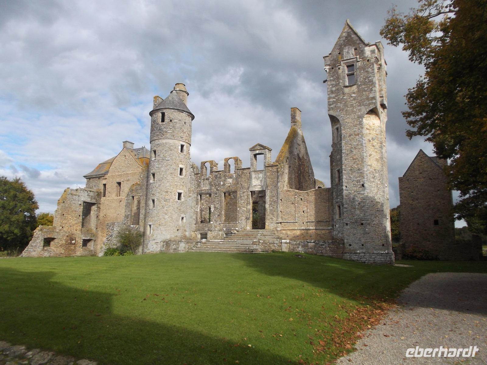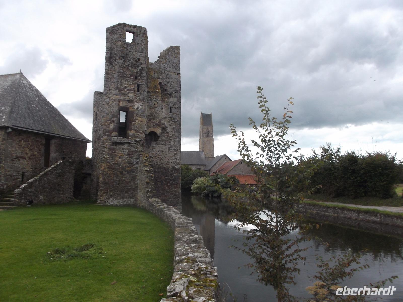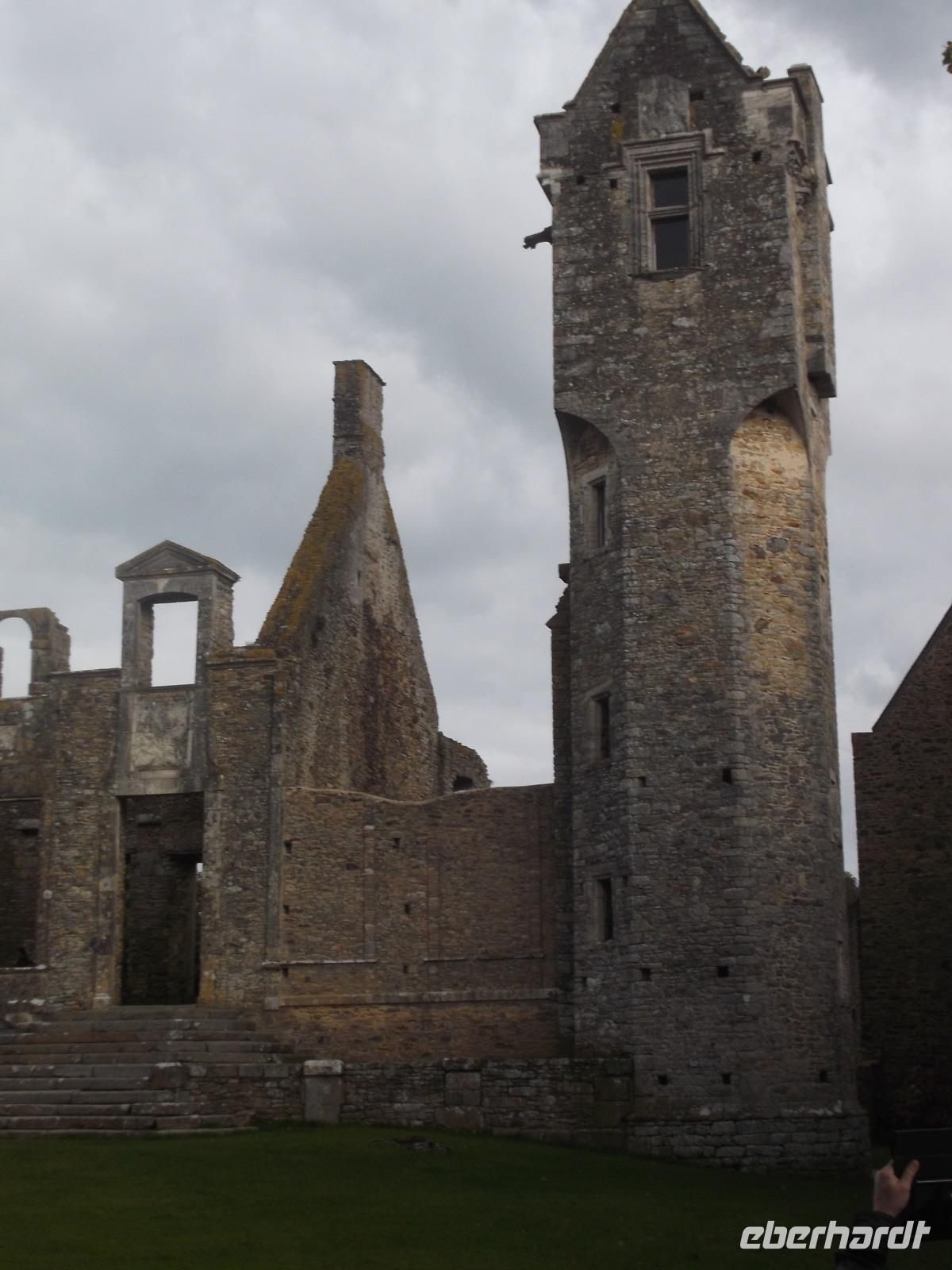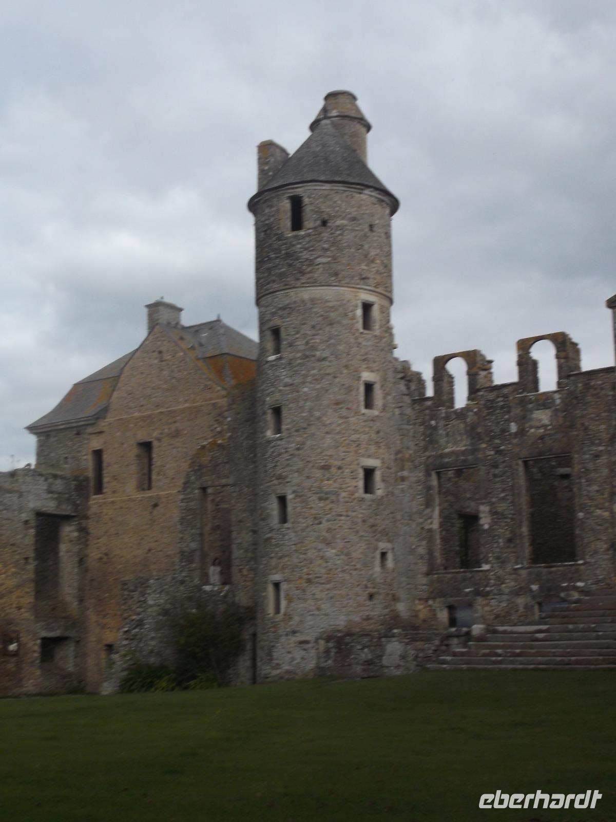 Unser erstes Ziel war das 9000 Einwohner-Städtchen Coutances, dessen Bisschof im Mittelalter große Bedeutung und viel Einfluss besaß. Ein Kampfgefährte Wilhelm des Eroberers hatte Coutances im 11. Jh. neu erstehen lassen und der Ort wurde zu einem der geistlichen Zentren des anglo-normannischen Gebietes, denn England und die Normandie waren ja nach 1066 in gleichem Besitz. So bekam die kleine Stadt ihre mächtige Kathedrale, beide liegen relativ zentral im Cotentin, jenem Felsensporn der als Halbinsel in den Ärmelkanal hineinragt. Wir besuchten zunächst die imposante Kirche Saint Pierre, die nahezu genauso zentral in der Stadt liegt wie die Kathedrale und - in der Romanik begonnen - heute vor allem Züge der Gotik und der Frührenaissance aufweist. Zu der Zeit, in der auch die Schlacht bei Hastings stattfand, entfalteten die Bischöfe in Coutance gewaltige Bautätigkeiten, in deren Verlauf dann die wuchtige Kathedrale in normannischer Architektur entstand. Trotz späterer Gotisierung beeindruckt der Kirchenbau noch heute durch seine schwere, kantige Formgebung, die noch viel vom ursprünglichen Baueindruck verrät. Der Vierungsturm weist noch die Wuchtigkeit des frühen Baues auf, da er etwa 20 m niedriger ist als die graziler wirkenden Türme der Westfassade zum Markt hin. Im Inneren der Kathedrale konnten wir erkennen, dass ihre Gotisierung tatsächlich zu großen Fenstern geführt hat, die den gewaltigen Innenraum sehr hell wirken ließen. Wir hatten noch etwas Freizeit, um uns im Städtchen, an dessen Marktplatz die Kathedrale steht, noch etwas umzusehen, bevor wir mit dem Bus zur nahegelegenen malerischen Ruine des Schlosses Gratot weiterfuhren. Lange Zeit war die ehemalige Wasserburg in Familienbesitz und ihre Reste vermitteln einen Eindruck vom Leben des normannischen Adels vom Mittelalter bis zur französischen Revolution. Ihre verschiedenen Bauten - vom wuchtigen Turm aus dem 13. Jh. über den Rundturm aus dem 15. Jh. bis hin zum Pavillion aus dem 18. Jh. - dem einzigen restaurierten und mit Dach versehenen Teil der Burgruine - erzählen die bewegte Geschichte des Bauwerks.