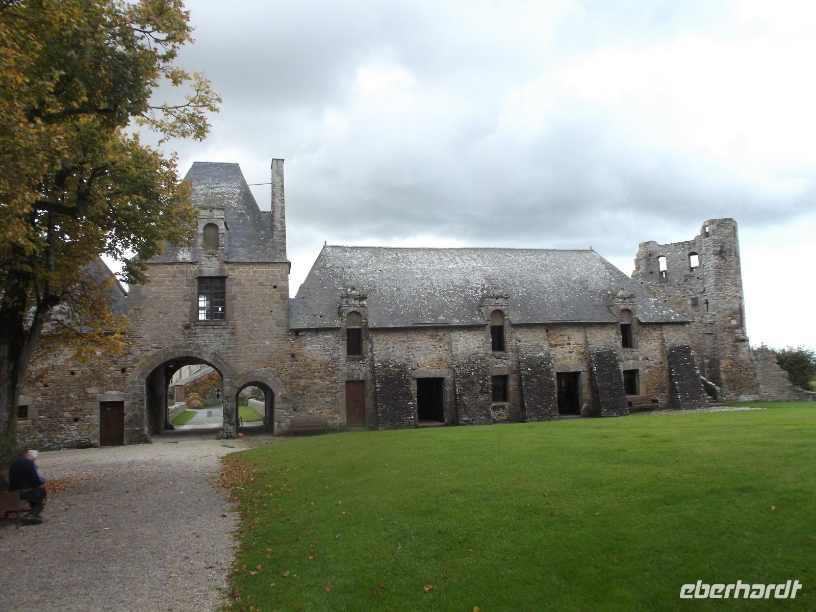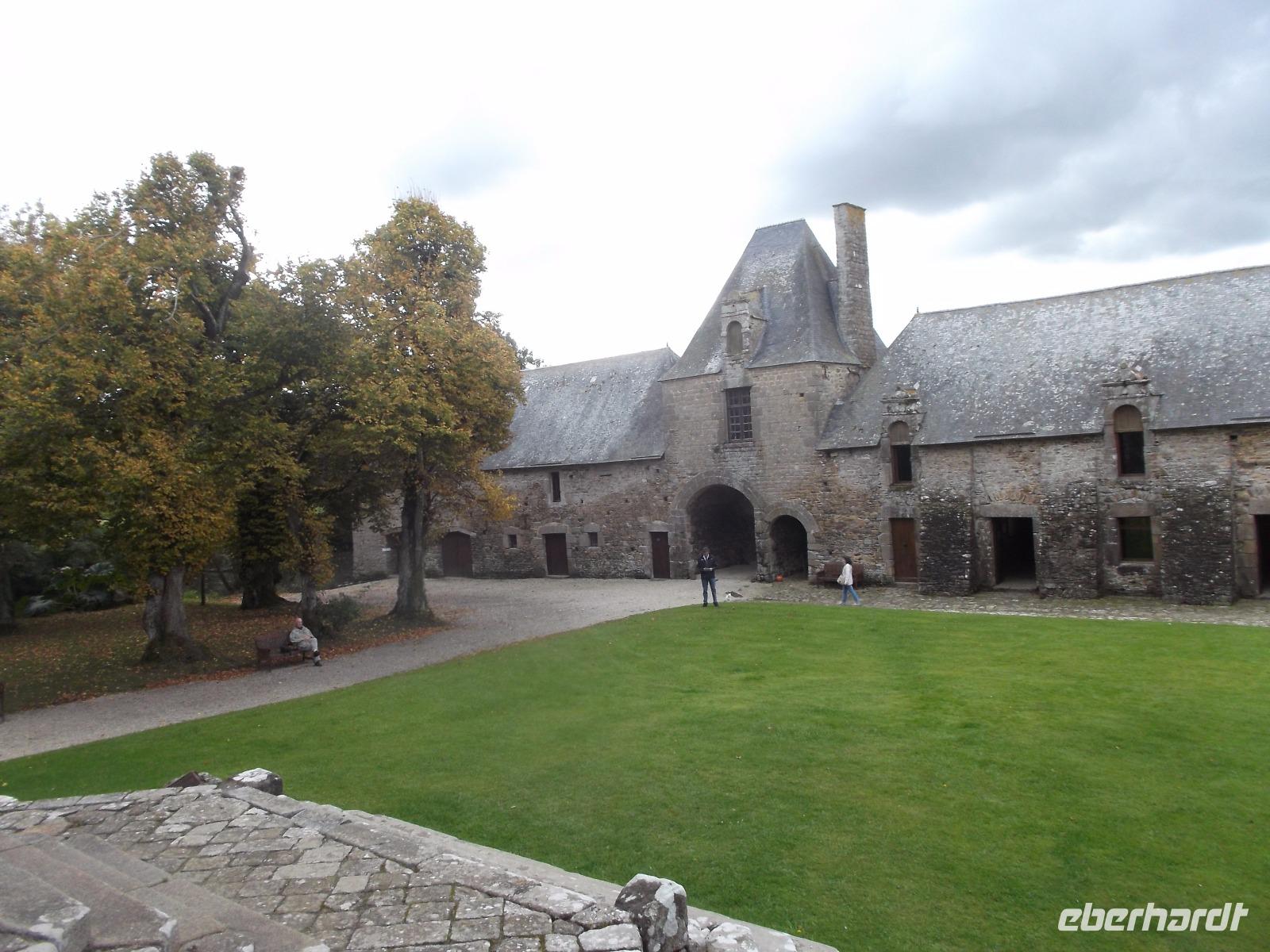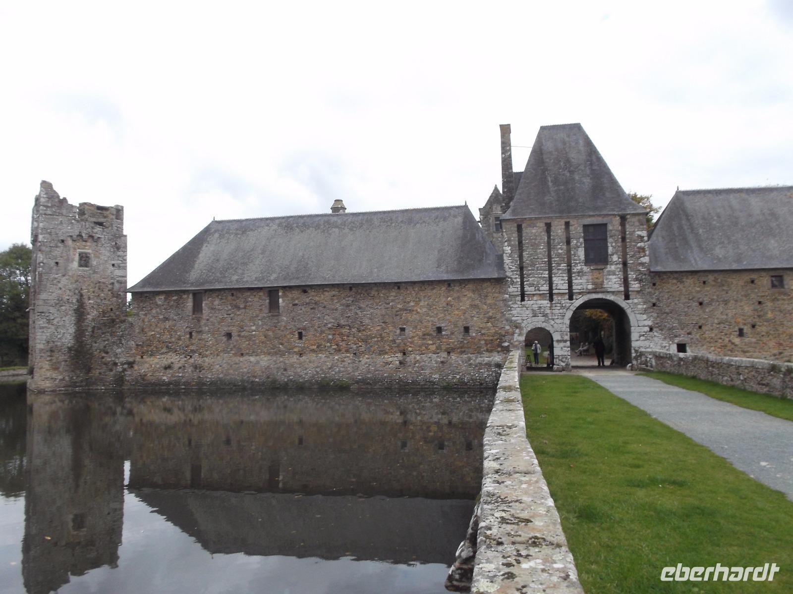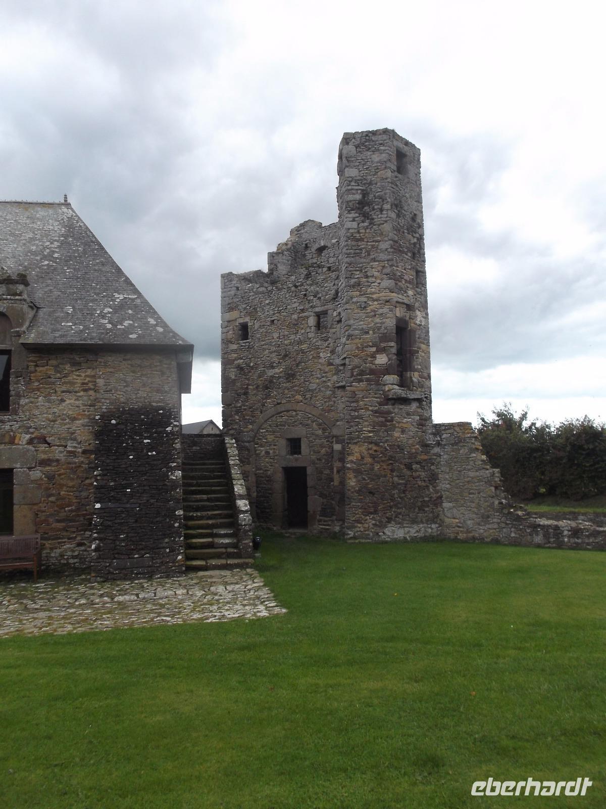 Unser erstes Ziel war das 9000 Einwohner-Städtchen Coutances, dessen Bisschof im Mittelalter große Bedeutung und viel Einfluss besaß. Ein Kampfgefährte Wilhelm des Eroberers hatte Coutances im 11. Jh. neu erstehen lassen und der Ort wurde zu einem der geistlichen Zentren des anglo-normannischen Gebietes, denn England und die Normandie waren ja nach 1066 in gleichem Besitz. So bekam die kleine Stadt ihre mächtige Kathedrale, beide liegen relativ zentral im Cotentin, jenem Felsensporn der als Halbinsel in den Ärmelkanal hineinragt. Wir besuchten zunächst die imposante Kirche Saint Pierre, die nahezu genauso zentral in der Stadt liegt wie die Kathedrale und - in der Romanik begonnen - heute vor allem Züge der Gotik und der Frührenaissance aufweist. Zu der Zeit, in der auch die Schlacht bei Hastings stattfand, entfalteten die Bischöfe in Coutance gewaltige Bautätigkeiten, in deren Verlauf dann die wuchtige Kathedrale in normannischer Architektur entstand. Trotz späterer Gotisierung beeindruckt der Kirchenbau noch heute durch seine schwere, kantige Formgebung, die noch viel vom ursprünglichen Baueindruck verrät. Der Vierungsturm weist noch die Wuchtigkeit des frühen Baues auf, da er etwa 20 m niedriger ist als die graziler wirkenden Türme der Westfassade zum Markt hin. Im Inneren der Kathedrale konnten wir erkennen, dass ihre Gotisierung tatsächlich zu großen Fenstern geführt hat, die den gewaltigen Innenraum sehr hell wirken ließen. Wir hatten noch etwas Freizeit, um uns im Städtchen, an dessen Marktplatz die Kathedrale steht, noch etwas umzusehen, bevor wir mit dem Bus zur nahegelegenen malerischen Ruine des Schlosses Gratot weiterfuhren. Lange Zeit war die ehemalige Wasserburg in Familienbesitz und ihre Reste vermitteln einen Eindruck vom Leben des normannischen Adels vom Mittelalter bis zur französischen Revolution. Ihre verschiedenen Bauten - vom wuchtigen Turm aus dem 13. Jh. über den Rundturm aus dem 15. Jh. bis hin zum Pavillion aus dem 18. Jh. - dem einzigen restaurierten und mit Dach versehenen Teil der Burgruine - erzählen die bewegte Geschichte des Bauwerks.