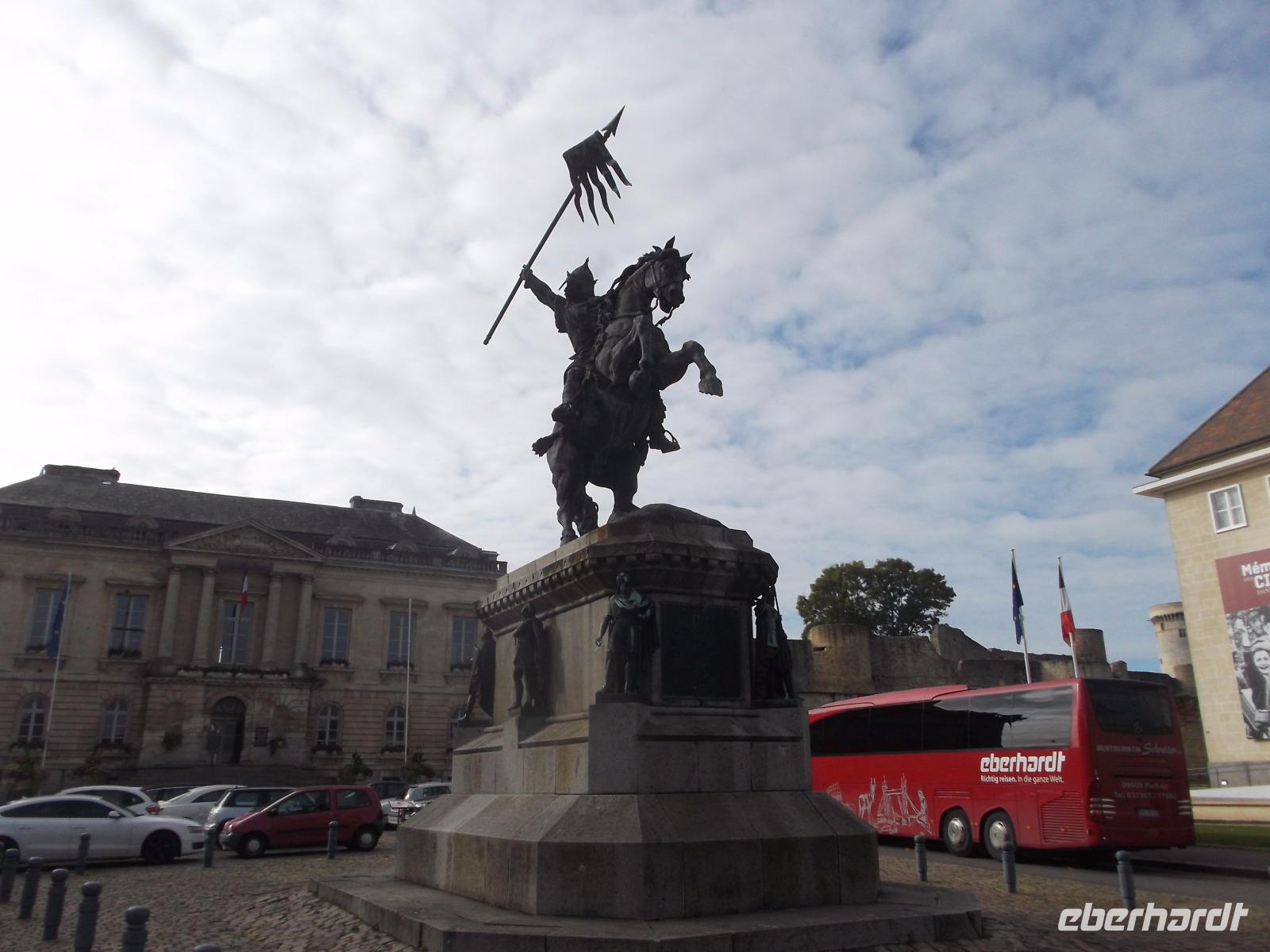 Auf dem Platz vor der Burg, gleich da, wo unser Bus parkte, konnten wir ein gewaltiges Bronzedenkmal, das einen sehr kriegerischen Hausherrn von Falaise - eben jenen Wilhelm, den Eroberer darstellt, bewundern.