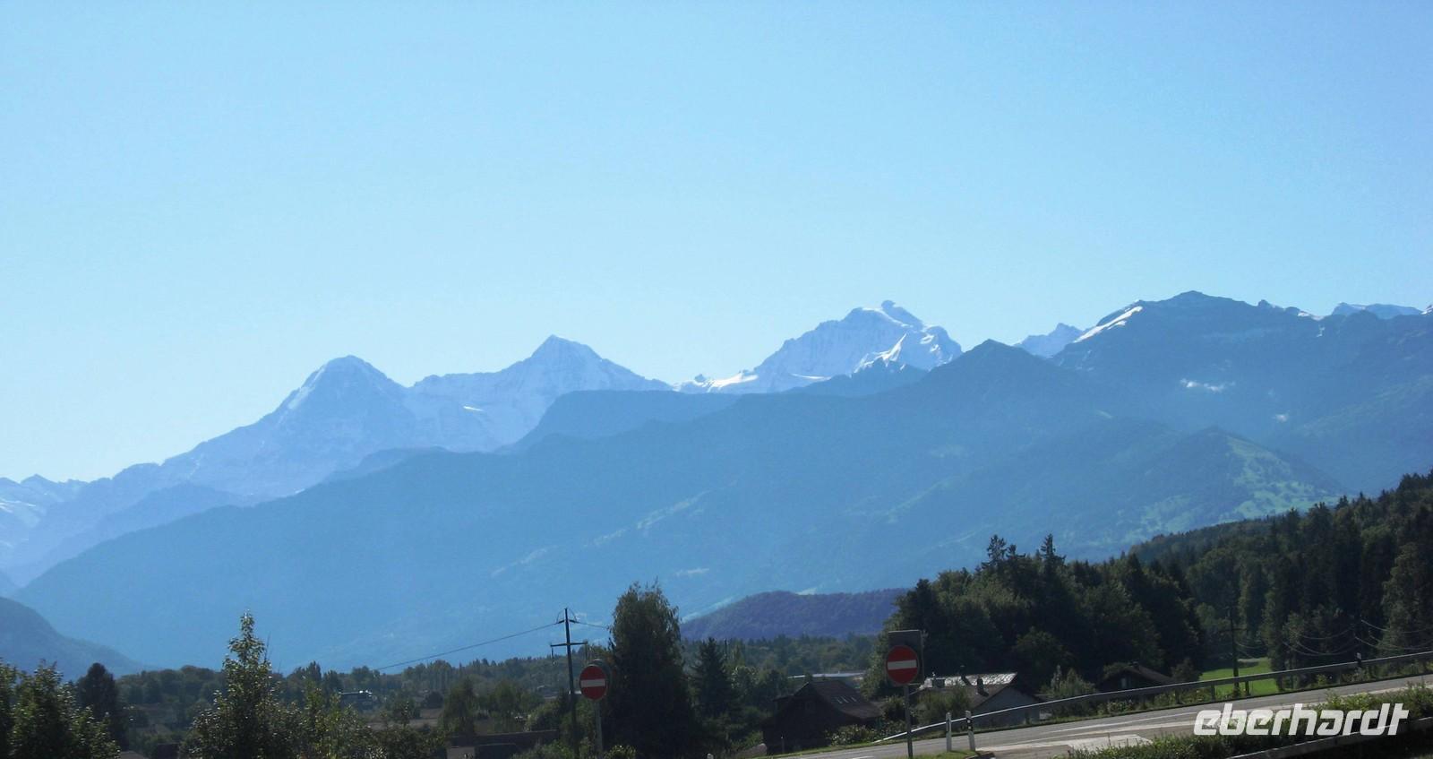 Heute Morgen brechen wir schon früh auf und erreichen von Mulhouse kommend schnell Basel. Wir sind in der Schweiz angekommen. Mit einer durchschnittlichen Höhe von ca. 1.350 m ist es das höchste Land Europas. Die Alpen nehmen 2/3 der Schweiz ein. Bei strahlend blauem Himmel fahren wir an der Hauptstadt des Landes, Bern, vorbei auf Interlaken zu. Bald eröffnet sich uns der schönste Ausblick auf das Panorama von Eiger, Mönch und Jungfrau und wir machen am Thuner See eine längere Fotopause. Dann geht es weiter nach Interlaken, der Stadt, die zwischen Thuner und Brienzer See liegt. Hier können die Proviantbeutel mit Landestypischem gefüllt werden, bevor es weiter nach Gstaad geht, wo wir unseren ersten Zug besteigen: den Panoramic-Express, der uns von Gstaad nach Montreux am Genfer See bringt. Montreux ist wegen seines milden Klimas, des alljährlich stattfindenden Jazzfestivals und der südlichen Vegetation weltbekannt und wir machen alle bei strahlendem Sonnenschein am Seeufer und in der Stadt einen Spaziergang. Am späten Nachmittag, nach einem Fotostopp am Schloss von Chillon, das auf einem natürlichen Felsvorsprung erbaut worden ist, fahren wir nach Martigny, wo wir übernachten.