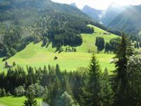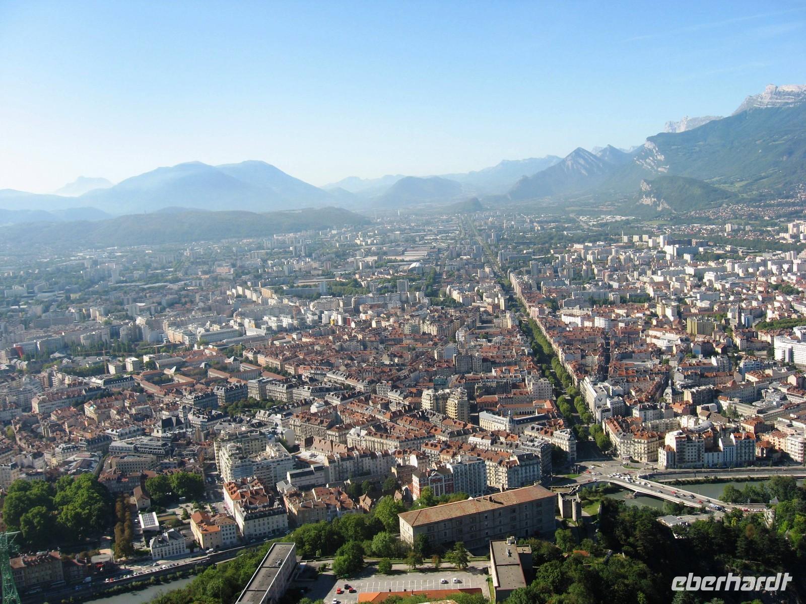 Schnell sind wir vom Hotel aus in der Stadt, genauer am Ufer der Isère. Von hier aus fahren wir wieder mit einer Seilbahn, diesmal der innerstädtischen Seilbahn von Grenoble aus den 30er Jahren über die Isère hinauf zur Bastille von Grenoble. Grenoble, die zweitgrößte Stadt in der Region Rhône-Alpes, war 1968 Austragungsort der Winterolympiade und wurde für dieses Ereignis vom damaligen französischen Präsidenten Charles de Gaulle mit großem baulichen Aufwand modernisiert. Von der Festung Bastille aus hat man einen tollen Blick auf die Stadt und das Umland, den Chartreuse-Regionalpark und sogar noch einmal den Mont Blanc. Anschließend machen wir einen kleinen Stadtrundgang, bevor es mittags weiter geht nach St. Hilaire du Touvet. Wir wollen hoch auf die Chartreuse, die wir von der Bastille in Grenoble aus schon gesehen haben. Eine teils offene Zahnradbahn bringt uns in knapp 30 Minuten zum Dorf St. Hilaire du Touvet. Wir fahren steil auf durch den Wald, hören das Rauschen eines Wasserfalls, das Glucksen eines Baches und dann sind wir schon oben auf der Chartreuse. Es eröffnen sich Spazierwege und ein Aussichtspunkt, von dem aus man noch einmal einen Blick auf den Mont Blanc hat und auf die Paraglider, die von hier aus in großer Zahl starten.