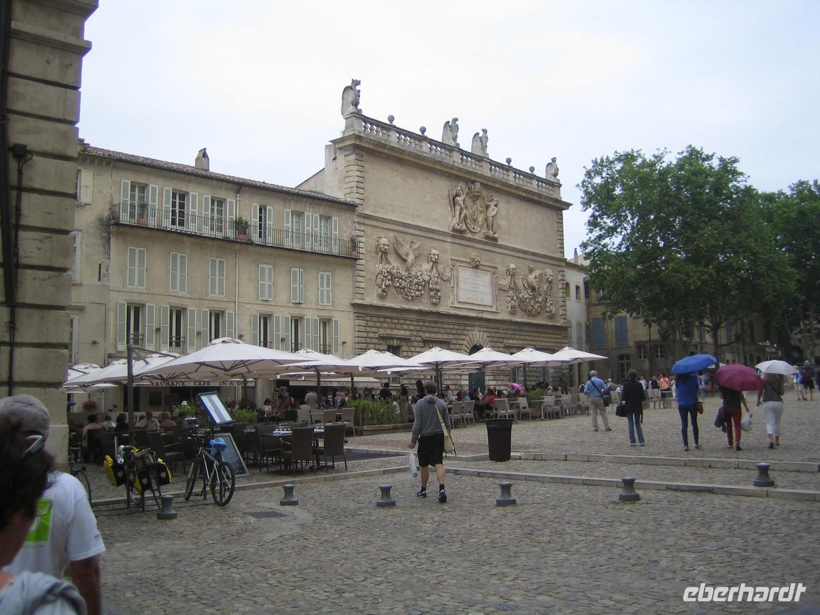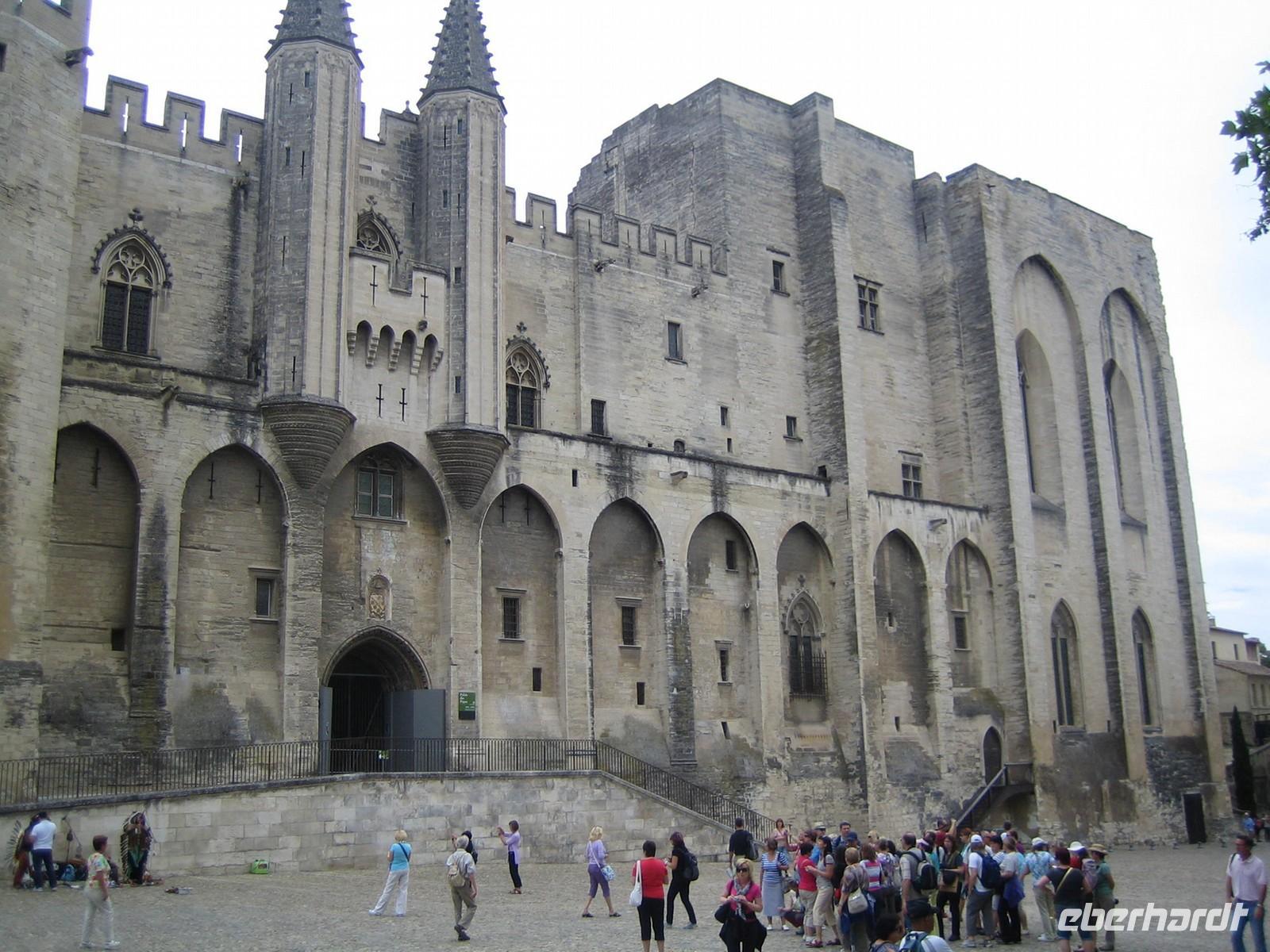den im Boden in Beton eingelassenen Handabdrücken der Filmstars .Ein Bummel durch die Altstadt am Mont Chevalier brachte uns einen Gesamteindruck dieser so lebendigen Stadt. Nach kurzer Fahrt entlang der Küste erreichten wir einen der schönsten Orte der Cote d‘ Azur, Antibes mit einem der größten Yachthäfen und einer verträumten Altstadt. Schatz der Stadt ist zweifellos das Picassomuseum, welches in einem ehemaligen Palast der Grimaldis eingerichtet ist. Pablo Picasso hat hier gelebt und geschaffen, seine Werke konnten wir bewundern. Die Rückfahrt entlang der Küste brachte uns ein letztes Mal so zauberhafte Bilder der Cote d’Azur. Am Samstag hieß es früher aufstehen - unser Ziel Avignon war ca 240 km entfernt. Vorbei am Esterelgebirge, Aix en Provence, am Luberongebirge erreichten wir am Mittag Avignon - die Stadt der Päpste. Die besungene Brücke von Avignon, der Papstpalast und die intakte mittelalterliche Stadtmauer - alle diese Wahrzeichen der Stadt lagen vor uns.