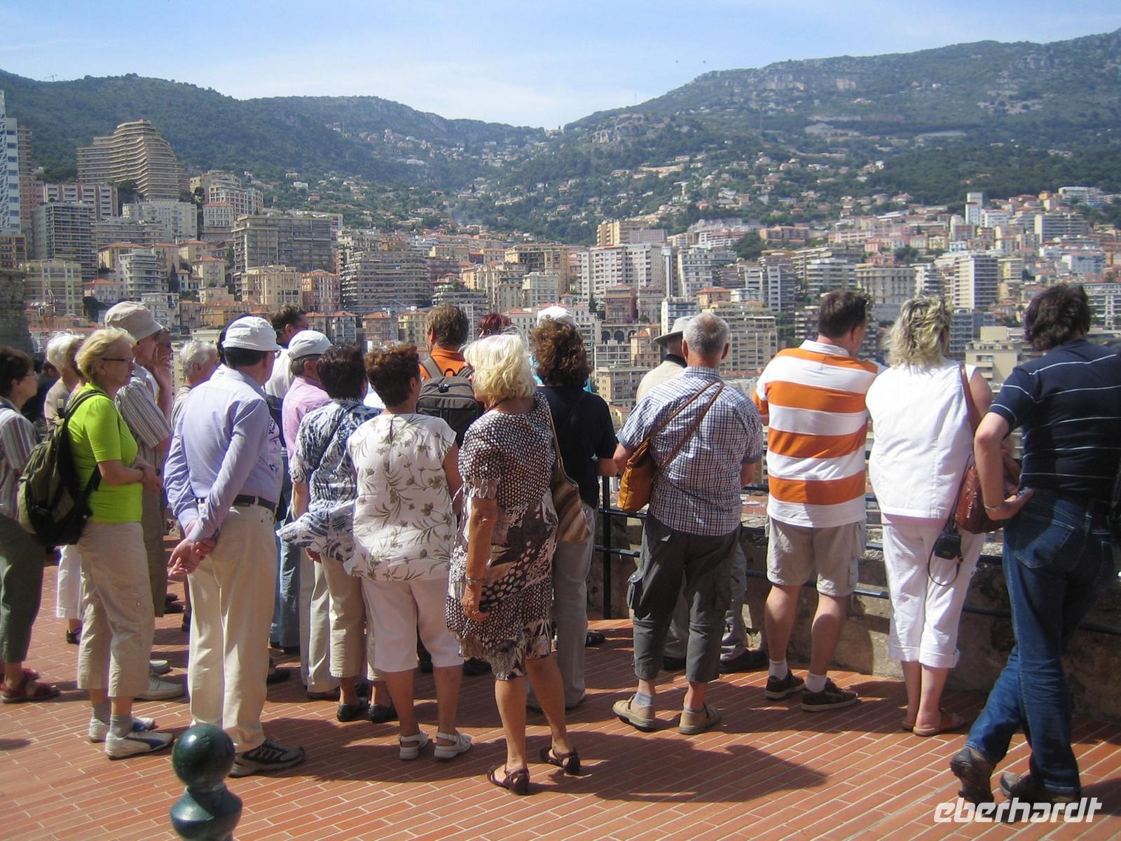 Mit dem Zug fuhren wir an der Küste entlang in die Mittelmeermetropole. Auf dem Bahnsteig empfing uns unser Stadtführerin Annelies . Sie zeigte uns ihre Stadt - den Hafen mit den unzähligen Yachten, die Rennstrecke, das Ozeanografische Museum , die