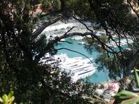 Cannes ist bekannt wie Nizza, aber viel, viel jünger. Es war bis in das 19.Jhdt. hinein ein Fischernest, wenn man einmal von einer der ältesten Klostergemeinschaften auf der vorgelagert Ile St:-Honorat absieht. Durch einen Zufall begann der Aufstieg zur „weißglänzenden Stadt" . Ein englischer Lord und seine kranke Tochter konnten wegen einer Choleraepidemie nicht nach Nizza zurückkehren. Der Lord vertrieb sich die Zeit mit dem Kauf von Ländereien und dem Weiterverkauf von Parzellen. Es entstand ein Konkurrenz zu Nizza und durch die Filmfestspiele ein Anziehungspunkt für die großen Namen der Filmwelt und der Schar der noch unentdeckten Namenlosen. Da der rote Teppich gerade unbesetzt war, eignete der Festspielplast sich hervorragend auf ein Foto-Shooting unserer Reisegruppe. Wir stiegen durch Altstadtgassen zum Hügel La Suquet hinauf, genossen die Aussicht auf Stadt und Hafen, aber auch auf den langen Sandstand La Bocca und das Esterelgebirge. Nicht wenige Gäste nutzten aber auch die Gelegenheit zu einem Bad im Mittelmeer.
