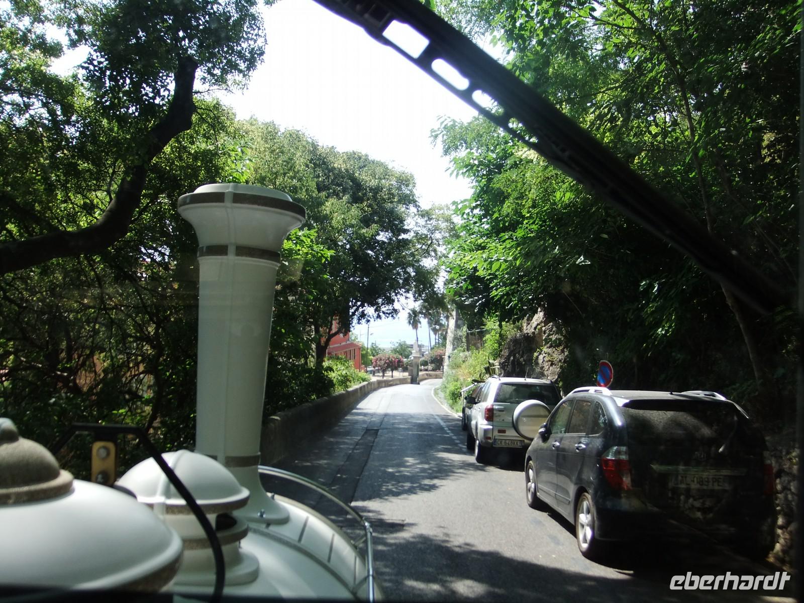 Auf der Küstenstraße geht es wieder nach Beaulieu zurück. Die Strände sind am heutigen Sonntag bei strahlendem Sonnenschein und (Eberhardt-)blauem Himmel sehr gut besucht.
