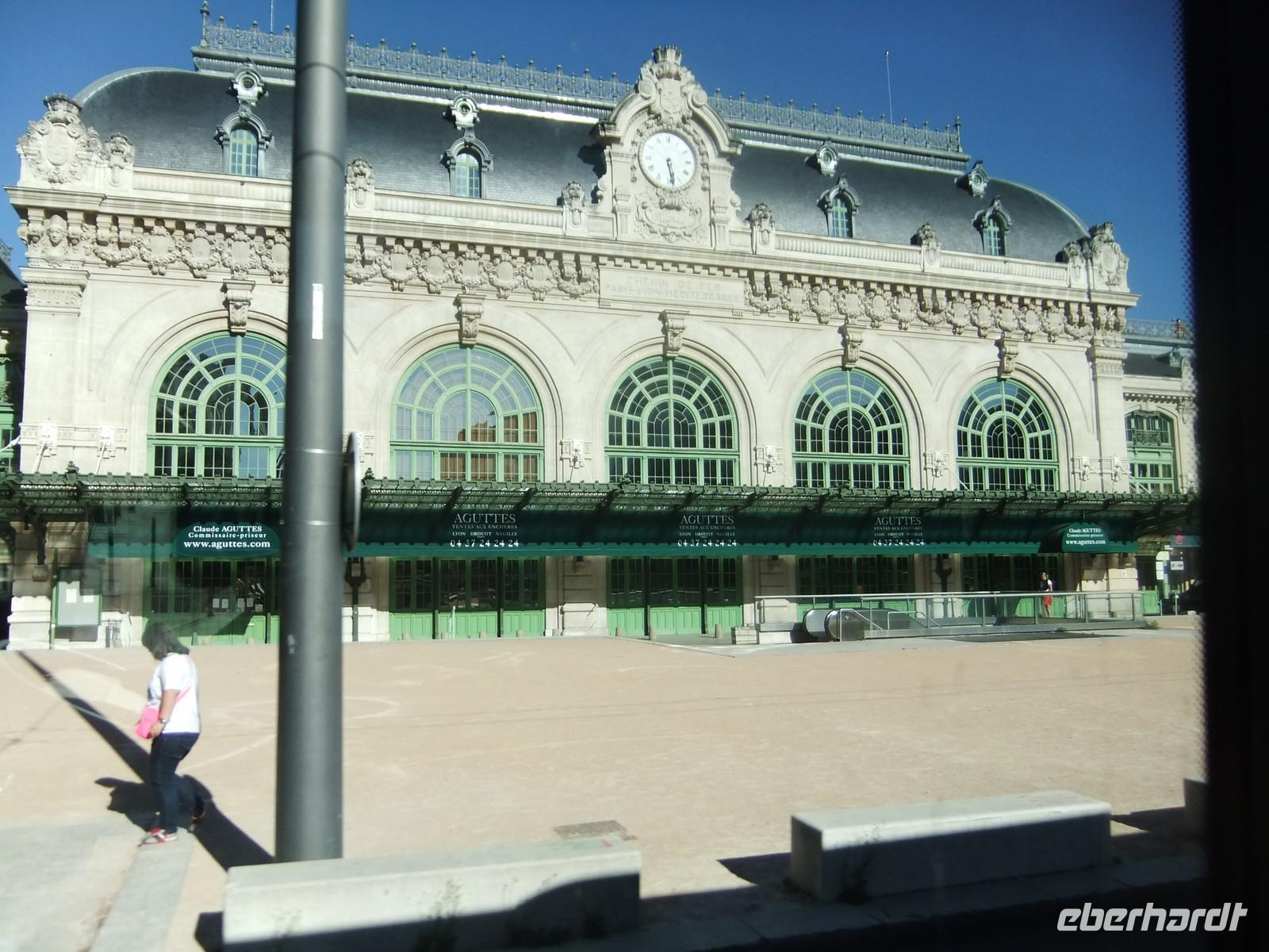 300 km/h soll der Hochgeschwindigkeitszug fahren. Man merkt es eigentlich nur am Luftdruck, wenn er in einen Tunnel einfährt (und später an dem verwaschenen Vordergrund auf den Fotos). Aber auch der Stolz der französischen Eisenbahn nimmt es mit der Pünktlichkeit diesmal nicht so genau. In Lyon steígen wir im modernen Teil im Osten der Stadt aus. Der Bus bringt uns im weiten Tal der Saone durch das Beaujolais in das Burgund.