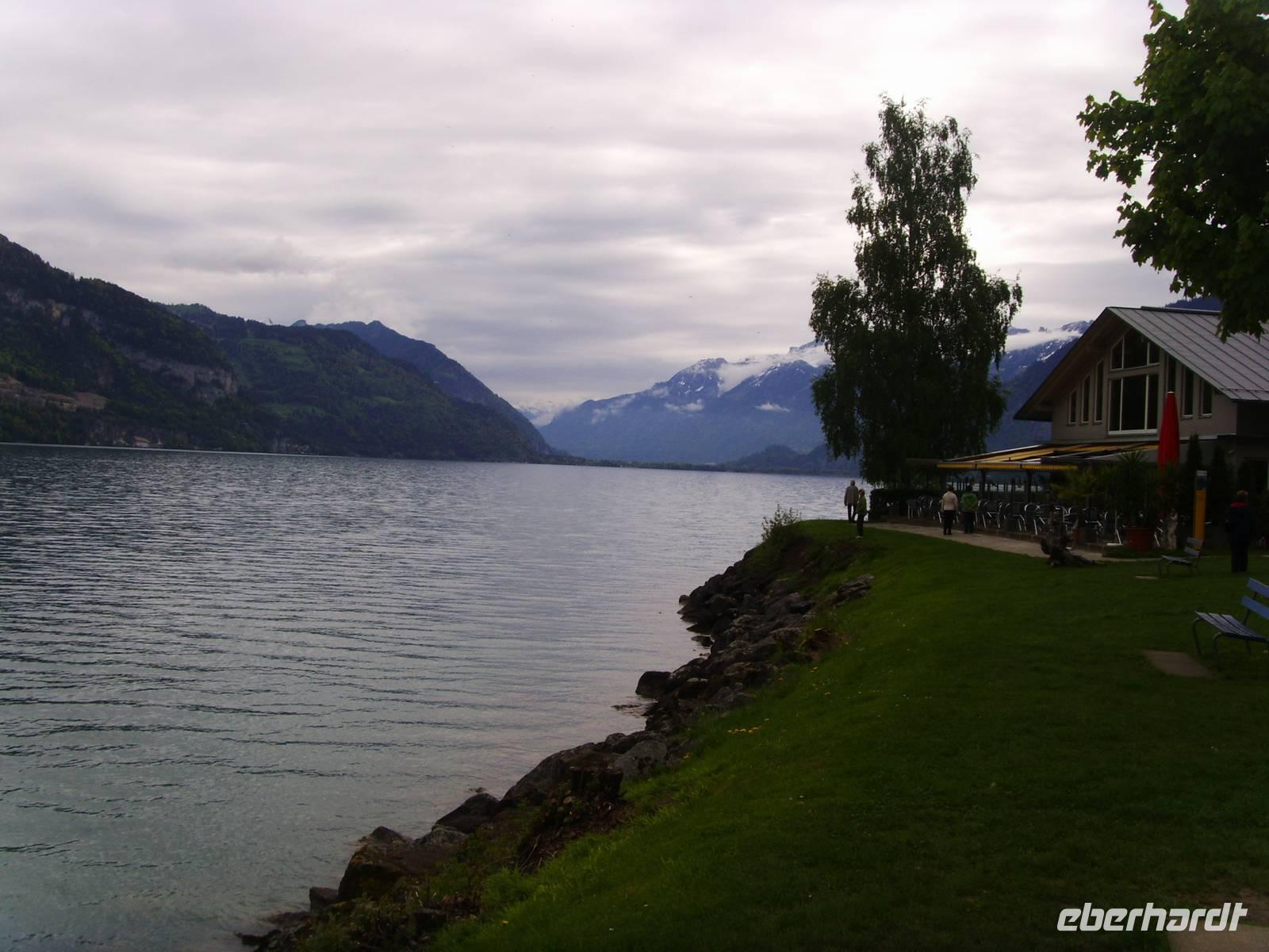 Interlaken, die Stadt zwischen dem Thuner und dem Brienzer See, ist unser erstes Ziel. Mönch und Jungfrau zeigen sich zwar nicht, aber das etwas umwölkte diesige Bergpanorama um die Seen herum hat trotzdem seinen Reiz. Durchs landschaftlich sehr ansprechende Simmental fahren wir dann weiter nach Gstaad, wo wir unseren ersten Alpenzug besteigen, den Golden Pass Panoramic. Die Fahrt nach Montreux geht durchs Hochgebirge der Berner Alpen. Berglandschaft pur, erschlossen durch schweizer Eisenbahntechnik.
