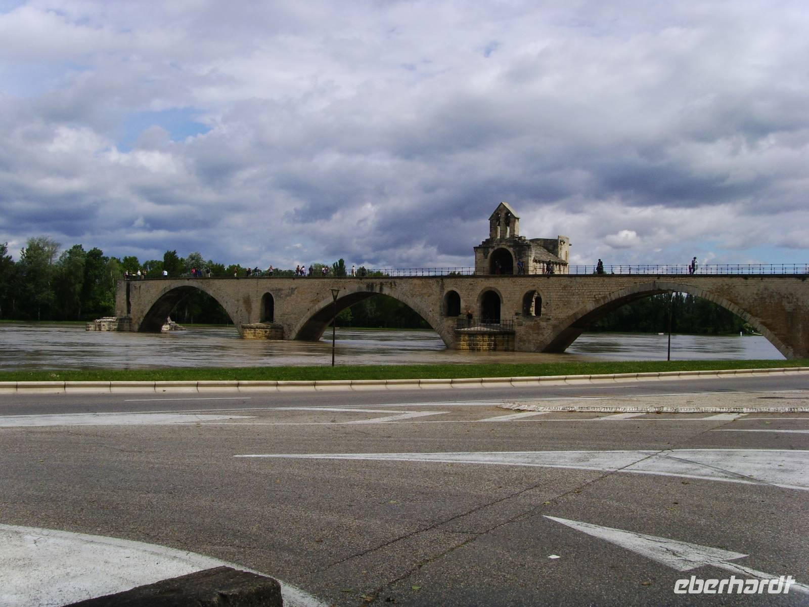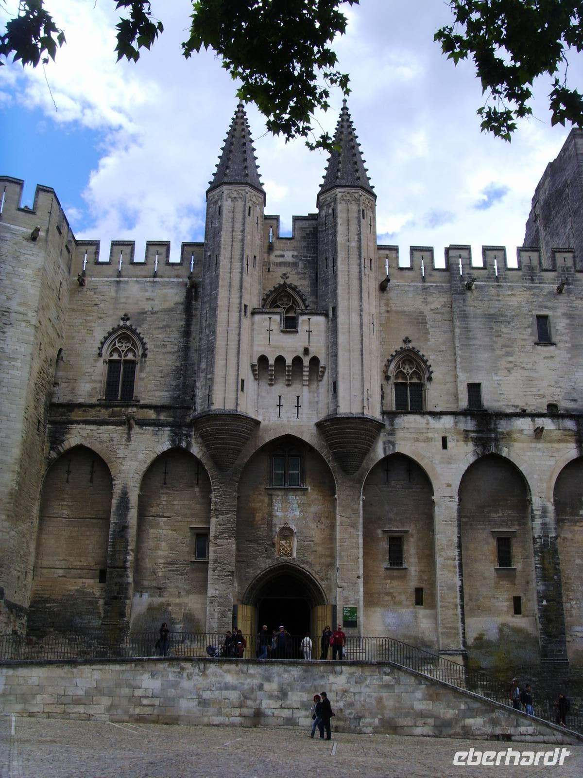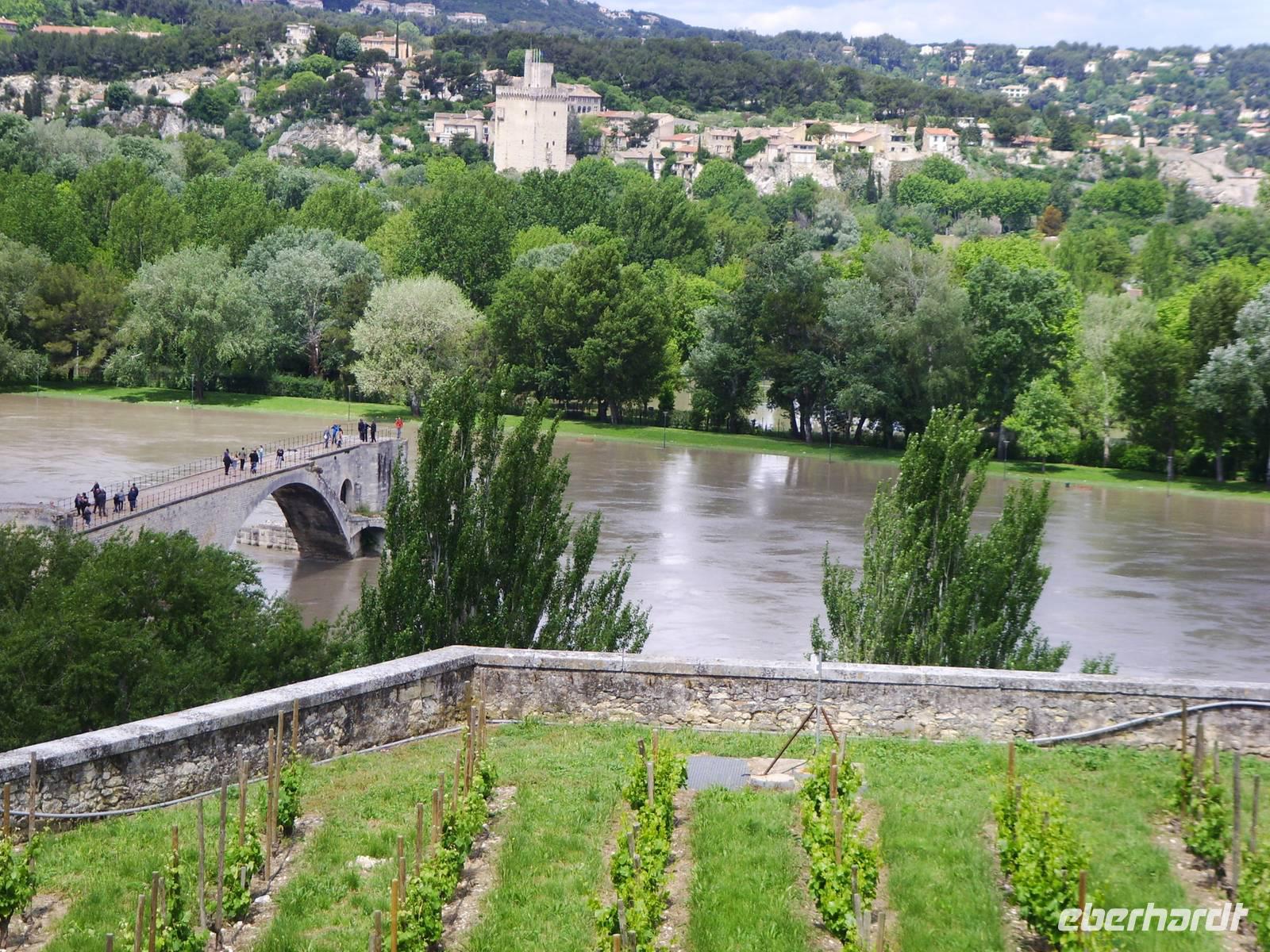 Bei unserer Weiterfahrt am frühen Sonntagmorgen streifen wir noch einmal kurz Nizza, unsere Sonnenstadt. Dann geht es ins Innere der Provence nach Avignon, dorthin wo im 14.Jh. mehrere Päpste ihre Residenz hatten. Es ist nicht zu leugnen, dieser riesige Papstpalast hat schon seine Wirkung, wie er da hoch über die Stadtmauer ragt. Er gilt als der größte gotische Palast Europas, wobei sich die Frage stellt, wo es denn außerhalb Europas überhaupt echte Gotik gibt. Manche von uns besichtigen auch die Innenräume des Palastes und bekommen einen Eindruck von päpstlicher Macht und Herrlichkeit im Mittelalter. Andere belassen es bei einer äußerlichen Betrachtung und erkunden stattdessen etwas intensiver die sehenswerte Altstadt von Avignon. Nicht zu vergessen die Brücke von Avignon, die als Brückenruine mit noch vier von ehemals 21 Bögen in die Rhone hineinreicht. Ein Blick auf die Wasserführung der Rhone erinnert noch einmal an den massiven Regen der letzten Tage ...