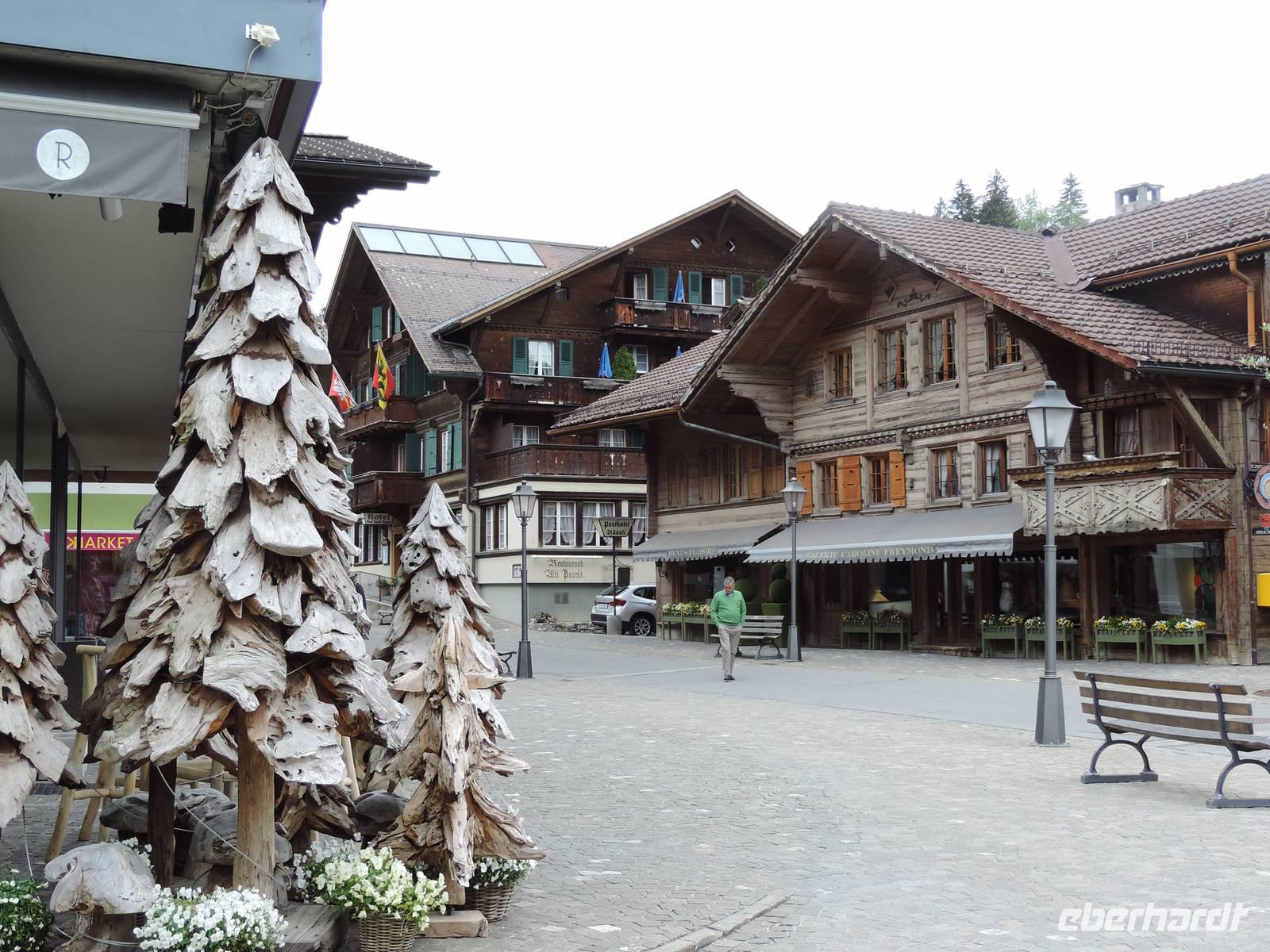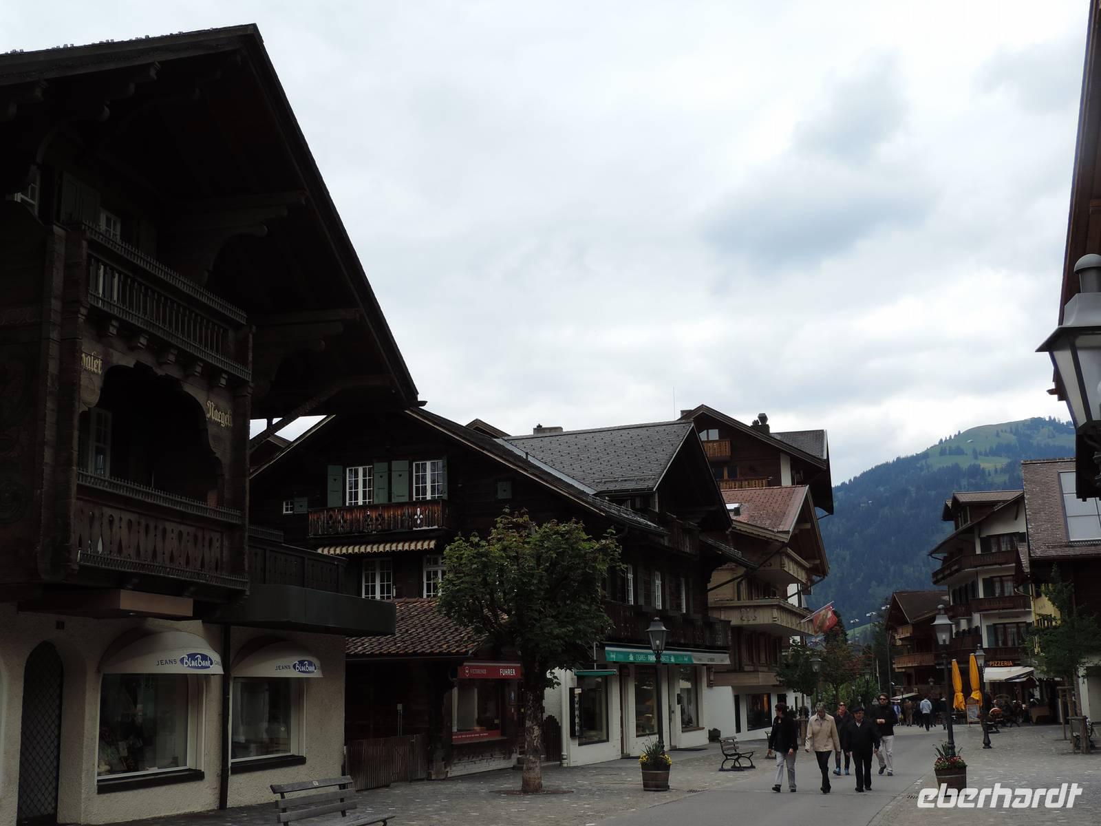 Anschließend geht es durch das Simmental nach Gstaad. Auch dort haben wir Zeit, über die 'Promenade' genannte Fußgängerzone zu bummeln. Leider haben die Geschäfte geschlossen, nur ein paar Restaurants sind geöffnet. Vereinzelt sitzen in ihnen Leute.