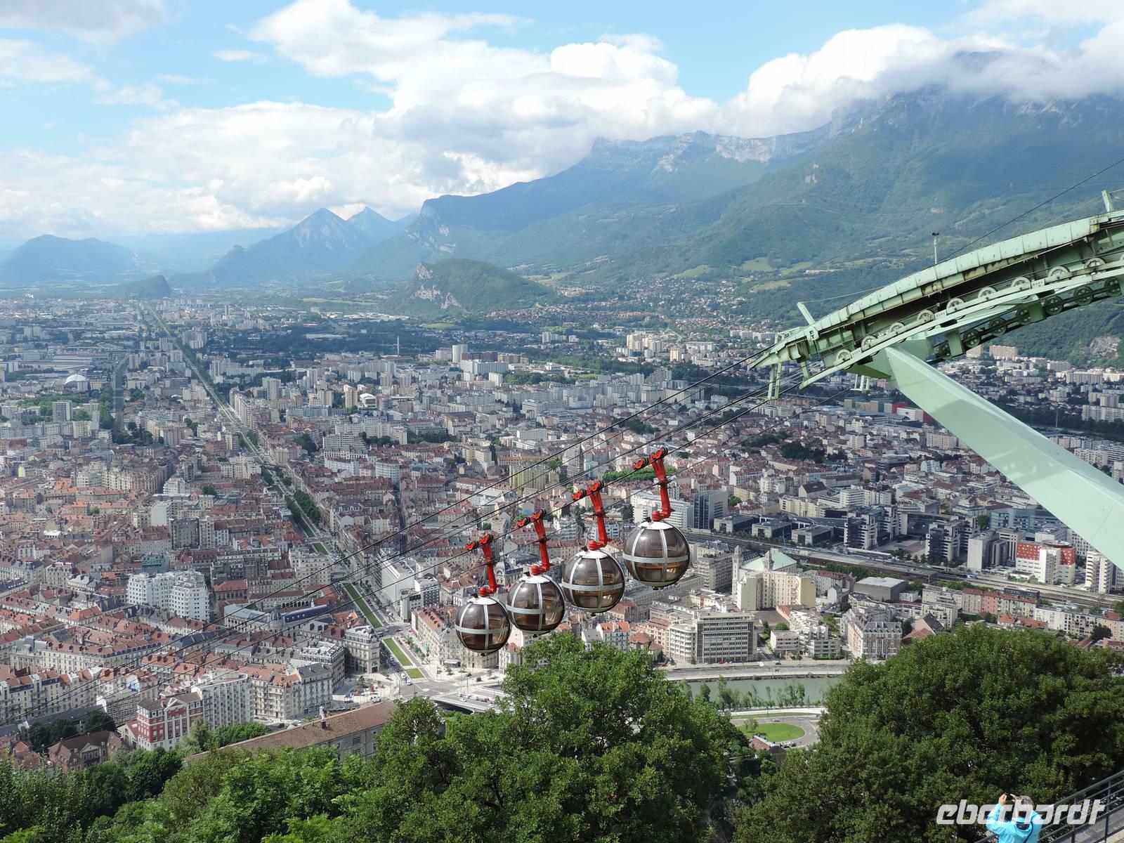 Ab 11 Uhr gondeln wir mit der Seilbahn zur „Bastille", von wo aus wir den wunderschönen Blick über Grenoble in der Berglandschaft genießen.
