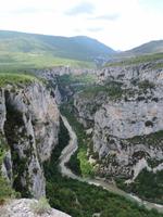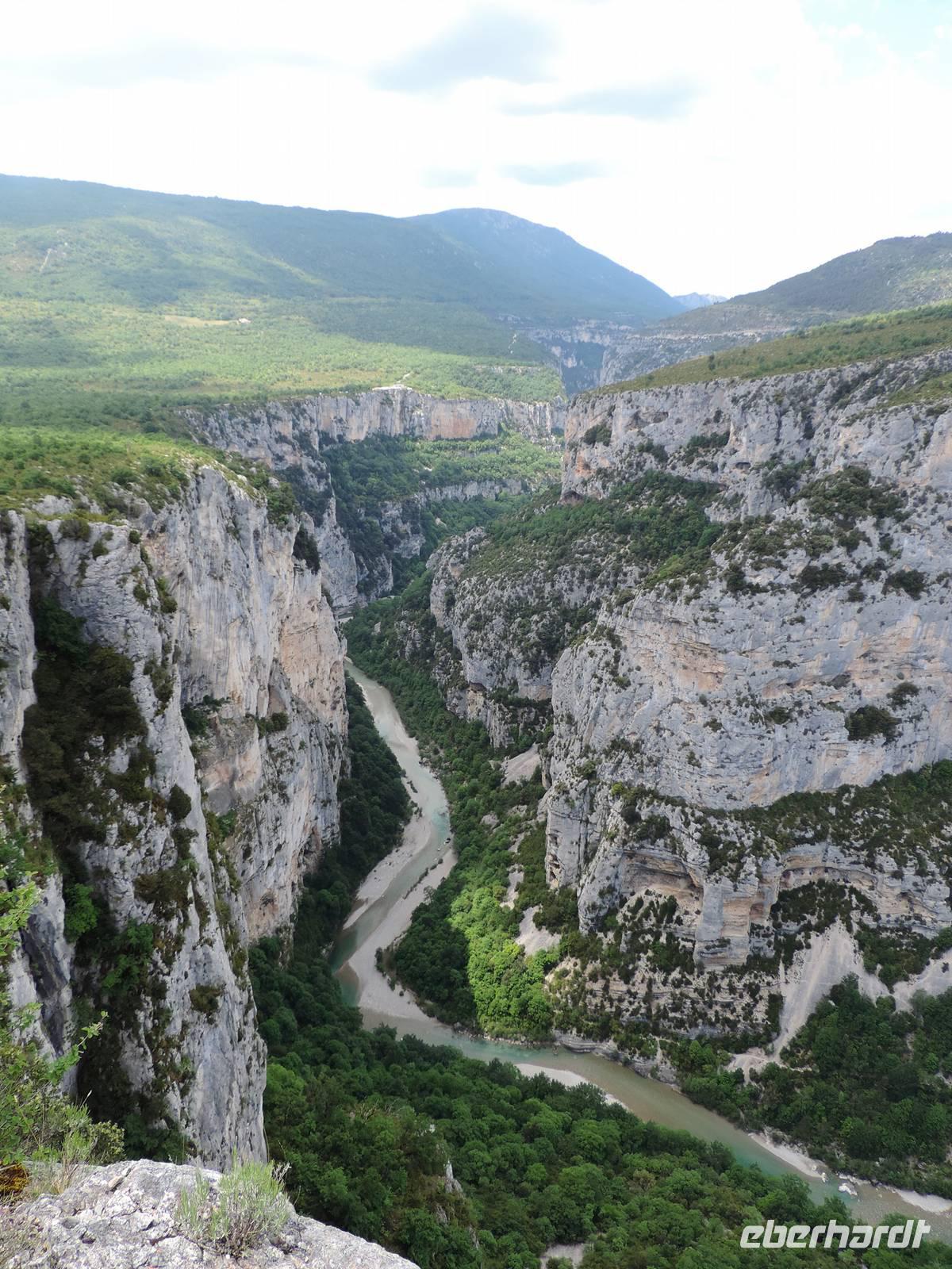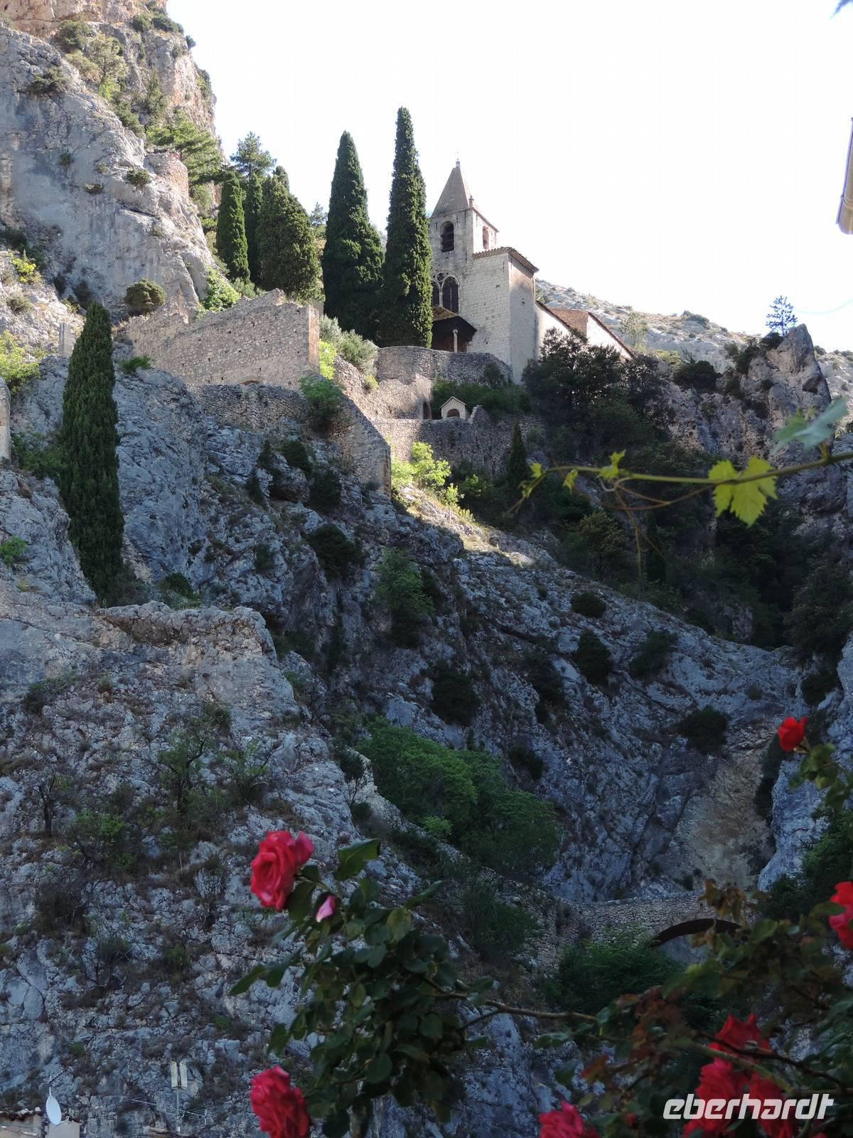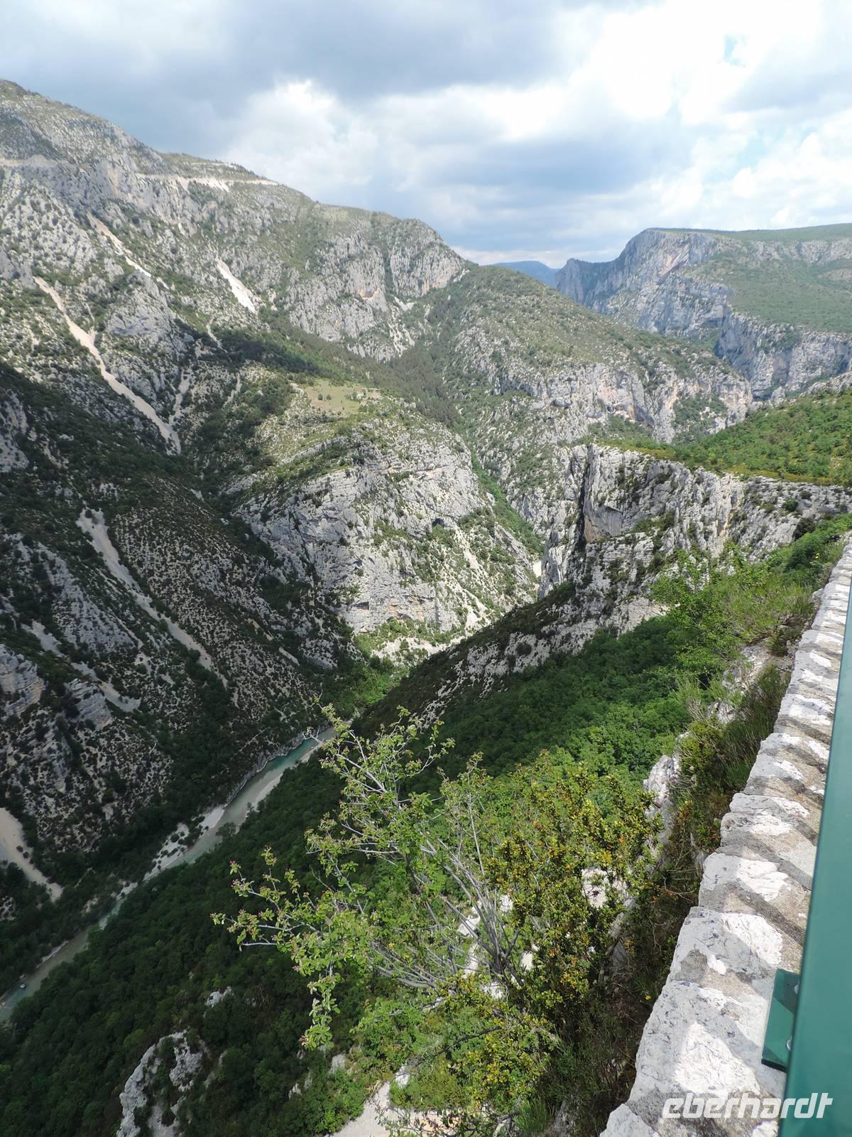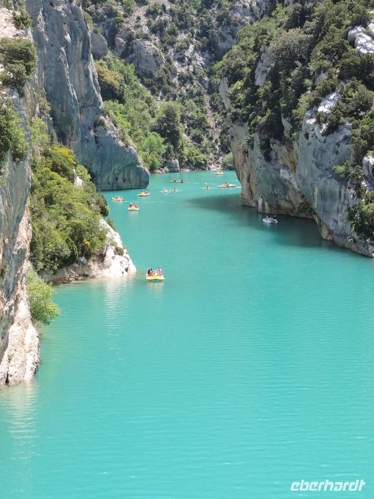 Erster Aufenthalt ist heute in Moustières St. Marie, einer hübschen Töpferstadt, die wir eine gute Stunde lang erkunden können. Unsere Mittagspause halten wir an der Brücke über den Verdon. Und dann fahren wir an der Verdon-Schlucht entlang und genießen immer wieder die spektakulären Blicke in die bis zu 400 m tiefe Schlucht. Dank an unseren Busfahrer Dietmar, der immer wieder Punkte findet, wo der Bus halten kann. Also gibt es mehrere Fotostopps, den letzten von 13.50 - 14.20 Uhr am Balcon de Mescla.