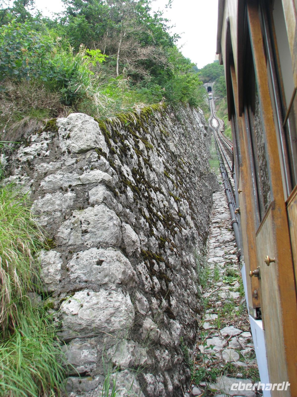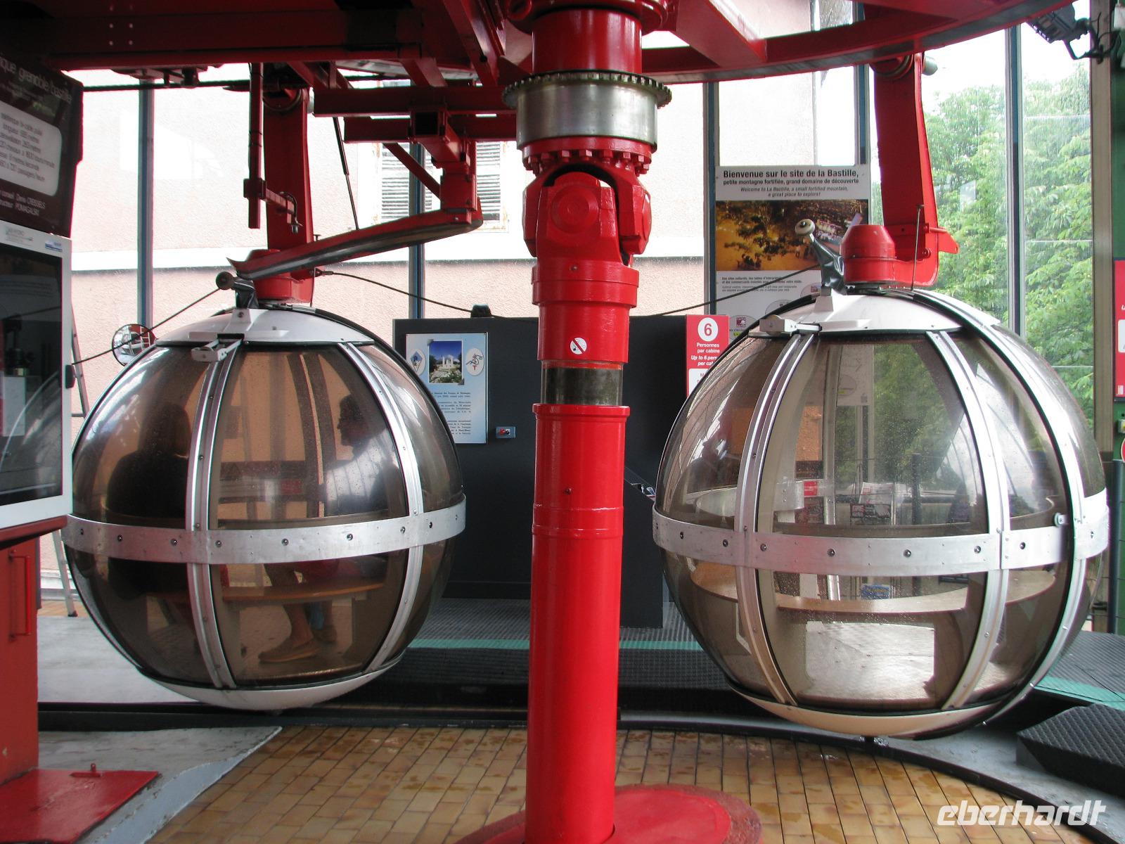 Nach der futuristischen Auffahrt in Grenoble werden wir uns als nächstes wieder zu den Anfängen der Bergbahnen begeben. Und imposant ist die Auffahrt mit dem Train Funiculaire allemal. Der Winkel, in dem diese Bahn sich nach oben bewegt, ist beachtlich und beeindruckt die Insassen nachhaltig.