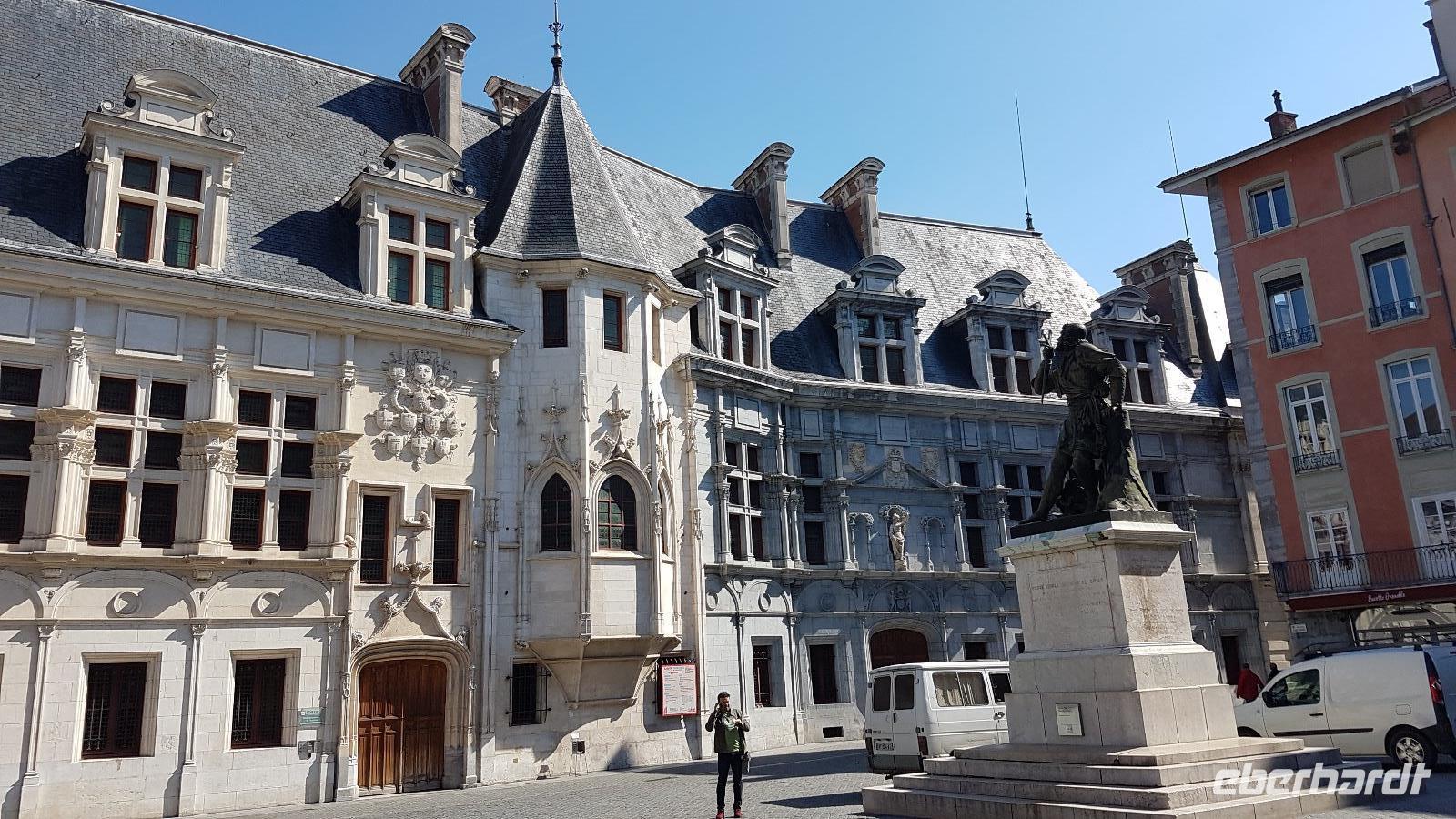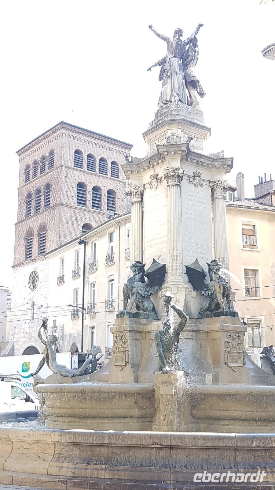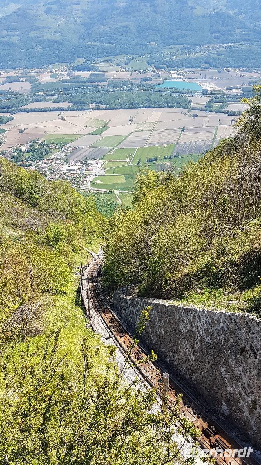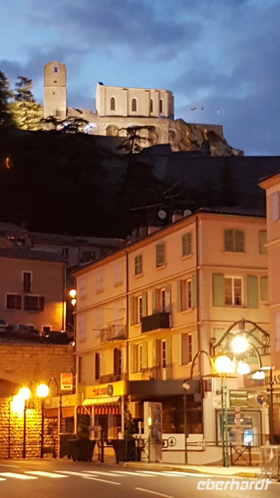 Wir fahren heute morgen erst nach Grenoble, und entdecken die Stadt zu Fuss mit u.a. dem schönen Dauphiné-Parlamentspalast, dem historischen Revoutionsbrunnen und der beeindruckende Marien-Kathedrale. Danach nehmen wir in den „Bulles" Platz, die runden Gondeln, die zur grossen Festung Bastille führen. Wir genießen dort bei tollem Wetter die wunderschöne Aussicht auf die Stadt und die Berglandschaft. Anschließend fahren wir weiter mit dem Bus nach Lumbin, zur Talstation der dortigen Zahnradbahn. Die wurde nach dem ersten Weltkrieg gebaut, um einfacher zu den Sanatorien im Dorf Saint-Hilaire du Touvet zu gelangen. Das sehr freundliche Personal bringt uns sicher nach oben, ein sehr beeindruckende Fahrt mit bis 83% Steigung...und wieder tolle Aussichten. An der oberen Station haben wir ein bisschen Zeit in Saint-Hilaire zu schlendern (Maschinenraum der Zahnradbahn, schöne Kirche, sehr gute Luft ! aber keine Sanatorien mehr) bevor wir wieder ins Tal fahren und in unseren Bus einsteigen. Wir erreichen bald Sisteron, das über eine sehr schöne befestigte Altstadt verfügt. Nach Eintreffen im Grand Hotel du Cours (eine Institution in der Stadt, sehr zentral gelegen) und anschließendem köstlichen Abendessen gibt es noch gerade Zeit, um vor der Dunkelheit die Zitadelle mit Blick auf den Fluss Durance und die Rippen aus hartem Kalkfels, die „Andrones" Passagen oder den Glockenturm (Tour de l'Horloge) zu entdecken.