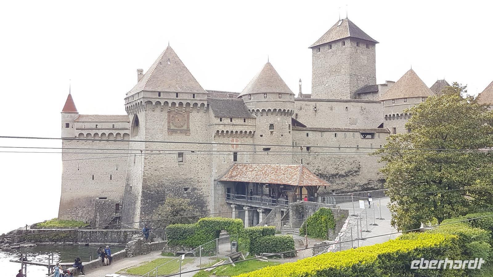 Auf der Weiterfahrt wollen wir noch einen kurzen Fotostopp am malerischen Chateau Chillon machen.