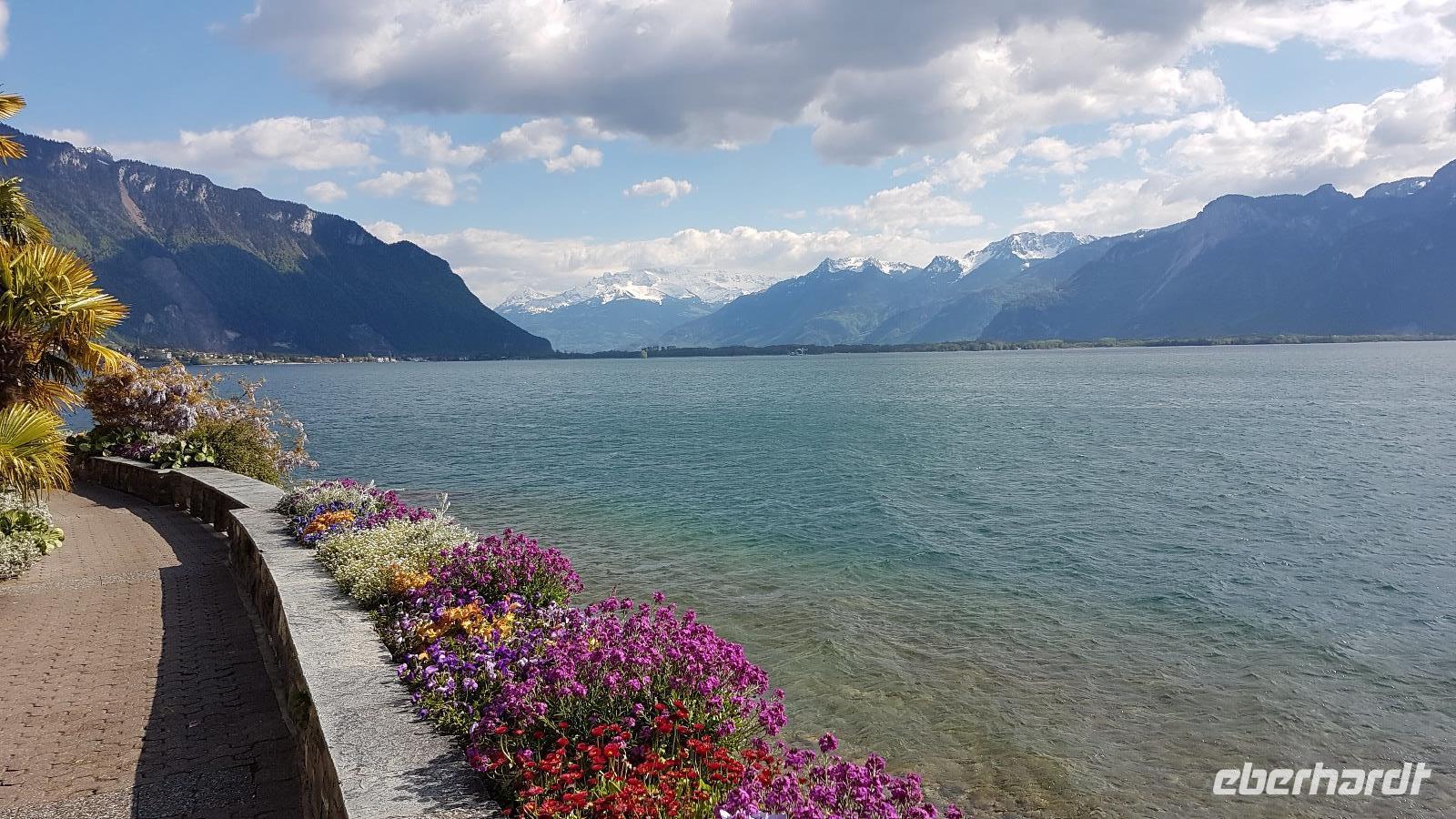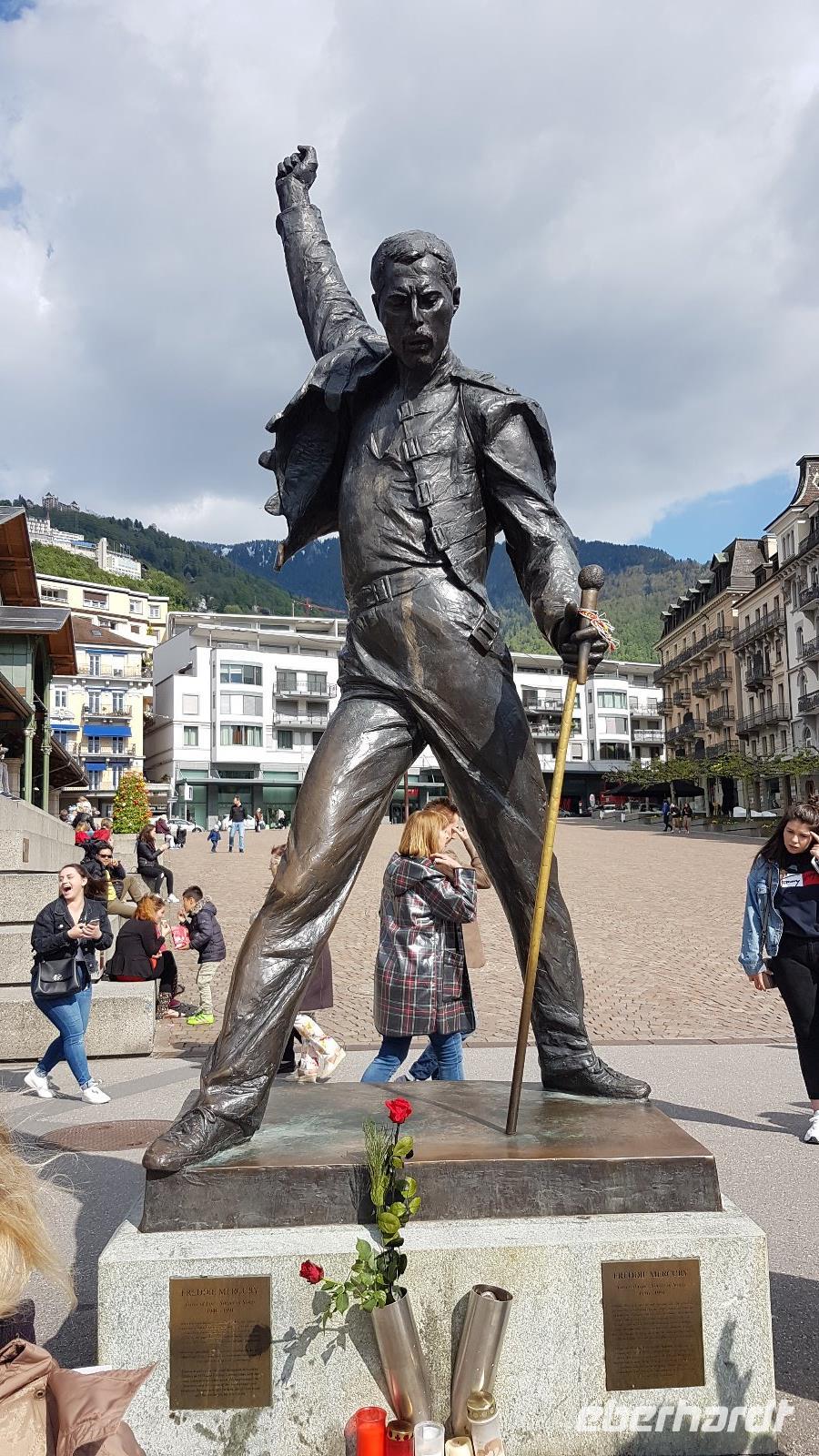 Dann geht es weiter zum Ferienort der Prominenten Gstaad (aber wir haben diesmal keine Stars gesehen !), wo wir durch die schöne Hauptstraße schlendern und das märchenschlossartige Palace-Hotel betrachten können, bevor unsere Fahrt mit dem Golden Pass Panoramic Zug startet. Dank der überdimensionierten Fenster bieten sich herrliche Aussichten auf schneebedeckte Berge und grüne Täler mit wilden Bächen. Unsere erste Zugreise ist ein wunderschönes Naturerlebnis! Aber schon sind wir in Montreux, wir spazieren am Ufer des Genfer Sees entlang, wo schicke Hotels und die schöne Markthalle zu bewundern sind, ohne die Statue von legendären Freddie Mercury zu vergessen.