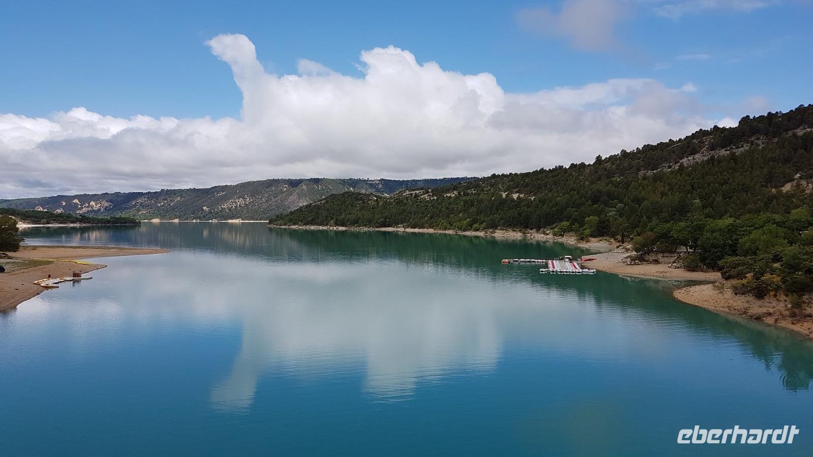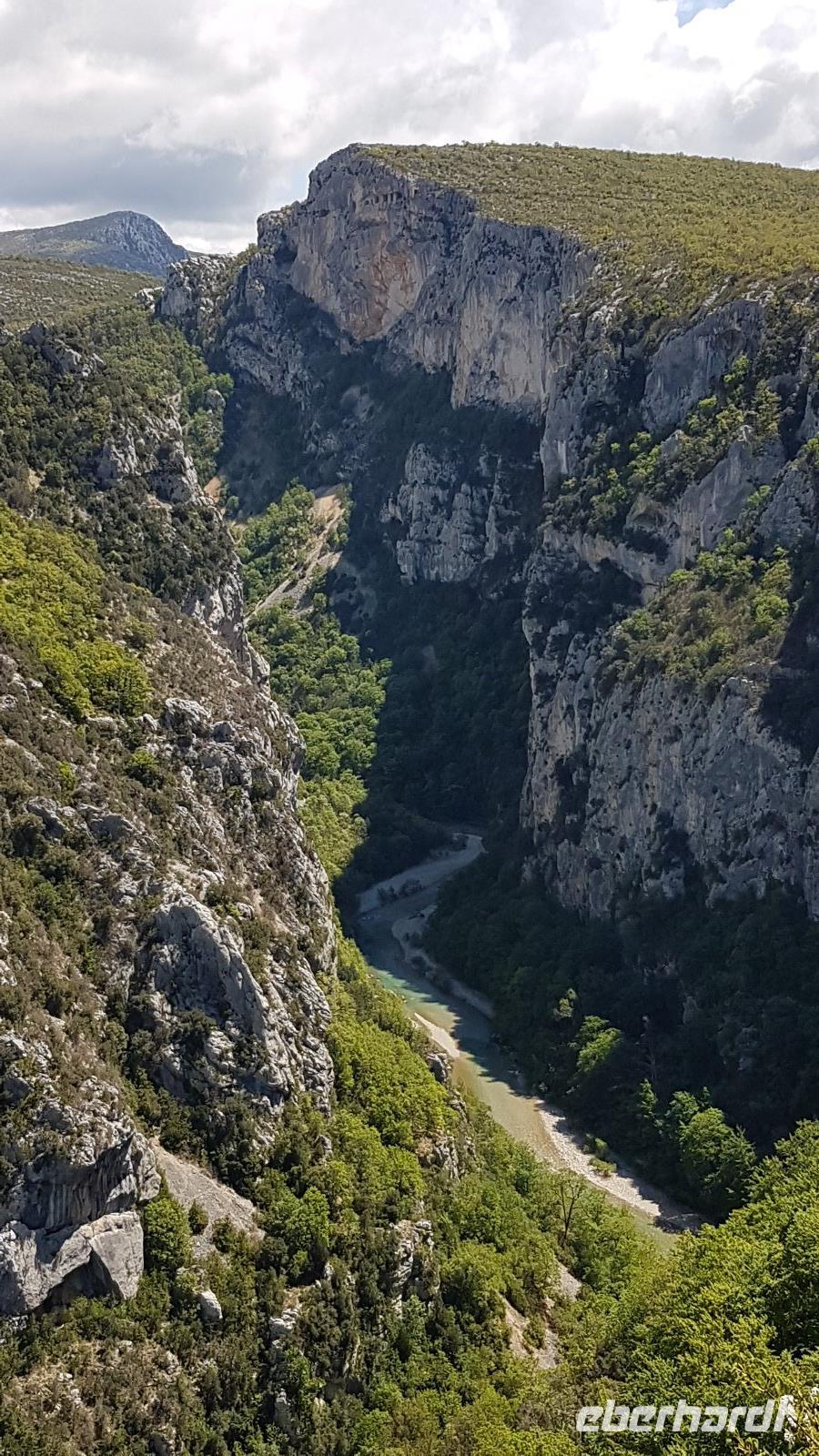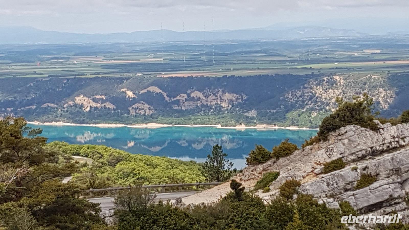 Danach geht es los zu den Gorges du Verdon, eine mehrere kilometer lange, großartige canyonartige Landschaft. Durch die „Corniche sublime" genießen wir tolle Aussichten, zum Beispiel am Col d'Illoire (Illoire-Pass) oder les Cavaliers (die Reiter), wo man auf der schönen Aussichterrasse des Restaurants auch sehr gut essen kann.
