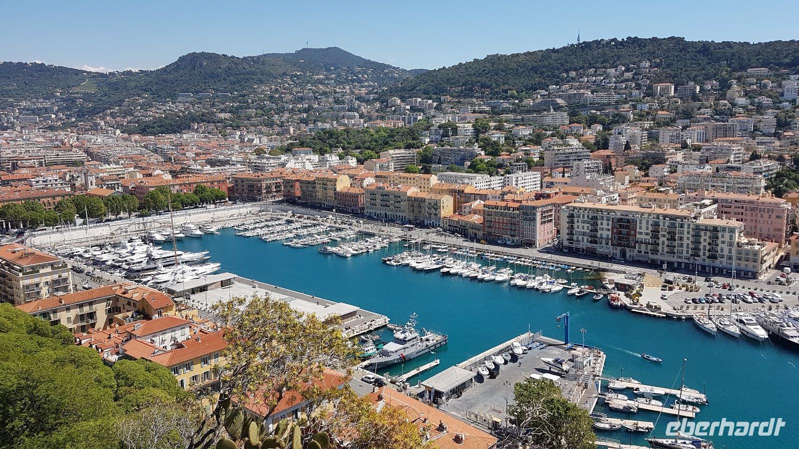 Heute Morgen ist eine Führung durch Nizza geplant. Sie beginnt in der Straße Saint Francois de Paule über den Place Masséna, mit dem Kunstwerk „Conversation à Nice" (Statuen auf Säulen). Es geht weiter an der Fontaine du soleil (Brunnen der Sonne) vorbei Richtung Vieux Nice mit der Oper und natürlich den berühmten Markt am Cours Saleya. Dort kann man nicht nur Blumen und Gemüse kaufen, sondern auch eine Socca (Pfannkuchen aus Kichererbsenmehl, Spezialität aus Nizza) probieren. Der Weg führt uns danach weiter an der wichtigsten Kirche der Stadt, Sainte-Réparate, die Schutzpatronin der Stadt. Wir sehen auch die Kirche Saint-Martin, gegenüber steht das Denkmal der Lokalheldin Jeanne Ségurane. Dann geht es zum stilvollen place Garibaldi und zum Hafen, dem Port Lympia. Wir machen dort eine willkommene Pause beim Traditionshaus Florian, wo leckere kandierte Früchte und Marmeladen hergestellt werden. Nach dieser Stärkung gehen wir weiter zum Ehrenmal der Kriegsgefallenen und zur unteren Aussicht auf Nizza mit der Promenade des Anglais. Ein sehr willkommener Lift bringt uns danach direkt zum Schlosshügel, wo wir die Stadt und das Meer betrachten dürfen, unter anderem das legendäre Hotel Negresco. Am Nachmittag fahren wir mit einem Teil der Gruppe nach Monaco, wo die nette lokale Gästeführerin uns empfängt. Die anderen Teilnehmer können in Nizza bleiben zum Baden, Einkaufen oder Besuch einer der vielen interessanten Museen der Stadt.