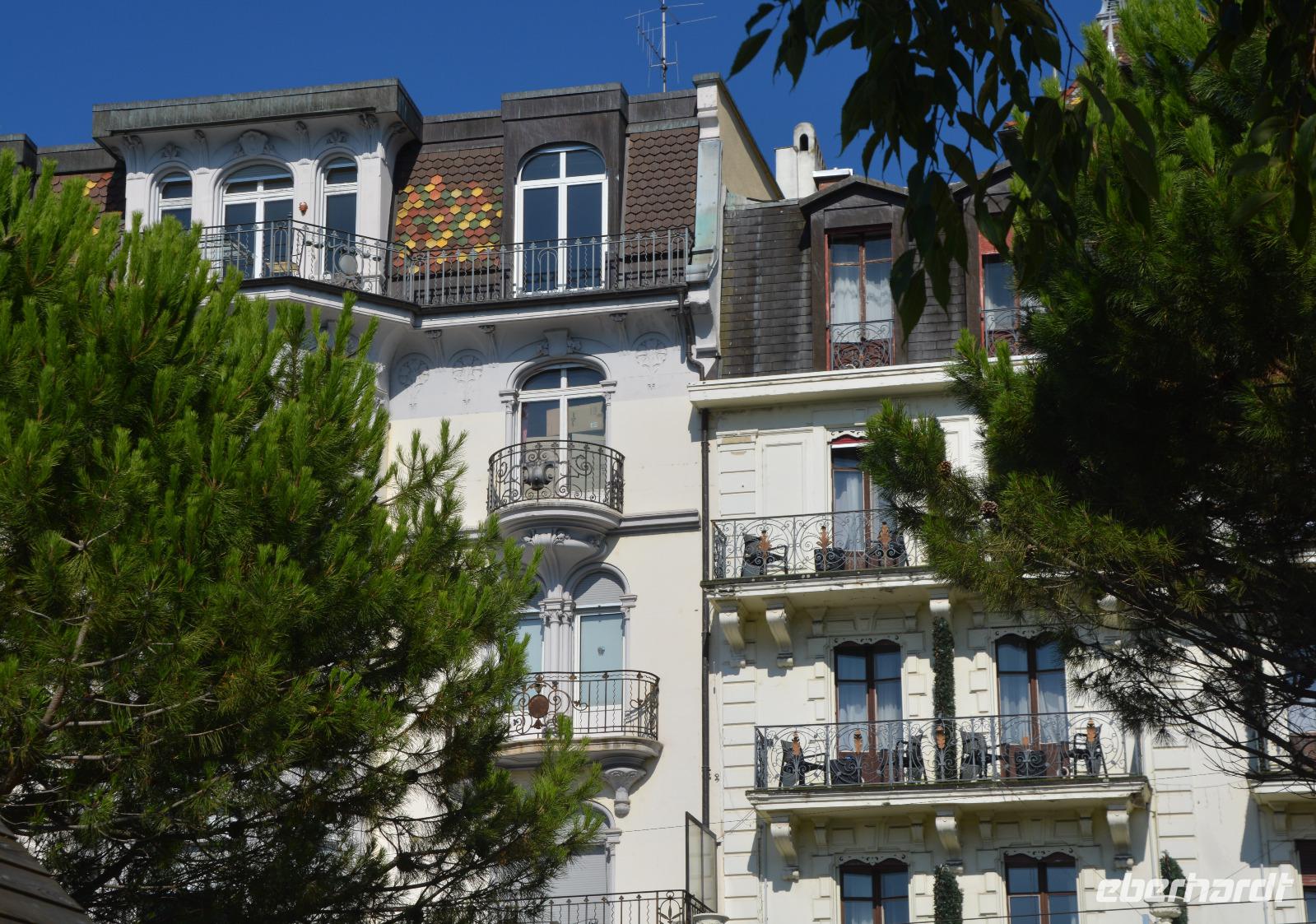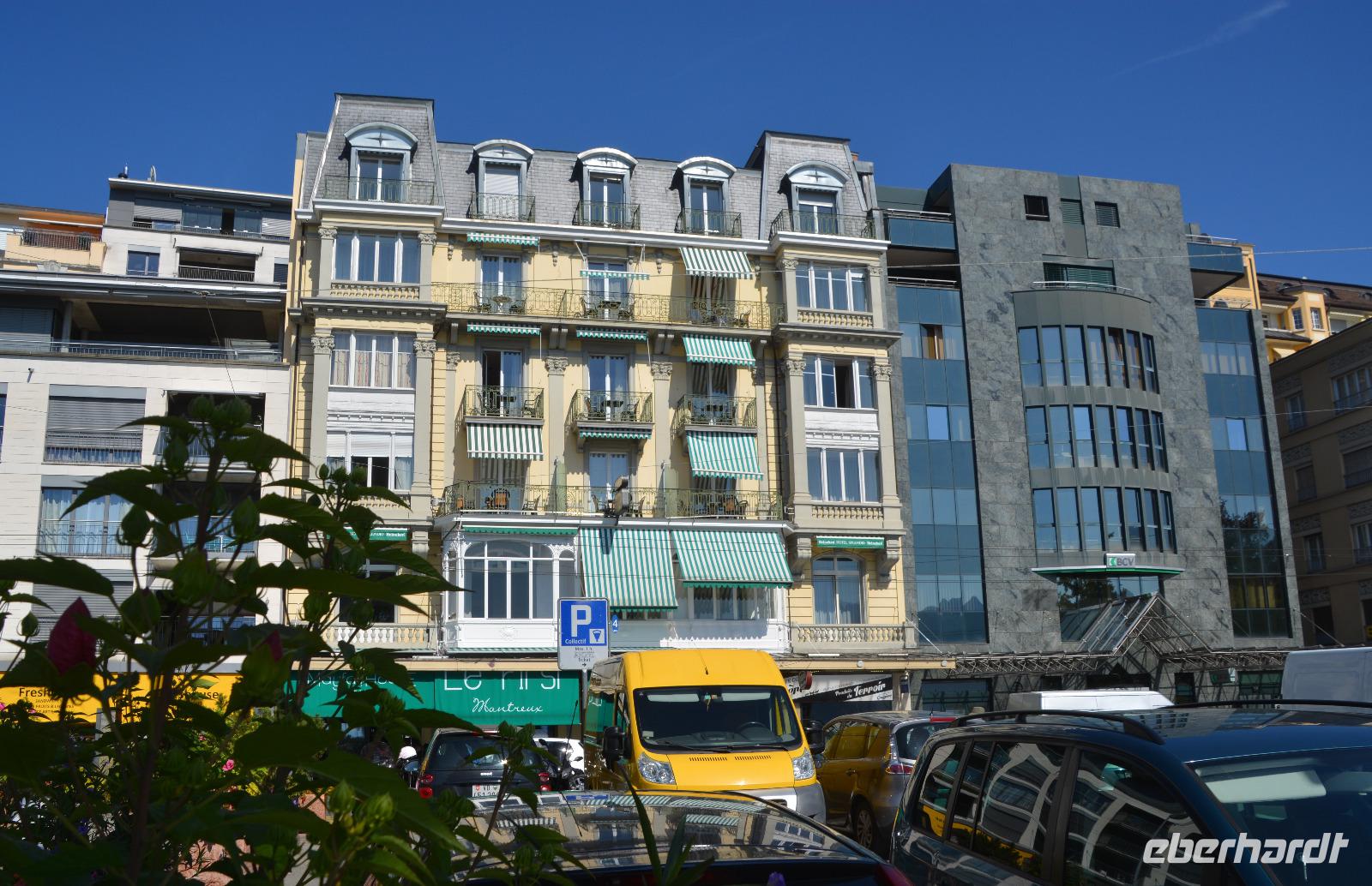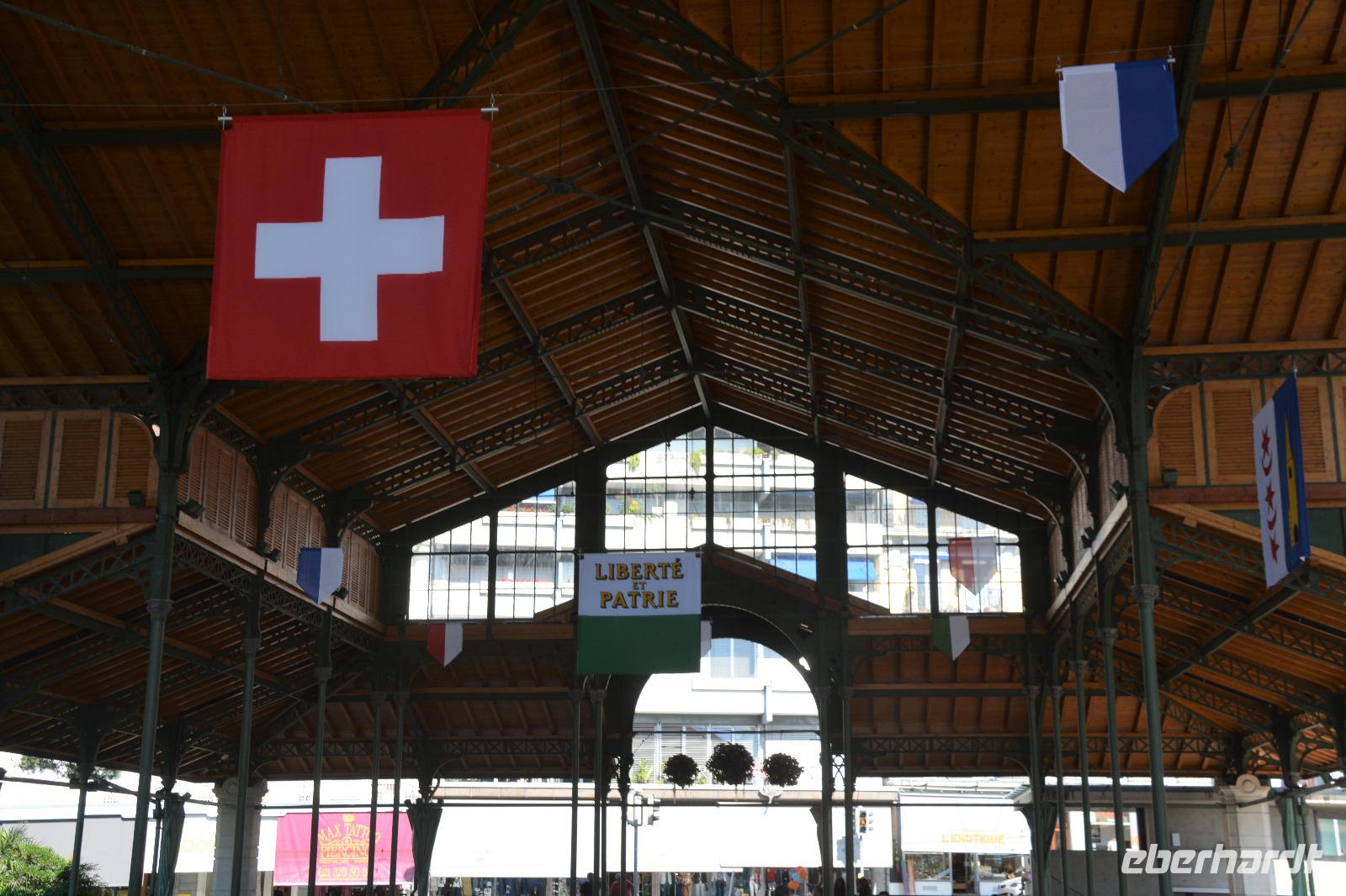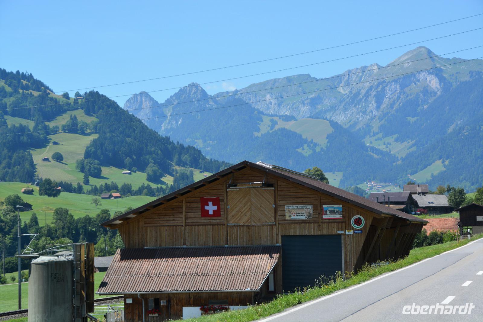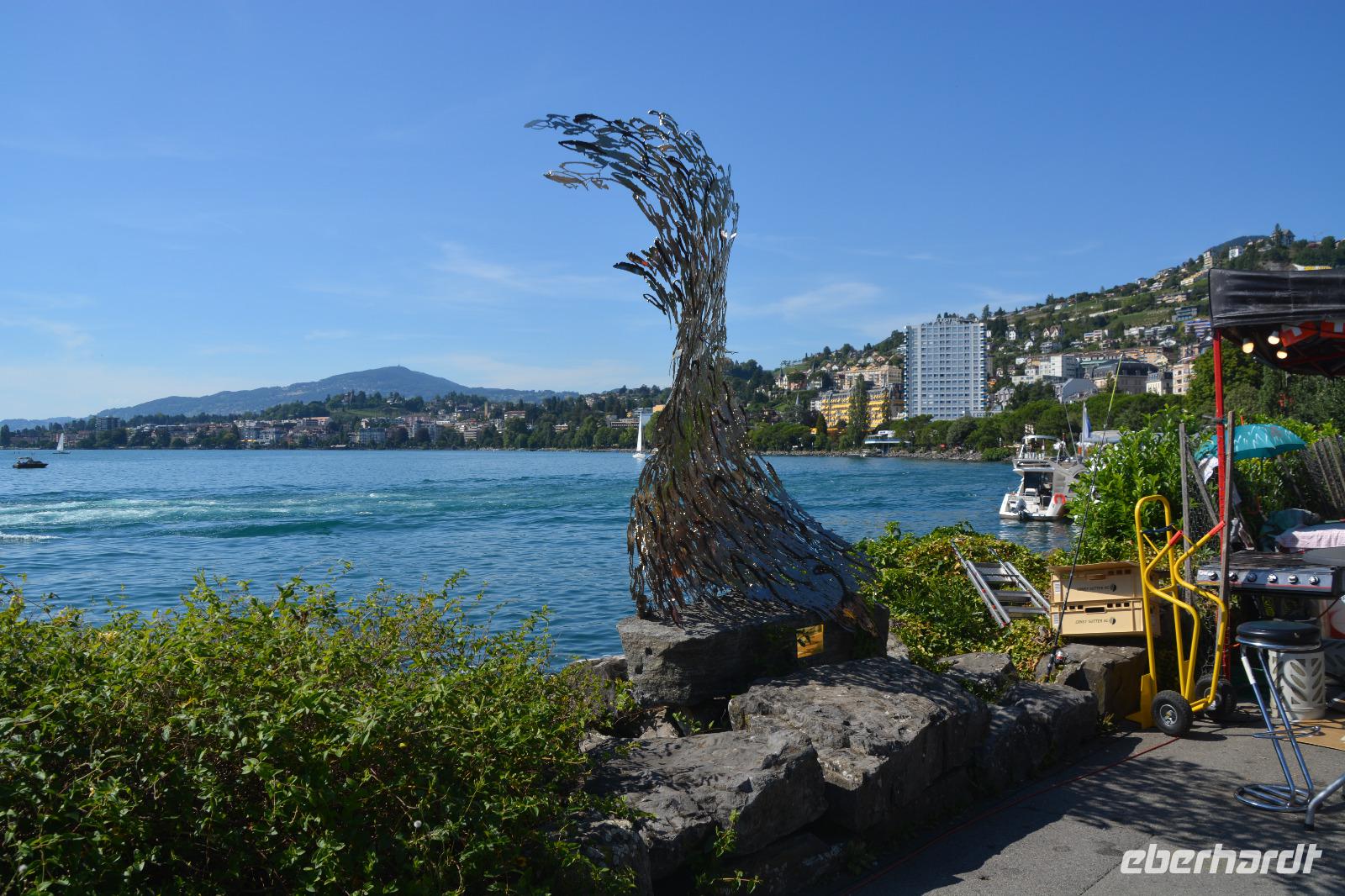 In einem sehr schönen Restaurant nehmen wir das sehr gute Frühstück ein. Aber wo steckt nur die Butter, die Milch und der Käse? Es dauert einen Moment bis wir herausfinden dass sich alles gut gekühlt in einem der farbigen Kühlschränke versteckt. Der Inhalt ist reichlich und alle werden satt. Danach starten wir den Tag und fahren in Richtung Interlaken. Wir erfahren etwas über die Geografie und die Bedeutung dieses Gebirges, welches so selbstverständlich für bestimmte klimatische Konstanten in Europa sorgt. Auch bekommen wir einen Überblick über die Geschichte der Schweiz, die wir heute durchfahren. Schon bevor wir in den Ort Interlaken gelangen erblicken wir, dank guter Fernsicht, das sog. "Dreigestirn": Eiger, Mönch und Jungfrau. Alle drei Berge haben eine ansehnliche Höhe von ca. 4000 m und gehören zu den Berner Apen. Die Eiger-Nordwand, die für jeden Bergsteiger aufgrund der Unberechenbarkeit des Wetters eine Herausforderung darstellt, sieht auch aus der Ferne beeindruckend aus. Der Ort Interlaken liegt, wie der Name schon sagt, zwischen zwei Seen: dem Thuner See und dem Brienzer See. Die Thermik im Ort scheint gut zu sein, denn es fliegen zahlreiche Gleitschirmflieger über der Kirchturmspitze und landen in der Nähe unseres Parkplatzes. Nach einer Pause hier in diesem Urlaubsort fahren wir durch das Simmental nach Gstaad wo unsere Bahnfahrt mit dem "Golden Pass Panoramic" startet. Das Simmental, eine wirkliche Bilderbuchlandschaft mit Almen und schönen Dörfern, erfährt durch die Bahnfahrt noch eine Steigerung. Wir fahren durch eine atemraubende Bergwelt. Steil sind die Hänge an denen sich Chalets und alte Bauernhäuser klammern. So manchem stellt sich die Frage, ob er hier leben könnte mit der Abgeschiedenheit und dem komplizierten Zugang im Winter. Das Wetter ist heute noch ein wenig wechselhaft und wir erwarten mit Spannung die weitere Entwicklung, wollen doch morgen einige von uns hoch hinaus. Jetzt aber kommen wir erst einmal auf der anderen Seite der Berge oberhalb von Montreux an. Steil und verhältnismäßig schnell bewältigt der Zug die letzten Kehren wieder mit einer tollen Aussicht auf diese Stadt am Genfer See. Schließlich sind wir dort und spazieren vom Bahnhof in Richtung Seepromenade. Dort angekommen entdecken wir schon bald den Bus mit Harald unserem Fahrer der uns schon erwartet. Jetzt aber schauen wir uns erst einmal in Montreux um. Hier an der Promenade sind heute am Sonntag viele Menschen unterwegs. Man promeniert und so manch einer möchte auch gesehen werden. Oder auch gehört - wie die Jazzband die auf einer Tribüne ein kleines Konzert gibt. Eisstände konkurrieren mit anderen Snackangeboten. Und in der Mitte des Ganzen steht kein Geringerer als Freddie Mercury, der hier einige Zeit am Ende seines Lebens verbrachte. Hier in Montreux traten Bands auf die Geschichte schrieben: Frank Zappa, Deep Purple und viele andere. Alljährlich findet hier das berühmte Jazz-Festival von Montreux statt. Als Jean Jacques Rousseau hier verweilte, wußte man davon allerdings noch nichts. Allerdings gab es da schon das Schloß "Chillon" an dem wir auch noch einen Fotostopp einlegen. Nachdem wir die Zeit im Ort genossen haben müssen wir noch weiter nach Martigny, wo wir eine Nacht in einem Hotel verbringen. Dieses Hotel liegt am Rande der antiken römischen Relikte, die wir uns morgen anschauen werden. Wir genießen die Ruhe hier im Hotel nach diesem ereignisreichen Tag bei einem guten Abendessen.
