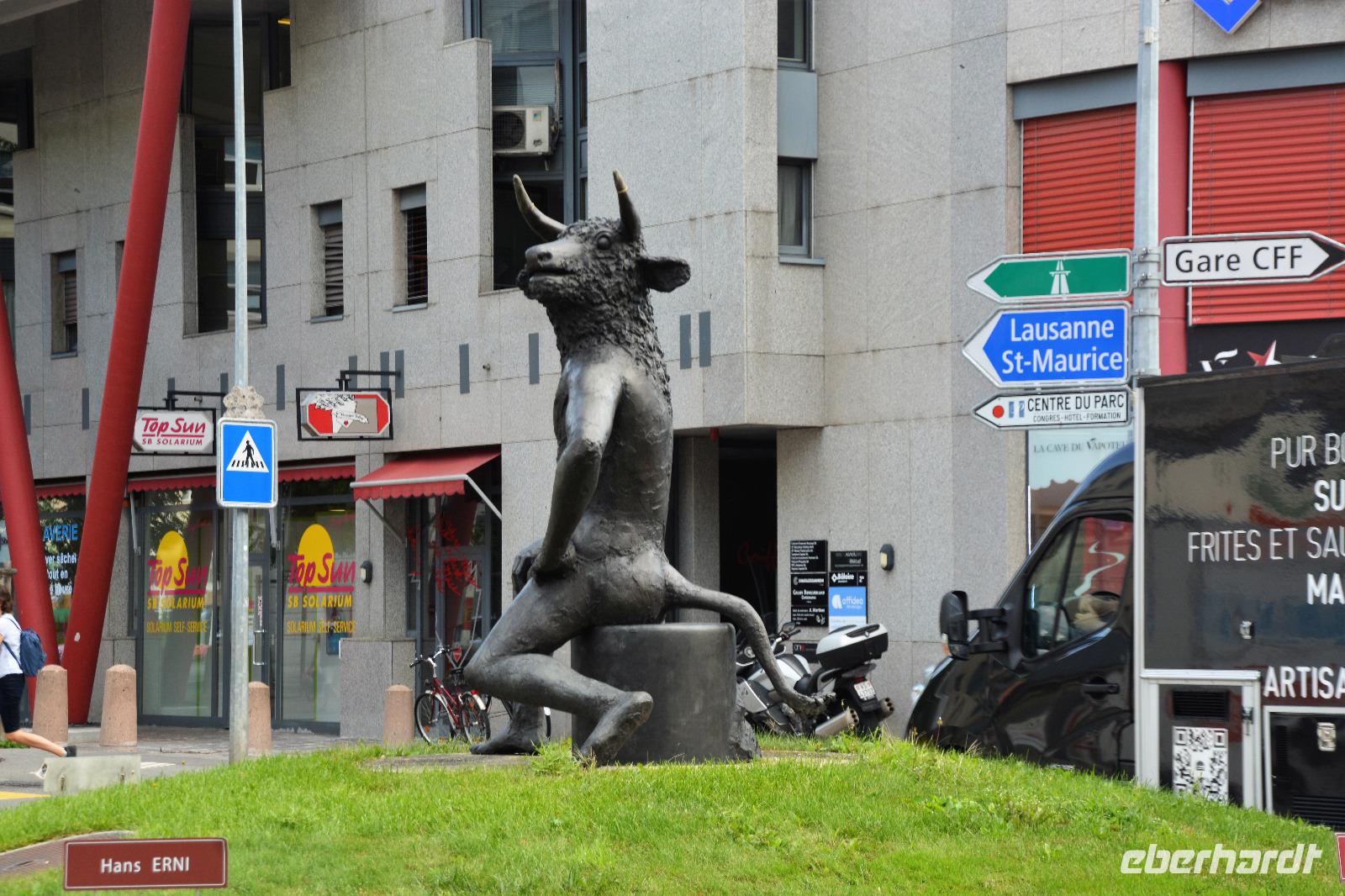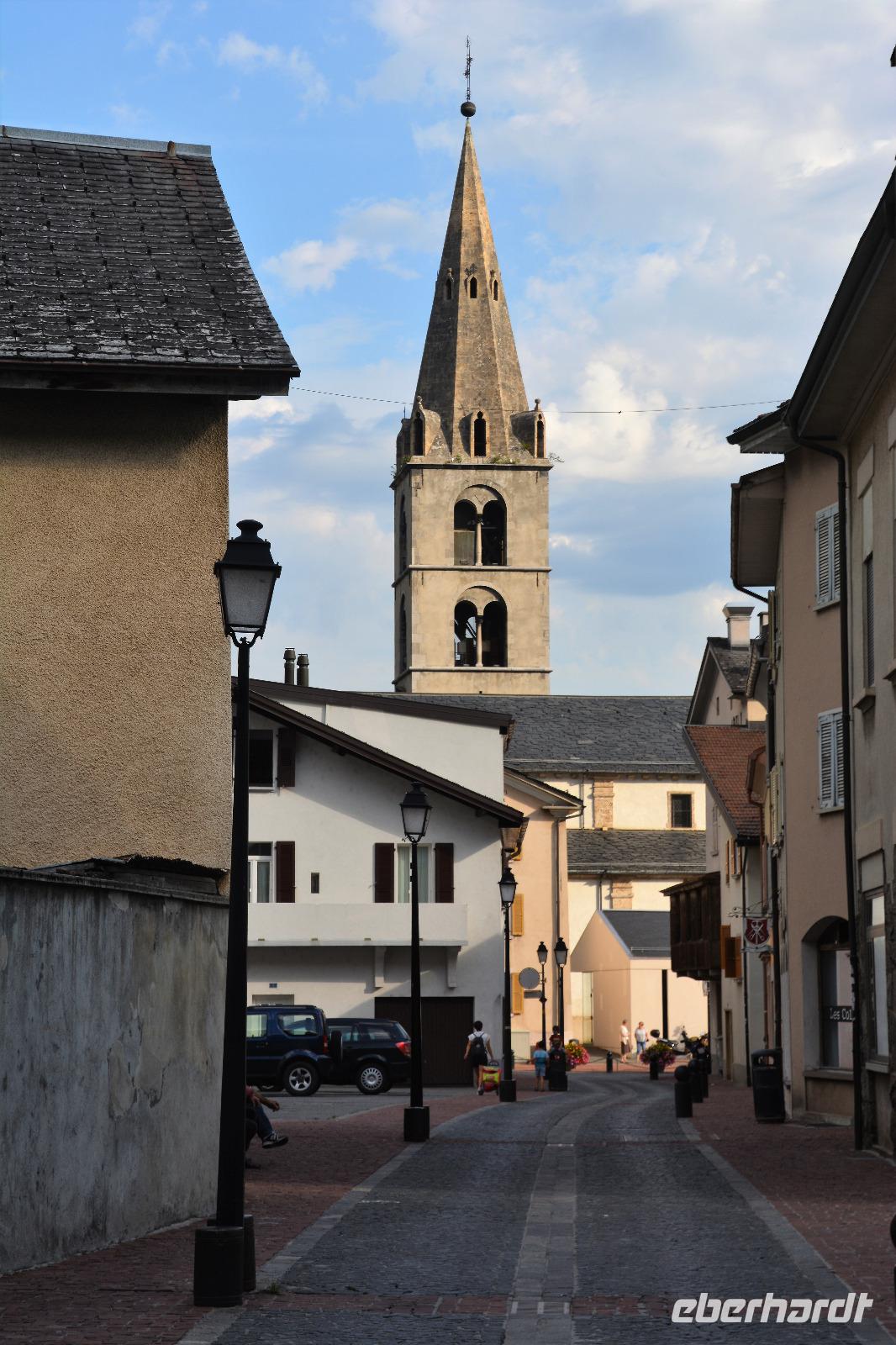 Nach der Stärkung durch ein Frühstück winken wir noch einmal unserem Bus zu, der ohne uns nach Chamonix fährt. Da unser Zug erst nach ca. 2 Stunden fahren wird, sehen wir uns bei einem Rundgang das Städtchen Martigny an. Unser erstes Ziel ist das Amphitheater welches die Römer hier für ihre diversen Freizeitvergnügungen erbauten. Schon 15 v.Chr. errichteten sie die Stadt "Octodorus" und im Laufe der Zeit kamen ein Minerva Tempel, Bäder und ein Forum hinzu. Die Reste sind in diesem Teil der Stadt verstreut. Hier in diesem Ort verlief die Straße die über den Gr.St.Bernhard, einem der ältesten Alpenpässe, nach Süden führte.