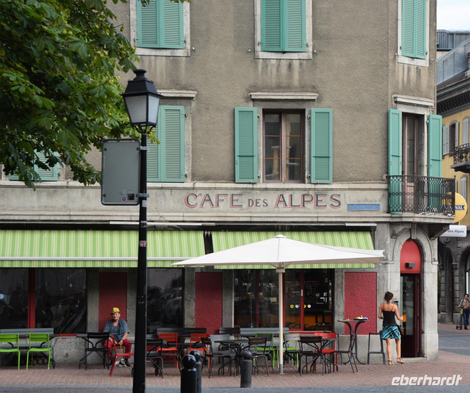 Von hier werden einige mit einer Zahnradbahn zum "Mer de Glace" fahren. Gina unsere Reiseleiterin muss sich beeilen, dass sie mit den anderen zur Bergbahn zum "Aiguille du Midi" rechtzeitig ankommt, denn die Gruppen sind angemeldet. Aber auch das funktioniert und die jeweiligen Bergabenteuer können beginnen. Der Gletscher nimmt wie alle anderen auch in den Alpen kontinuierlich ab und wir müssen nach Ankunft ein weiteres Stück hinablaufen um ihn zu erreichen. Der Gletscher, der früher ins Tal von Chamonix hinabfloss und ein beliebtes Motiv für Maler und Fotografen war, verliert jährlich zwischen 4 und 6 m Höhe und wird sicher irgendwann verschwinden. Der andere Teil der Gruppe genießt die Aussicht auf das Mont-Blanc-Massiv und ein anderer Teil geht sich im Ort vergnügen der auch einiges zu bieten hat.