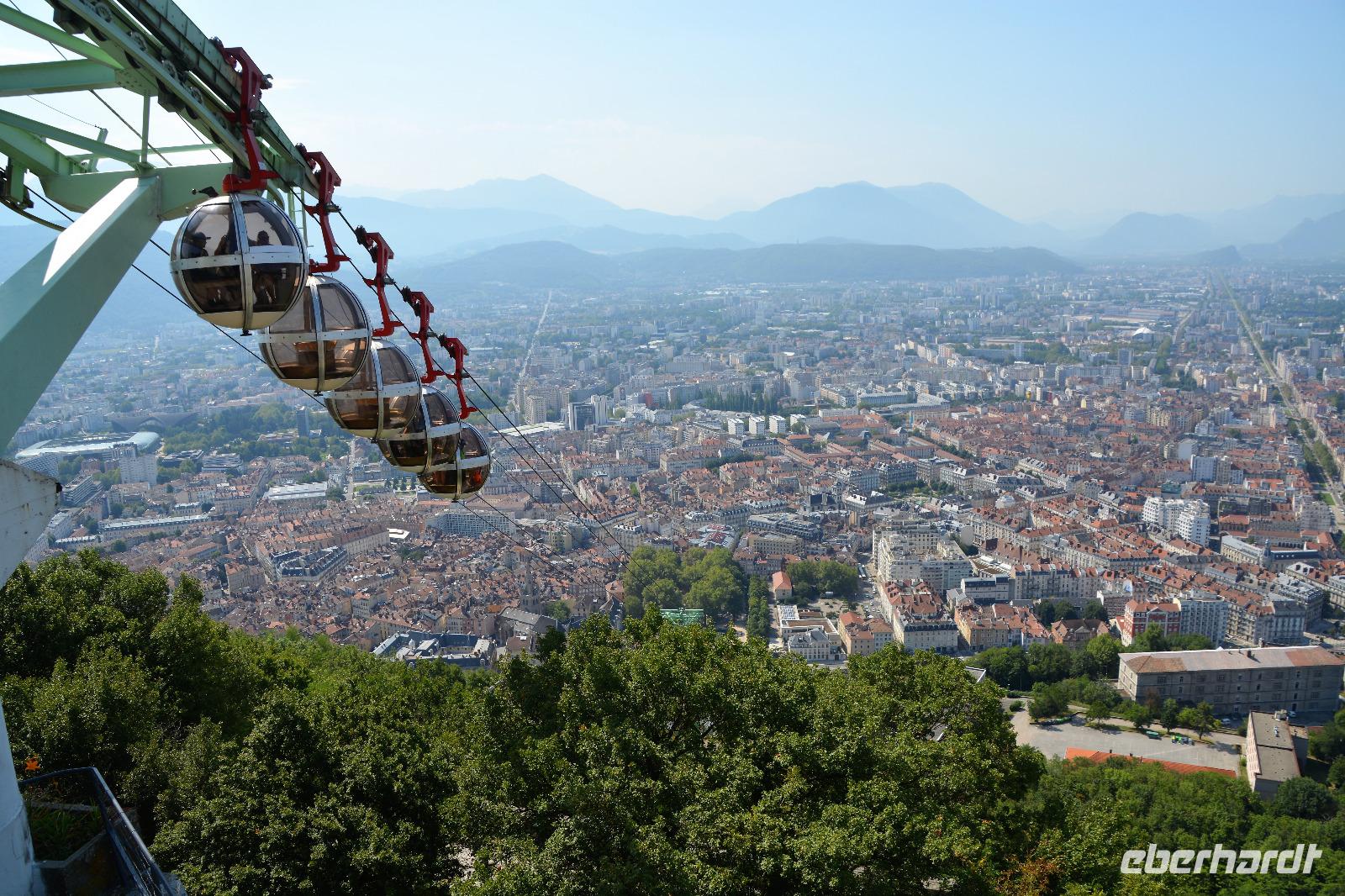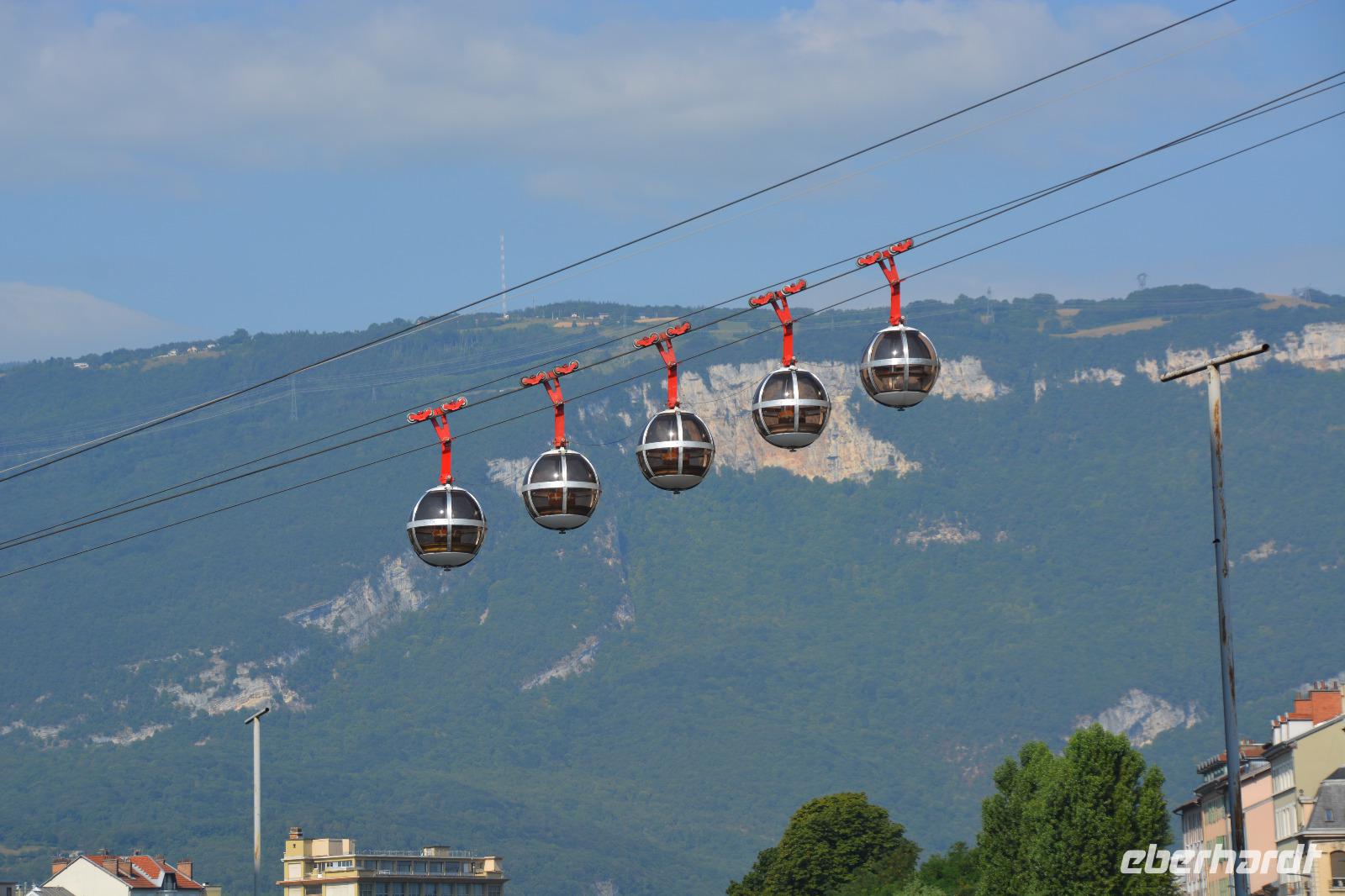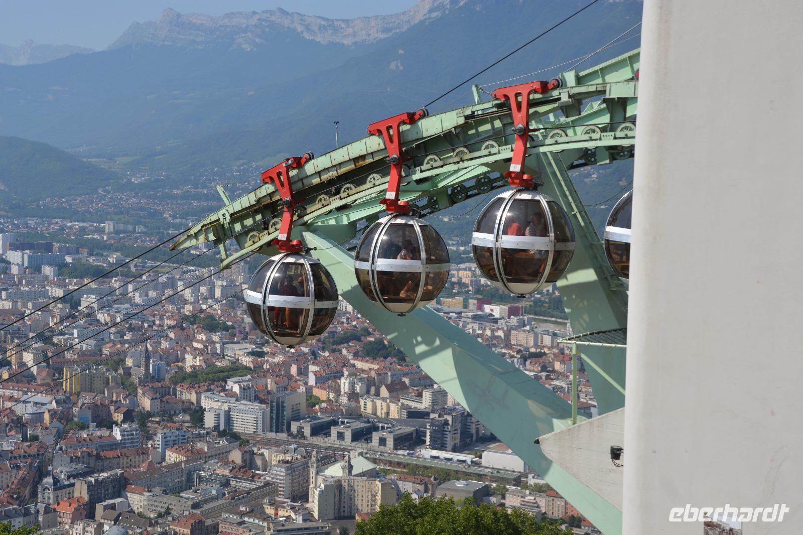 Der Tag heute verspricht sonnig und warm zu werden und so fahren wir nach unserem Frühstück in die Innenstadt von Grenoble. Wir parken unseren Bus an der Seilbahnstation von der wir später hinauf zur "Bastille" der Festung fahren werden. Von hier laufen wir vorbei am Stadtpark "Jardin de Ville" und dem alten Rathaus in Richtung "Place Grenette". Auf dem Weg dorthin kommen wir an einem Hotel vorbei in dem Napoleon genächtigt haben soll. Am Platz bewundern wir die Gebäude verschiedener Epochen und den Springbrunnen. Weiter geht es zu der Markthalle "Ste.Claire" aus dem 19.Jahrhundert und dann weiter zur Kathedrale "Notre Dame". Wir spazieren zurück an der Isère in Richtung Bus, wo wir uns, nach ein wenig Zeit für uns alle, treffen um die "Boules" (Seifenblasen) zu besteigen, die uns zum 630m hoch gelegenen "Fort de la Bastille" bringen. Max. 6 Personen passen in eine Blase und schnell geht die Fahrt nach oben. Diese Bahn wurde schon 1934 errichtet, allerdings mit eckigen Gondeln. Die "boules" gibt es seit den 70er Jahren. Von hier oben haben wir eine gute Sicht auf die Grenoble umgebenden Berge. Man bekommt eine Idee von der Ausdehnung Grenobles, welches auch über überregional bedeutende Universitäten an denen z.B. Jacqueline Kennedy Onassis und Richard von Weizsäcker studierten verfügt. In dem international bekannten Universitätsklinikum wurde Michael Schumacher (Schumi) nach seinem Skiunfall behandelt. Für die ebenfalls vorhandenen Museen haben wir keine Zeit, denn unser nächstes Ziel ruft: wieder eine Bahn ..... eine Schrägseilbahn, die "Funiculaire de Tuvet". Wir sind rechtzeitig am Start in Montfort an diesem niedlichen kleinen Bahnhof. Diese Bahn wurde 1924 eröffnet um Tuberkulose Patienten in die gute Bergluft zur Genesung zu bringen. Heute ist sie eine Attraktion, da sie zu den steilsten Schrägseilbahnen weltweit gehört. Nun sehen kann man nicht viel und komfortabel ist auch etwas anderes. Aber die Bahn fährt nicht lange und schon bald sind wir in St. Hilaire mit einem kleinen Museum, diversen gastronomischen Angeboten und unserem Bus. Harald hat wie immer seine Fahrkünste auf der engen und kurvigen Strecke anwenden können. Wir verspeisen unseren Nachtisch vom Vortag zu einer guten Tasse Kaffee. Wie gut wenn man einen großen Kühlschrank an Bord hat. Aber wir müssen los, denn die Provence wartet auf uns. Wir fahren über die N85, welche von Grenoble nach Cannes führt, auch bekannt als "Route Napoleon", in Richtung Süden. Diese Strecke mit einer Länge von 335 km legte Napoleon mit 800 Getreuen (1200 nach anderen Quellen) einst in einem 7-tägigen Gewaltmarsch zwischem dem 1. und 7.März 1815 zurück. Er war auf dem Rückweg aus der Verbannung auf der Insel Elba und wollte die Macht zurückerobern. Sein Ziel war Paris welches er am 20.März erreichte. Danach begann die sog. Herrschaft der 100 Tage die nach der Schlacht von Waterloo mit seiner Abdankung endete. Ein Stück französische Geschichte, die durch diese Straße mit dem "Flug des Adlers" erinnert wird. Nun, wir haben friedliche Ziele als wir in Sisteron ankommen. Es war ein heißer Tag, der in einem typisch französischen Provinzhotel endet. Wir sind in der "Provence" angekommen.