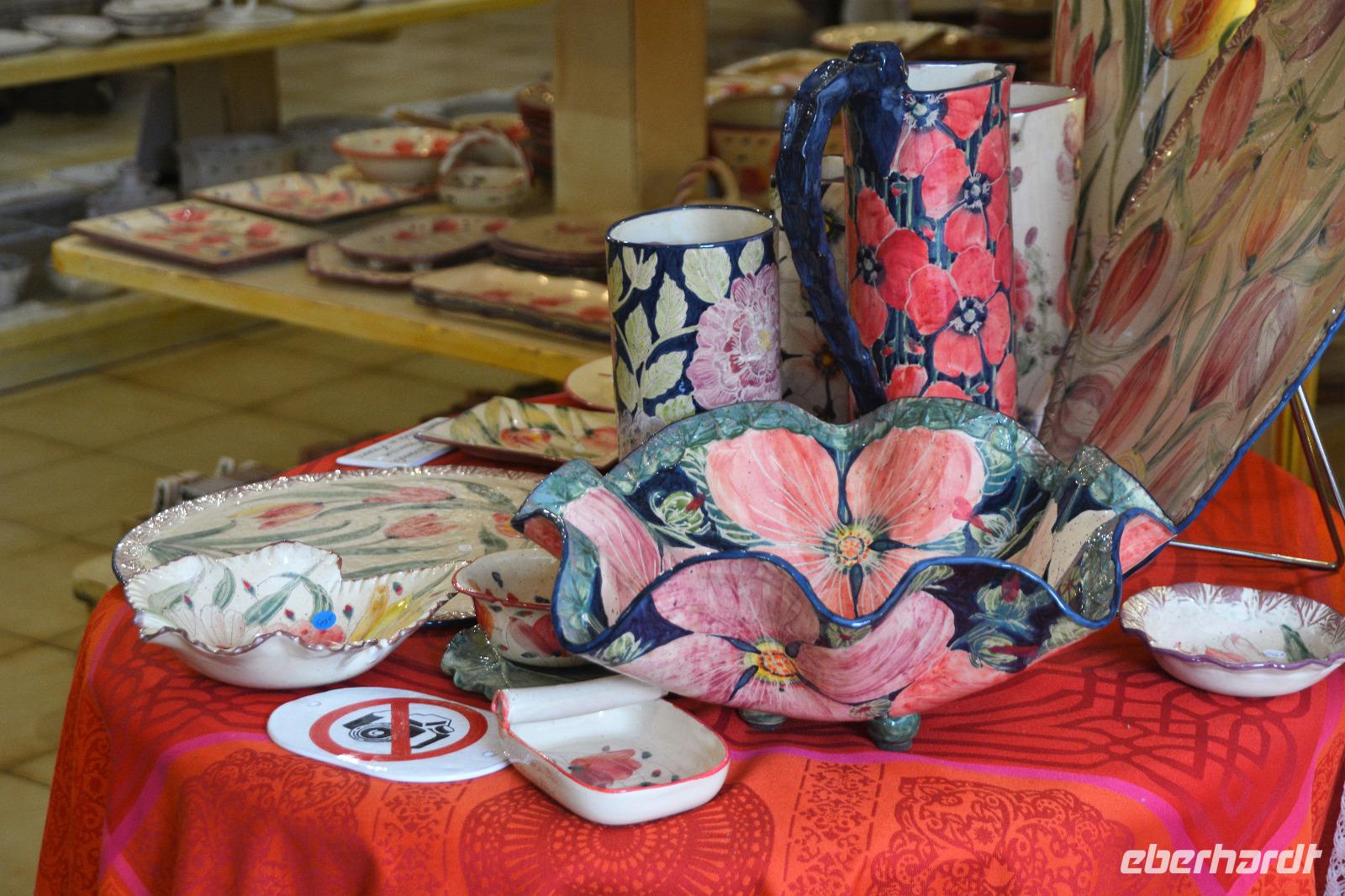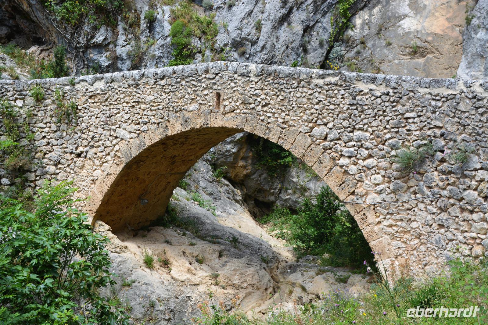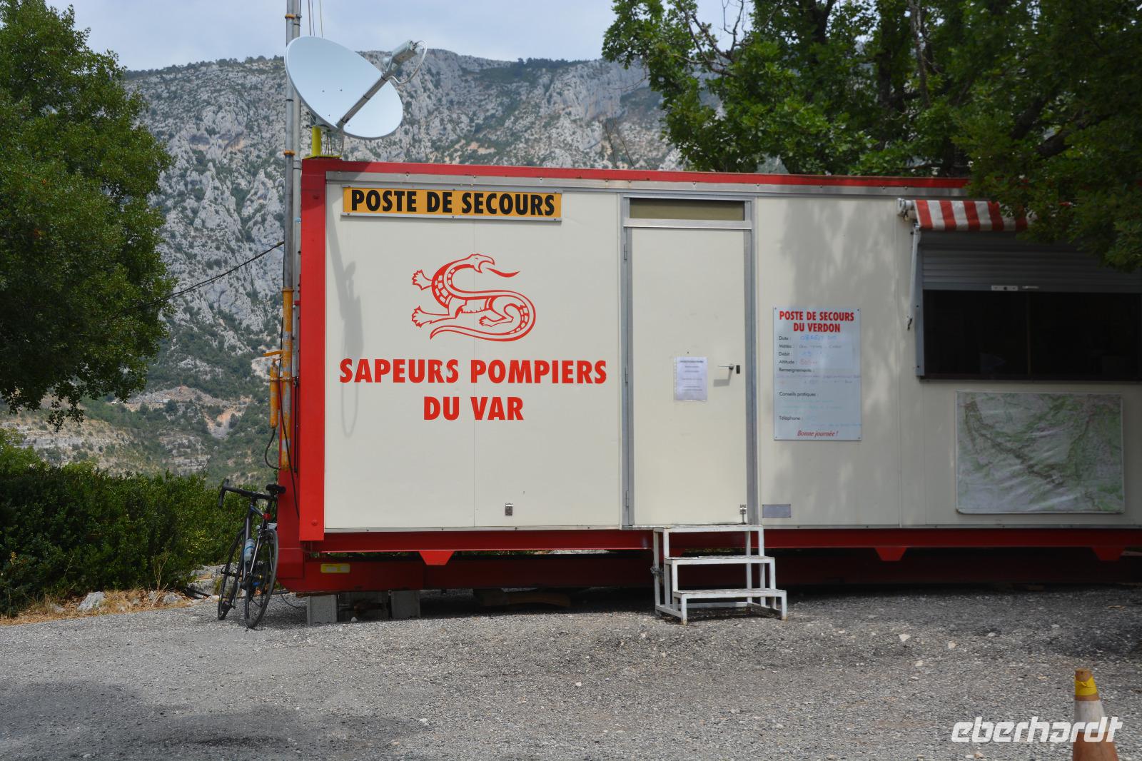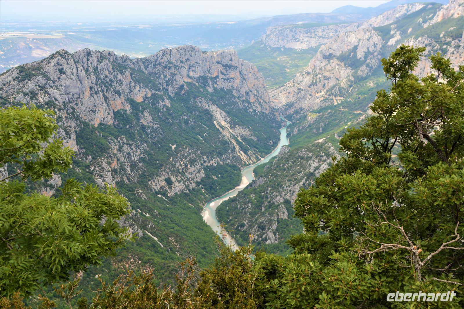 Am nächsten Morgen beginnt eines der größten Abenteuer dieser Reise, eine Fahrt durch die wohl berühmteste Schlucht Europas, dem "Canyon de Verdon". Tief eingegraben durchzieht sie 21 km lang den Süden Frankreichs. Wir fahren erst in eines der schönsten Dörfer Frankreichs, nach Moustiers-St-Marie. Der Ort mit ca. 700 Ew. hat nicht zu Unrecht dieses Prädikat, liegt er doch malerisch an einem Hang und wird von der Wallfahrts-Kapelle "Notre-Dame de Beauvoir" gekrönt. Es ist ebenfalls ein bekannter Töpferort in der Region. Da unser Bus nicht in den Ort hineinfahren darf, spazieren wir in ca. einer Viertelstunde ein wenig bergauf in den Ort. Gina zeigt für diejenigen, die zur Kapelle hinauf wollen, den Einstieg zu diesem steilen Treppenweg.