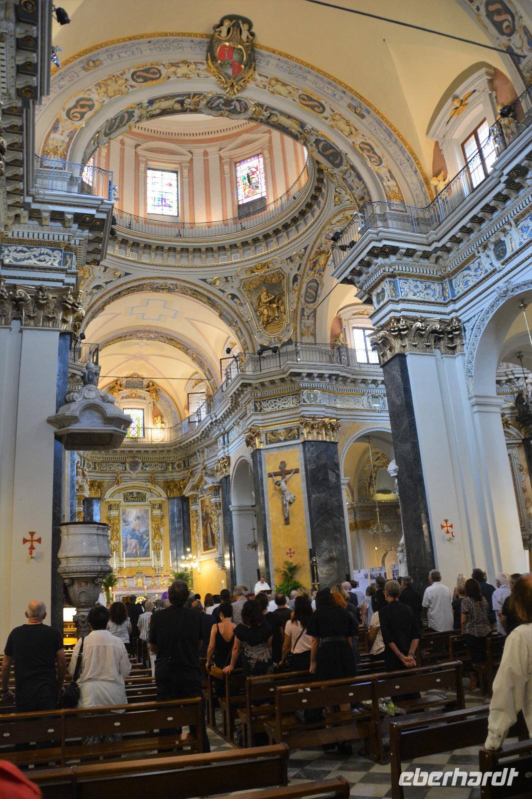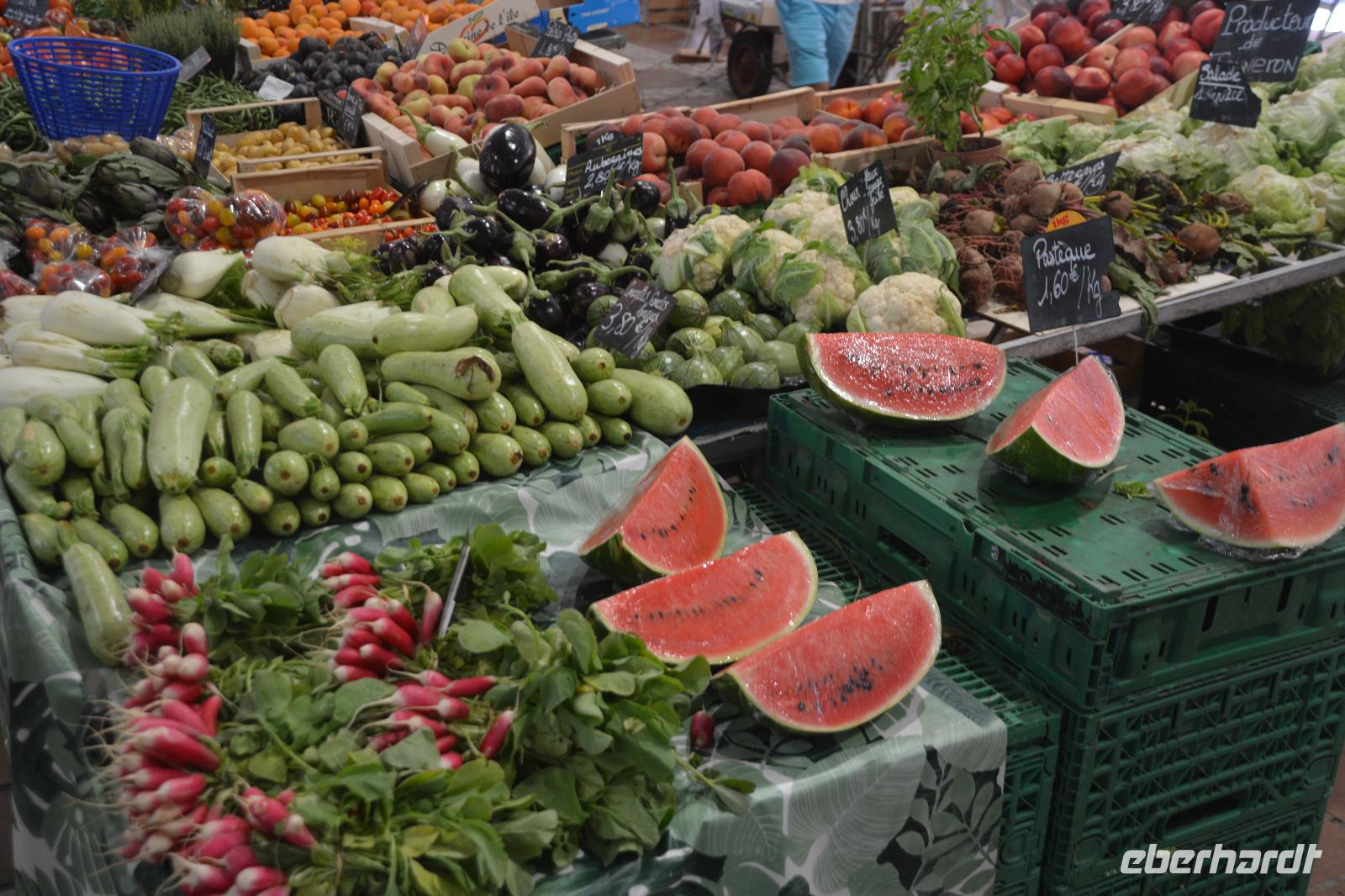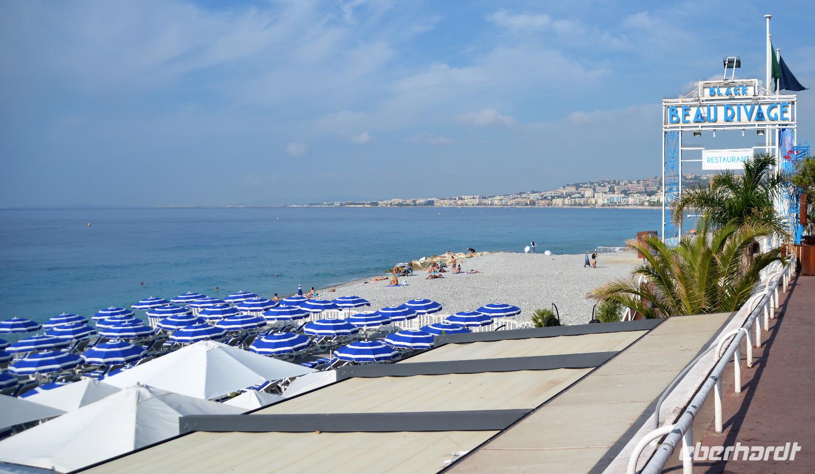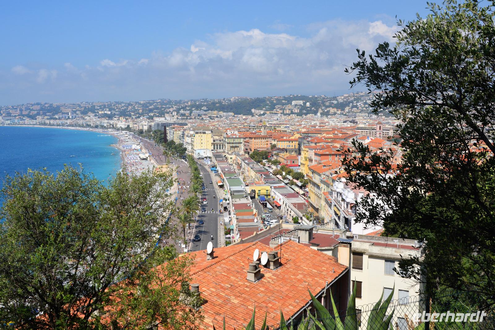 Nach einem üppigen Frühstück starten wir heute mal ein wenig später, d.h. wir können ausschlafen. Nur nicht zu lange, denn es wird wieder heiss werden und Nizza ist eine interessante Stadt. Wir fahren mit unserem Bus vorbei an dem sehr italienisch anmutenden "Place Massena", zum "Boulevard des Anglais", übersetzt "Boulevard der Engländer". Er heisst so, weil es einst Engländer waren die zum Aufschwung der Stadt im 19.Jahrhundert beitrugen. Ein weiterer Faktor war der Bau der Eisenbahnlinie, die 1864 die Stadt erreichte. Durch den Bau des Bahnhofs damals außerhalb der Stadt bliebt die Altstadt von Nizza gut erhalten. Hier logierte der europäische Hochadel, so der russische Zar und natürlich kam auch Queen Victoria hierher. Das "Grand Hotel Negresco" an welchem wir vorbeifahren ist ein Symbol dieser Zeit, wurde es doch im Auftrag des reichen Rumänen Henri Negresco erbaut. Kein Geringerer als Gustav Eiffel konstruierte die rosa Kuppel die weithin leuchtet - besonders nachts. Auch dieses Hotel hat seine Geschichte, wurde es doch zeitweilig als Militärkrankenhaus genutzt. Nach dem 2.Weltkrieg kamen die Stars, wie die Beatles, Romy Schneider und Alain Delon, Edith Piaf, die berühmte französische Chansonsängerin und auch Clint Eastwood. Heute kann man es sich im Stil der Belle Époque in einem der fast 100 Zimmern gute gehen lassen, wenn man bereit ist das nötige Kleingeld auszugeben. Am Garten Albert I. verlassen wir den Bus und gehen entlang der Promenade in Richtung Altstadt. Ein Liegestuhl hier kostet hier einiges pro Tag, aber ist eigentlich unabdingbar bleibt man länger zum Baden, denn der Strand ist ein grober Kiesstrand auf dem das Liegen nicht unbedingt sehr bequem ist. Aber darum geht es in Nizza eigentlich nicht. Sehen und gesehen werden ist die Devise. Jetzt am Morgen sind die Jogger und die Walker auf der Promenade. Wir gehen vorbei an der Oper zum lebendigsten Platz der Altstadt, dem Cour Saleya mit dem Blumenmarkt auf dem es nicht nur Blumen sondern alle Lebensmittel gibt, welche die Provence zu bieten hat. Hier wird auch die "Socca" gegrillt, eine Art Fladen aus Kichererbsenmehl. Vorbei geht es an der Barockkirche "Chapelle de la Misercorde" welche im Juli/August leider geschlossen hat. Wir laufen bis zum östlichen Ende des Marktes und werfen einen Blick auf das Haus in dem Henri Matisse eine Zeitlang lebte. Dann biegen wir ab in die Altstadt und gehen durch enge Gassen mit buntem Treiben zur Kathedrale Sainte-Reparate aus dem 17.Jahrhundert. Gerade ist ein Gottesdienst und wir setzen uns ein Weilchen dazu, denn die Musik ist schön und ergreifend. Ein wenig feierliche und besinnliche Stimmung im sonst hektischen Nizza. Auch Nicht-Gläubige werden von der Musik und der Szenerie ergriffen.