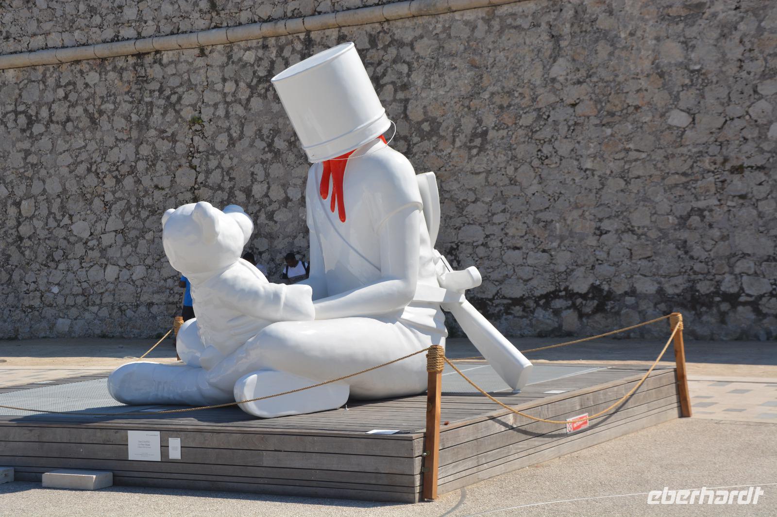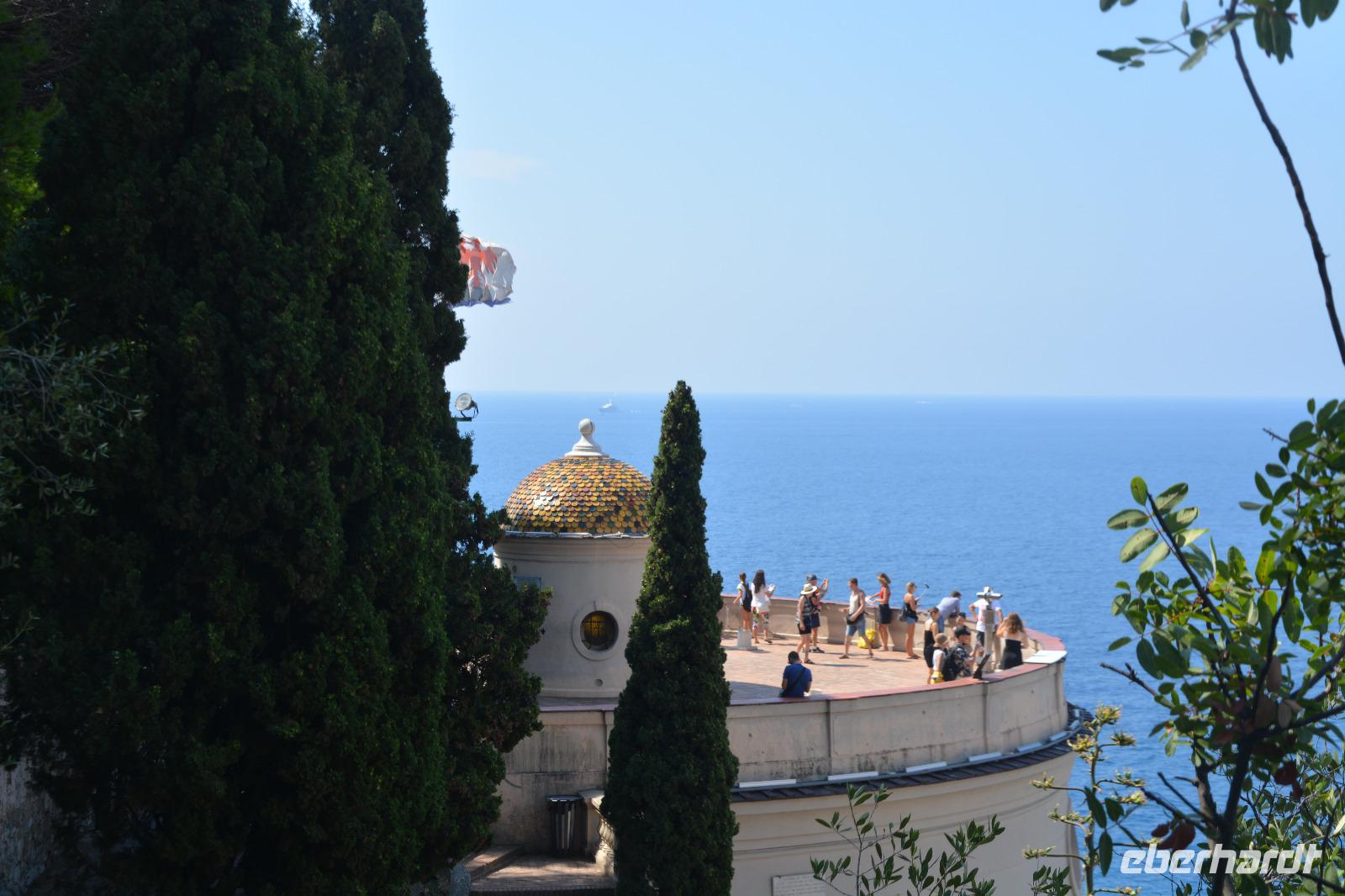 Hier an dieser Stelle geht jeder aus der Gruppe seiner Wege um eigene Erkundungen zu machen. Ein Teil geht mit unserer Reiseleiterin zum Fahrstuhl am "Colline du Chateau" wo einst das Schloss mit seiner Zitadelle stand und 1706 von den Truppen Ludwigs XIV. vollständig zerstört wurde. Wir fahren hinauf und haben noch Glück, dass nicht allzuviele anstehen. Hier oben ist ein Park der uns ein wenig Abkühlung verschafft und wir haben einen wunderbaren Blick auf die Altstadt und den Küstenstreifen von Nizza. Der Abstieg zu Fuss verläuft im Schatten und wird durch die Musik eines Akkordeonspielers begleitet. Die originelle Idee des "Invisible" (Unsichtbaren) wird ergänzt durch den originellen Kommentar eines Spenders: "Für Deine originelle Idee habe ich Dir ein Bündel Geldscheine in deine Schale gelegt, aber das ist auch unsichtbar" - eine Performance der besonderen Art. Die Zeit reicht noch für einen Kaffee und einen kurzen Imbiss bis wir mit dem Bus nach Monaco fahren. Unseren Reiseleiter Gilles treffen wir am Bus und dann geht die Fahrt auf der Küstenstraße in mittlerer Höhe in Richtung Osten. Wir kommen an ansehnlichen Villen mit einer phantastischen Aussicht auf die Küste vorbei. Hier können sich nur sehr Reiche eine Villa leisten, sicher mit dem entsprechenden Personal. Schließlich erreichen wir Monaco und obwohl das Fürstentum nicht zur EU gehört sondern als Drittstaat gilt läuft alles reibungslos und wir starten unseren Besuch am Parkhaus. Wir fahren mit einem Fahrstuhl und über Rolltreppen nach oben. Vorbei am "Ozeanografischem Museum", dessen Direktor einst Jacques Cousteau war, spazieren wir zur Kathedrale "Notre-Dame-Immaculée". Diese Kathedrale wurde Ende des 19.Jahrhunderts an der Stelle einer älteren Kathedrale im neoromanischem Stil aufgebaut und in ihr befinden sich fast alle Gräber der Grimaldis. Auch das Grab von Fürst Rainier III. und seine berühmte Ehefrau Gracia Patricia, die auch unter dem Namen "Grace Kelly" in die Filmgeschichte einging sehen wir. Einer ihrer erfolgreichsten Filme war "Das Fenster zum Hof" von Alfred Hitchcock. Ihre Tocher Caroline lebt noch zeitweise in Monte Carlo soll aber von ihrem Ehemann getrennt leben (sagt man!) Vorbei am Palast der Grimaldis werfen wir einen Blick von oben auf die Formel 1 Rennstrecke die durch Monaco führt. Etwas abseits steht der erste Grimaldi als Skulptur: "Francesco Grimaldi der Listige" dem es gelang als Franziskanermönch verkleidet in die Festung von Monaco einzudringen. Das Ganze geschah im Jahr 1297 und die Familie genuesischer Abstammung hat seitdem die Macht im Staat. Oder ist es das Geld? Im Hafen liegen die Yachten der Superreichen und ab und an fährt ein Lamborghini vorbei. Wir betrachten das phantastische Opernhaus welches von Charles Garnier erbaut wurde. Er war auch der Erbauer des berühmten Pariser Opernhauses. Alles was in der Oper und im Balett Rang und Namen hatte und hat traten bzw. treten hier auf. Der Besuch Monte Carlos wird durch einen Besuch des Foyers des Casinos gekrönt. Nach einer Taschenkontrolle könnnen wir hier vorbei an sündhaft teuren Juweliergeschäften einen Blick hinein werfen. Die Fortuna am Eingang lässt das alles kalt. Uns aber ist ziemlich warm, zeigt sich doch das Fürstentum heute von seine sommerlichen sonnigen Seite. Es wird jetzt Zeit die Rückfahrt anzutreten. Wir fahren über dieselbe Strecke zurück da es dort am wenigsten Stau gibt. Wieder geht ein Tag voll der Eindrücke seinem Ende entgegen. Wir entspannen bei einem Abendessen in unserem gut klimatisierten Hotel.