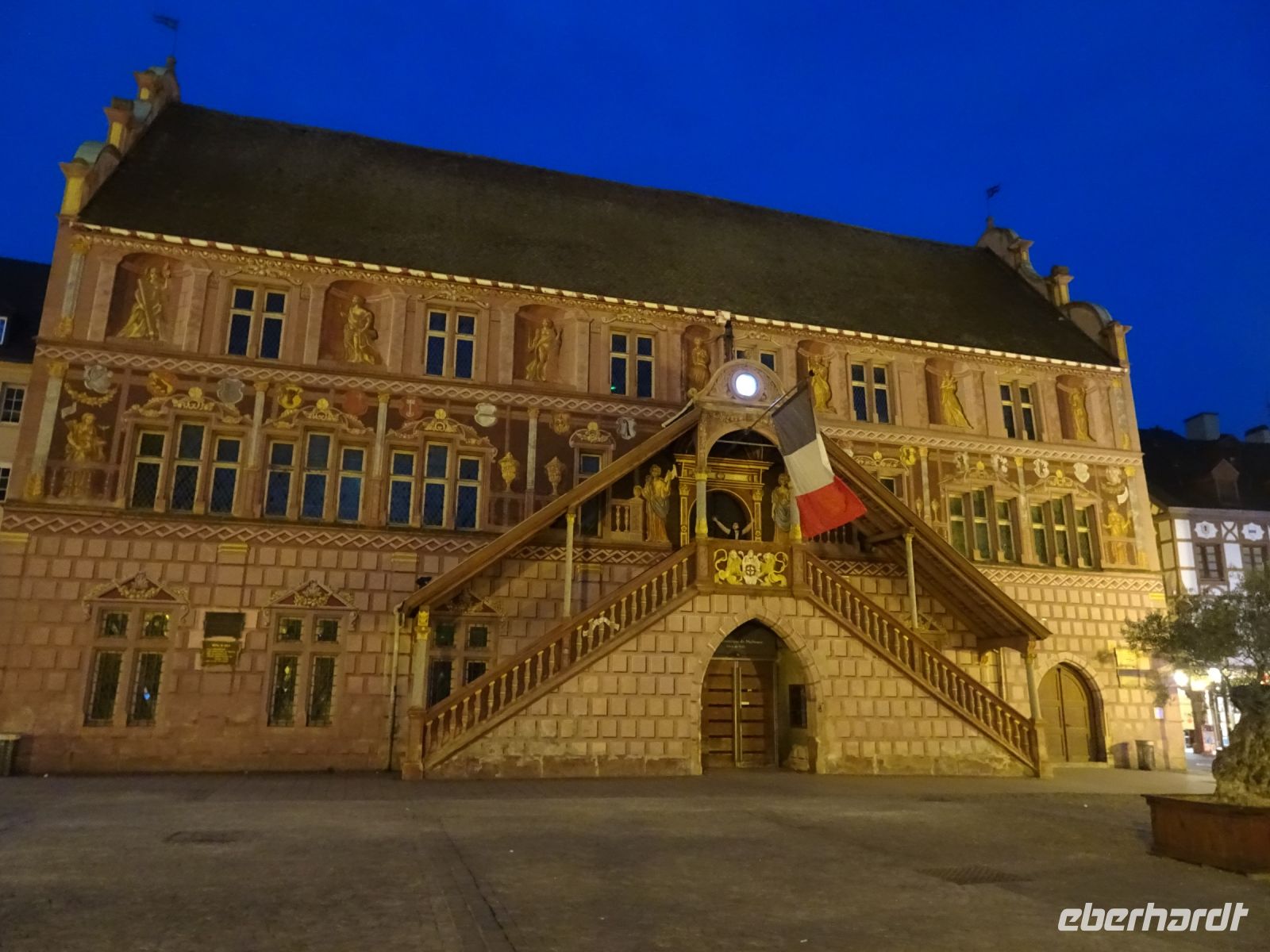 Am Abend erreichten wir nach abenteuerlicher Fahrt unseres Busses durch die pulsierende Innenstadt mit Eisständen und Verkaufsgewirr rückwärts unser Hotel im Zentrum von Mulhouse. Wir übernachteten in dem sehr schönen und sehr eigenwillig gestalteten Hotel "La Maison Mulhouse" und hatten im wahrsten Sinne volle Teller im benachbarten Restaurant "Au Caves du Vieux Convent".