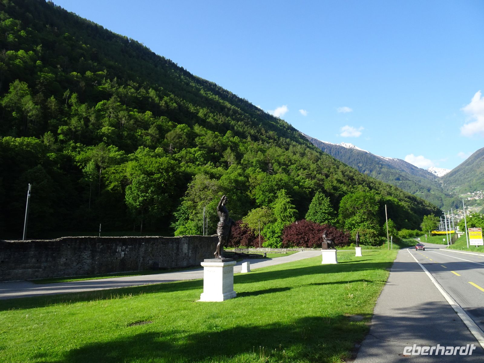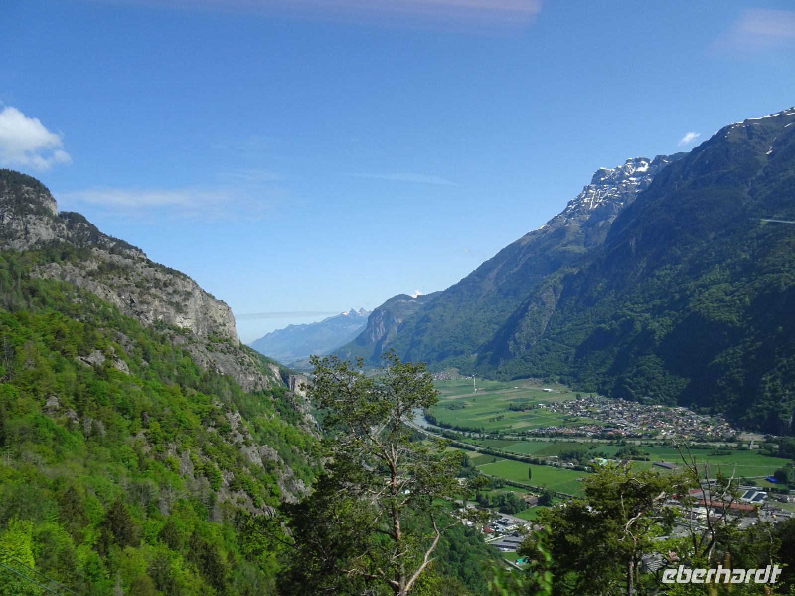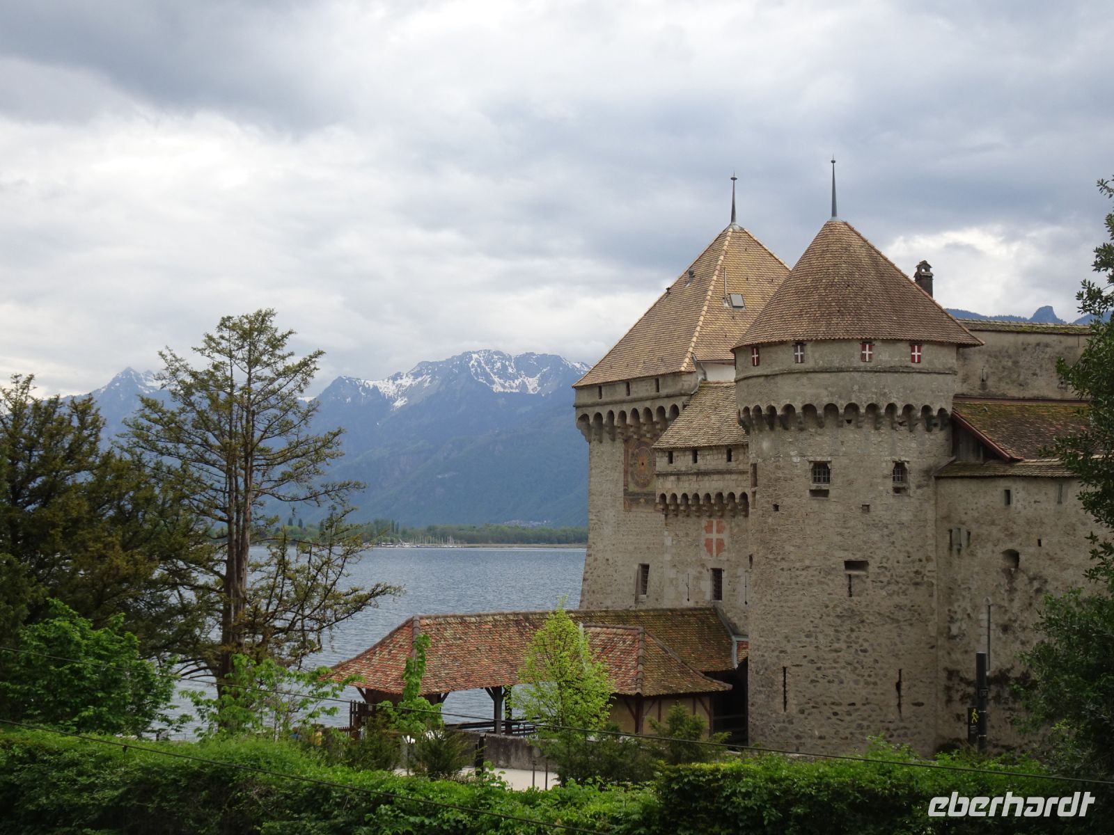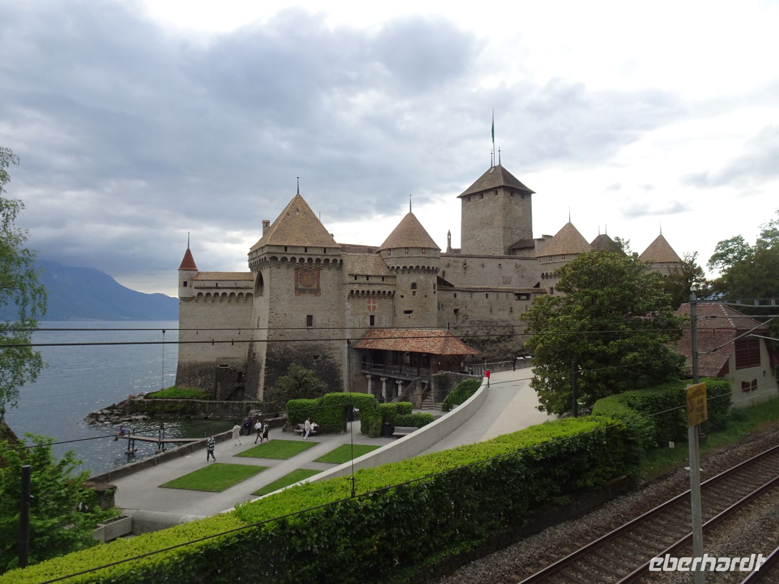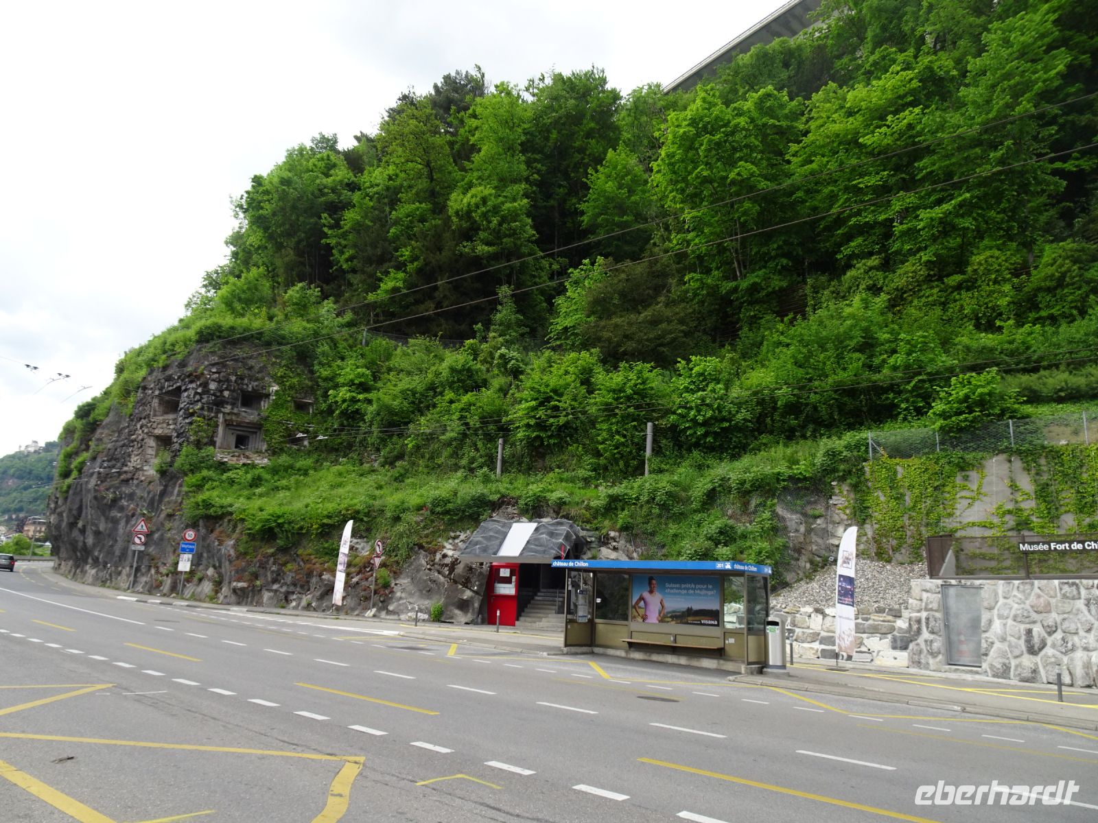 Auf dem Weg nach Martigny war am Wasserschloss Chillon ( bekannt durch das Gedicht von Lord Byron "The Prisoner of Chillon" - 1816) noch einmal Gelegenheit für einen Fotostopp. Das auf einem Felsen im See gelegene Schloss, die Berge "Dents du Midi" im Hintergrund und der Genfersee sind ein einmaliges Fotomotiv. Interessant an dieser schmalen Stelle auch das Fort Chillon mit einer kürzlich eröffneten Ausstellung zur Verteidigungsstrategie der Schweiz und den konkreten Maßnahmen an dieser strategisch wichtigen Stelle der schon von den Römern genutzten Verbindung zwischen Norditalien und Mitteleuropa.