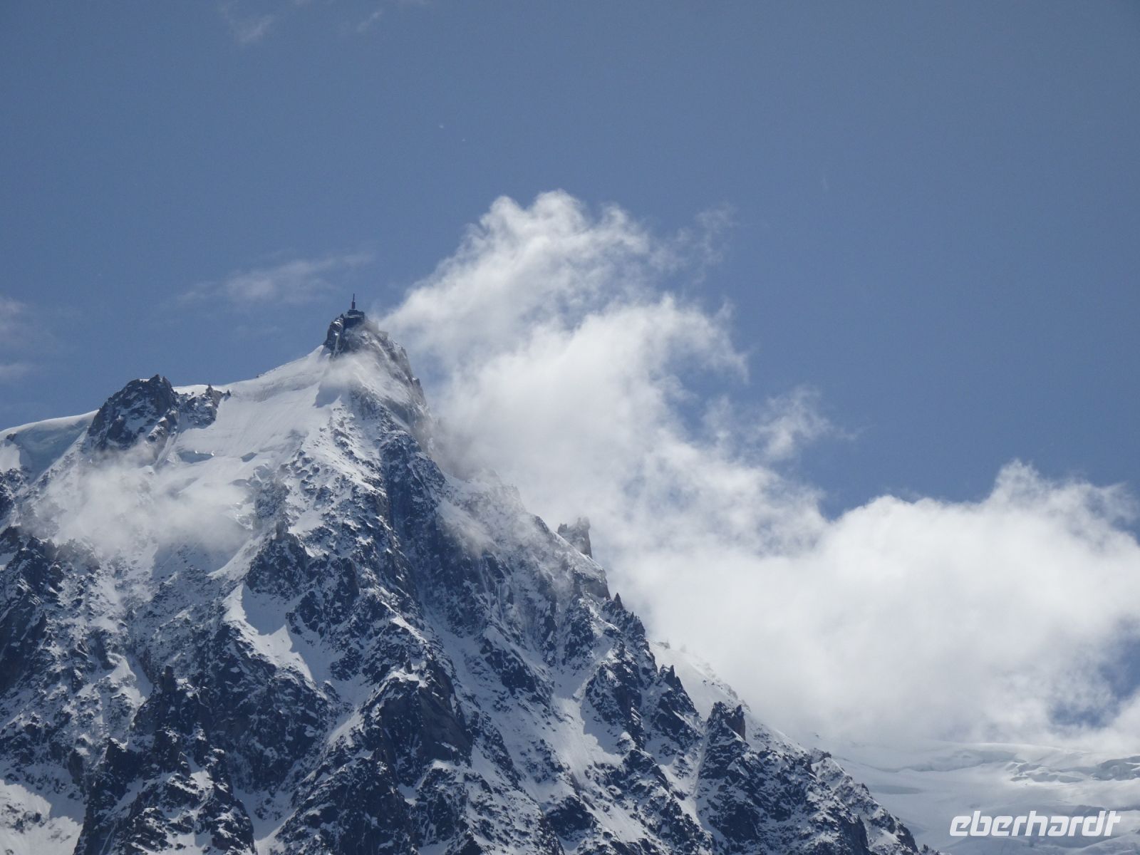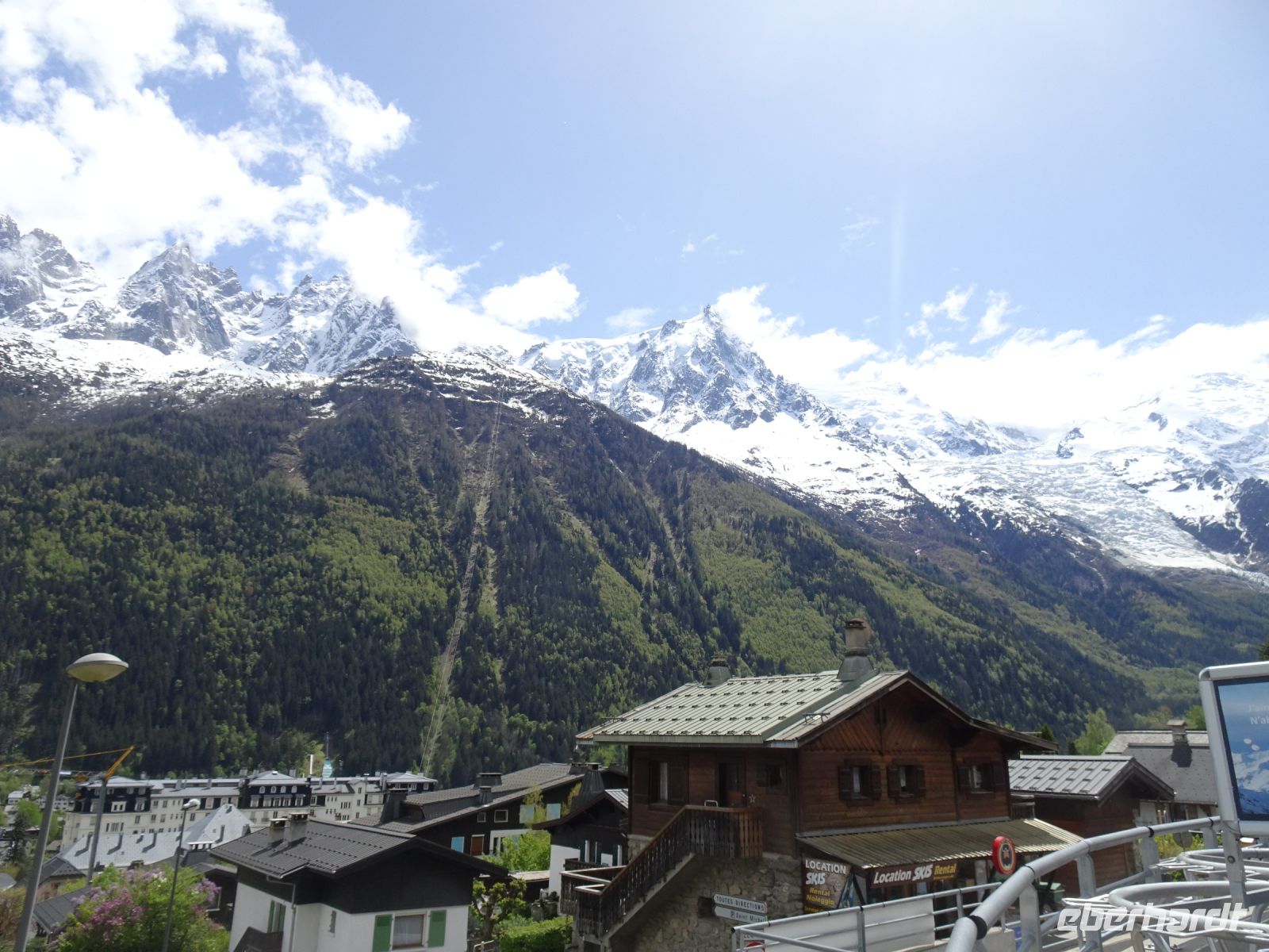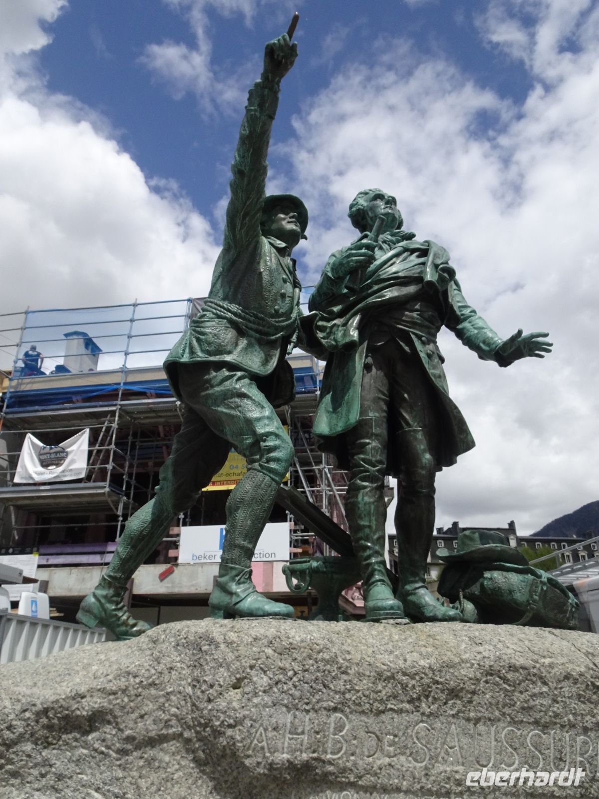Mit dem Rest der Gruppe ging der Reiseleiter anschließend durch den Ort Chamonix, gab einige Erläuterungen zu den Denkmälern der Erstbesteiger Jacques Balmat mit seinem Sponsor Horace Bénédict de Saussure und Michel-Gabriel Paccard. Weiter ging es zum Rathaus, zur Post und der touristisch geprägten Innenstadt. Der Reiz von Chamonix ist aber vor allem durch die umgebenden Berge gegeben. Die Interessenten für eine Auffahrt zum Aiguille du Midi erreichten pünktlich und ohne lange Warteschlange die Talstation. Bei bestem Wetter hatten sie wunderbare Eindrücke auf dem Aiguille du Midi (3.842m, 1955 eröffnet) mit Blick auf den Mont-Blanc und die anderen Berge sowie die Gletscher. Am Nachmittag ging unsere Fahrt dann weiter über St. Gervais und Albertville zu unserer heutigen Übernachtung im Grenobler Vorort Échirolles. Ein modernes Hotel "PoM" erwartete uns mit einem leckeren Abendessen.