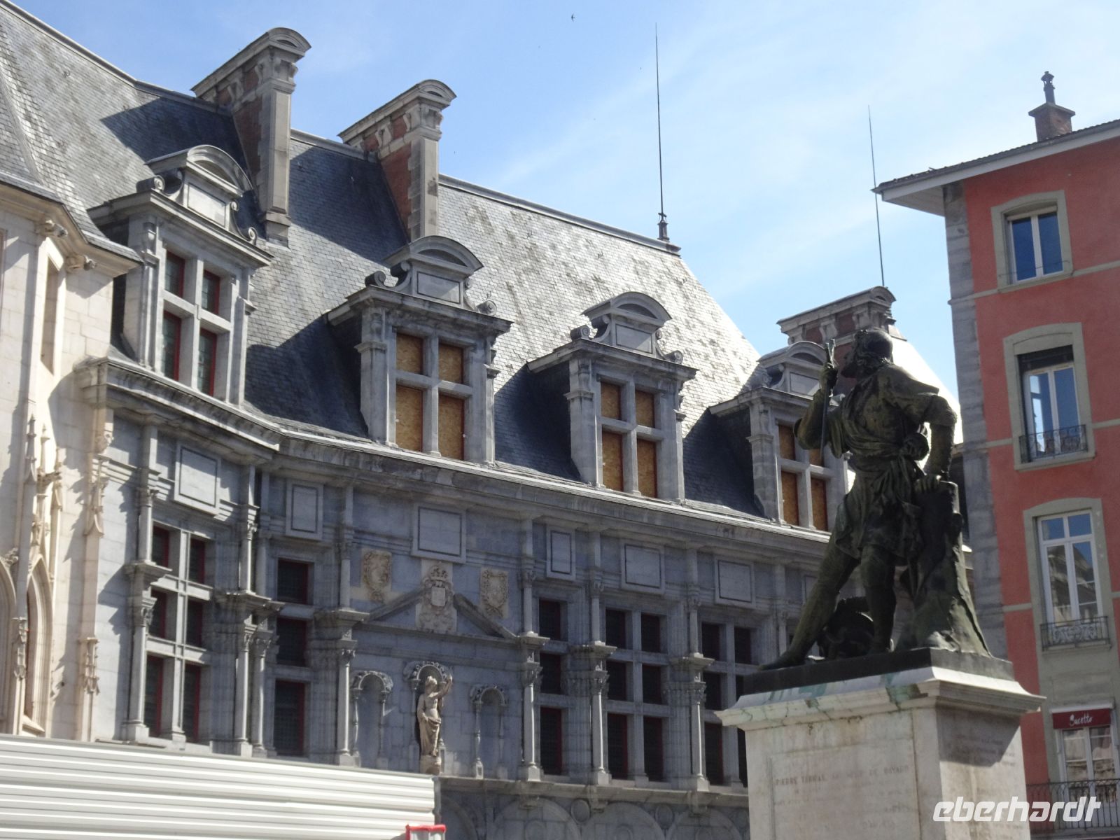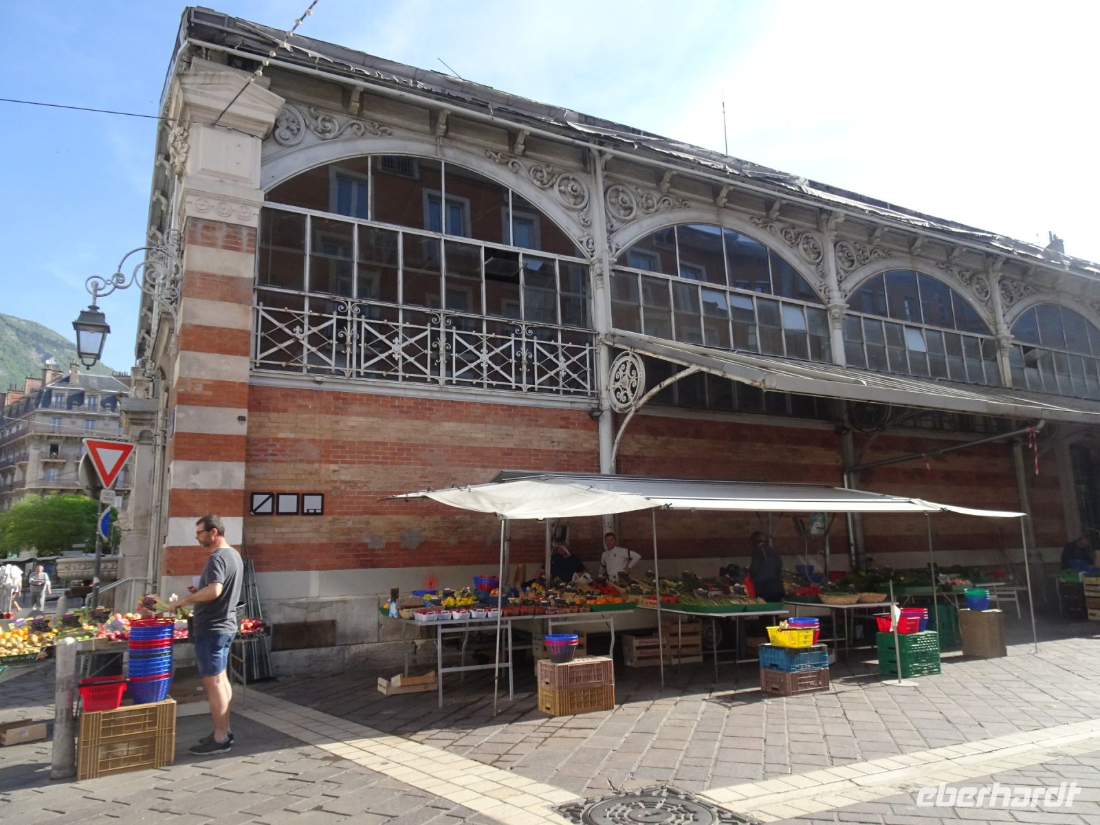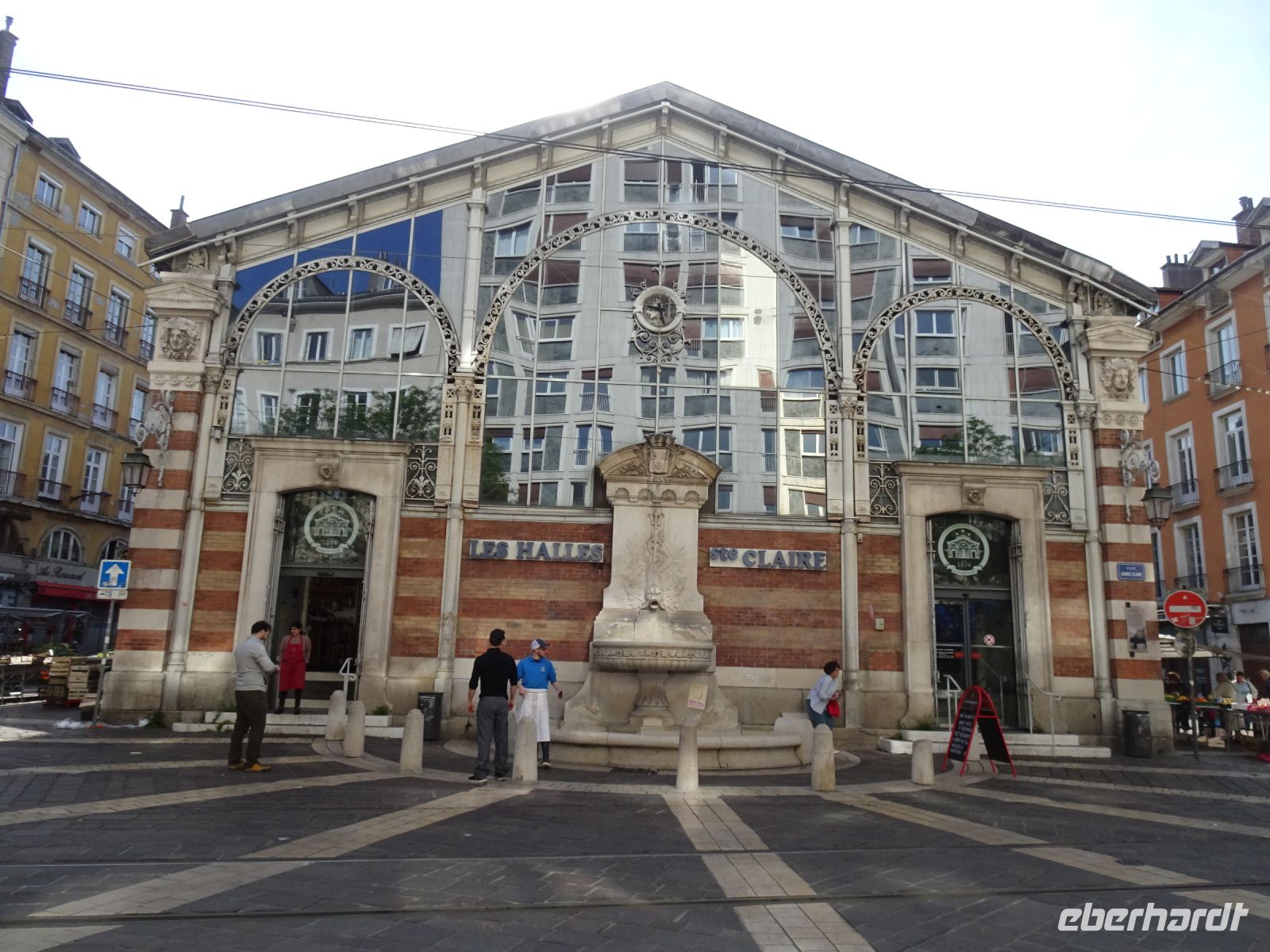 Am Morgen des nächsten Tages stand zuerst ein Stadtrundgang in Grenoble, gelegen an der Isére, auf der Tagesordnung. Über den Place Notre Dame mit der gleichnamigen Kirche ging es am Rande der Altstadt zunächst zur Markthalle St. Claire. Errichtet 1874 im Stil der alten Pariser Markthallen pulsiert hier heute noch ein reges Einkaufsleben mit vor allem reginaltypischen Erzeugnissen. Anschließend führte uns unser Weg zum Place de Verdun, dem früheren Paradeplatz, mit seinen monumentalen Bauten für heute die Präfektur und die Kommandozentrale der Gebirgsjäger. Durch belebte Einkaufsstraßen war unser nächstes Ziel der Place Grenette. Hier sollte eigentlich für die interessierten Gäste ein Petit Train zur Stadtrundfahrt starten, aber leider hatte dieser seine Fahrten in Grenoble noch nicht wieder aufgenommen.