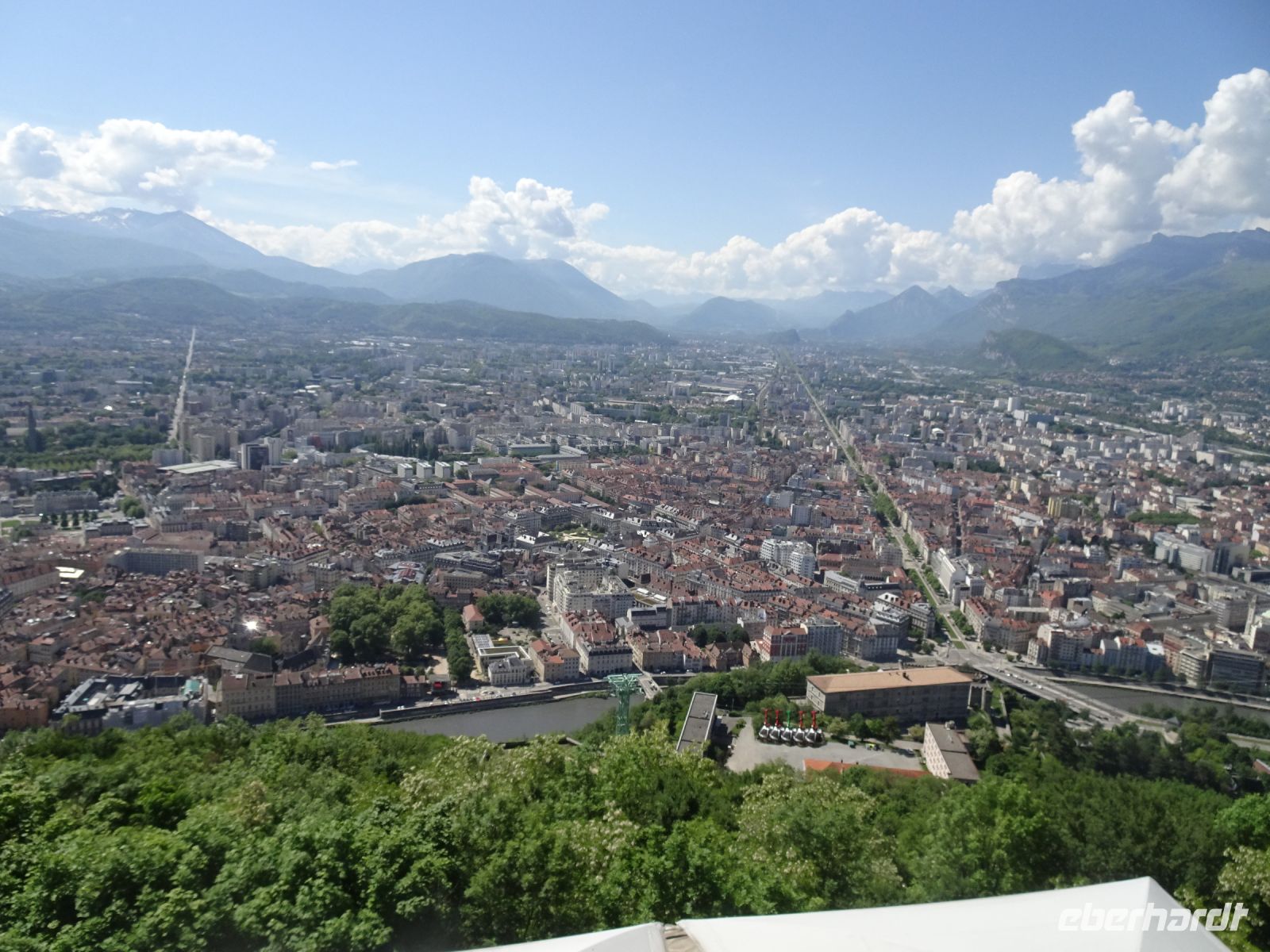 Bei wunderbarem Wetter hatten wir einen herrlichen Blick auf die Stadt Grenoble, das Olympische Dorf der X. Winterspiele 1968 in der Ferne und natürlich die die Stadt umgebenden Bergketten von Vercors, Chartreuse sowie Belledonne als westliche Ausläufer der Alpen mit teilweise über 3000 m Höhe. Die Schautafeln auf der Bastille gaben interessante Erläuterung zur Entwicklung der Stadt und zur Geschichte der Bastille. Anschließend bestand die Möglichkeit, auf eigene Faust die Stadt zu erkunden.