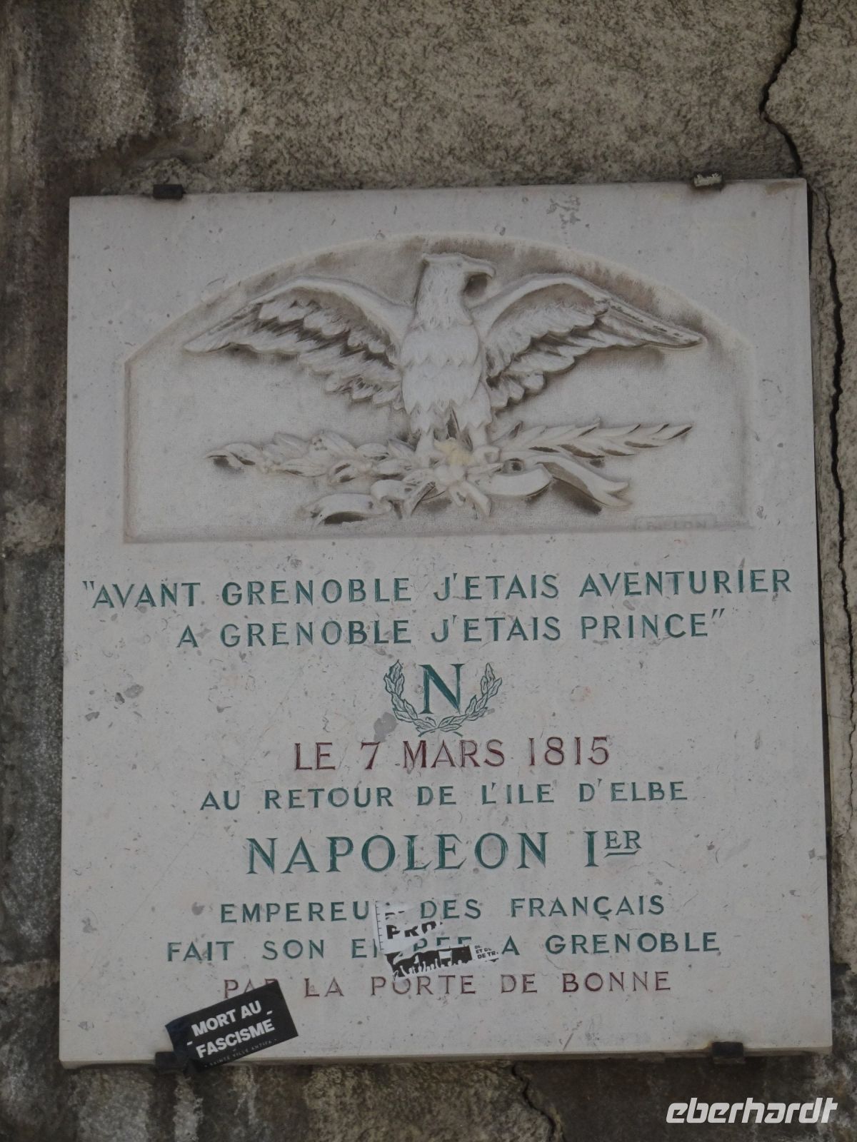 Napoleon (1769 - 1821) legte von der Insel Elba kommend mit Ziel Paris in einem Sieben-Tagesmarsch vom 1. - 7. März 1815 die etwa 314 km lange Strecke vom Golfe Juan bei Antibes bis nach Grenoble als Fußmarsch mit etwa 100 Getreuen zurück. Die von unserem Reiseleiter ausgegebene Karte gab dazu einen guten Überblick, wobei wir "nur" die Strecke bis Sisteron begleiteten.