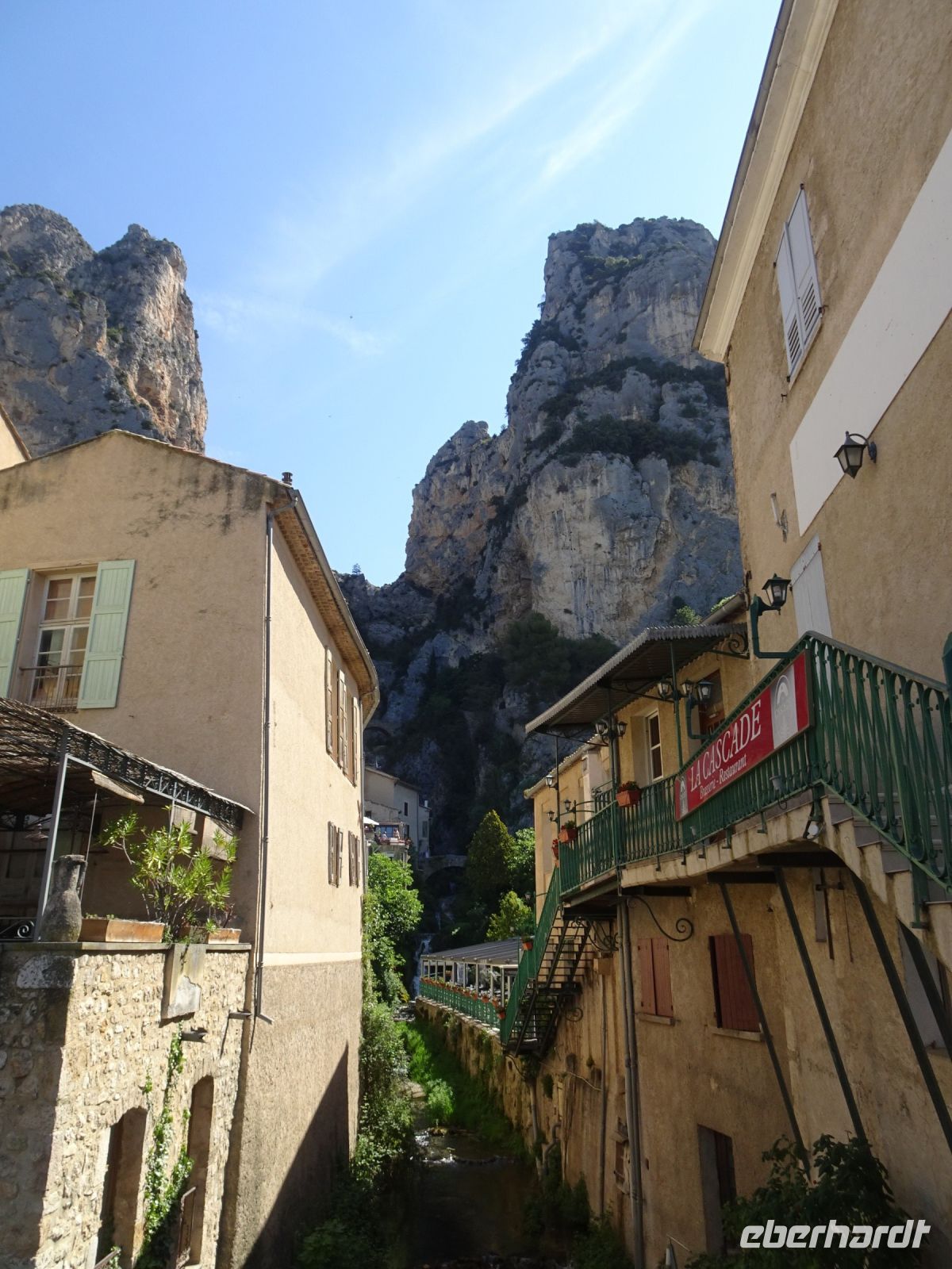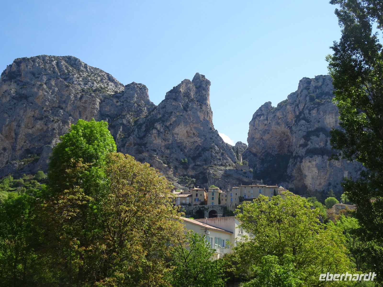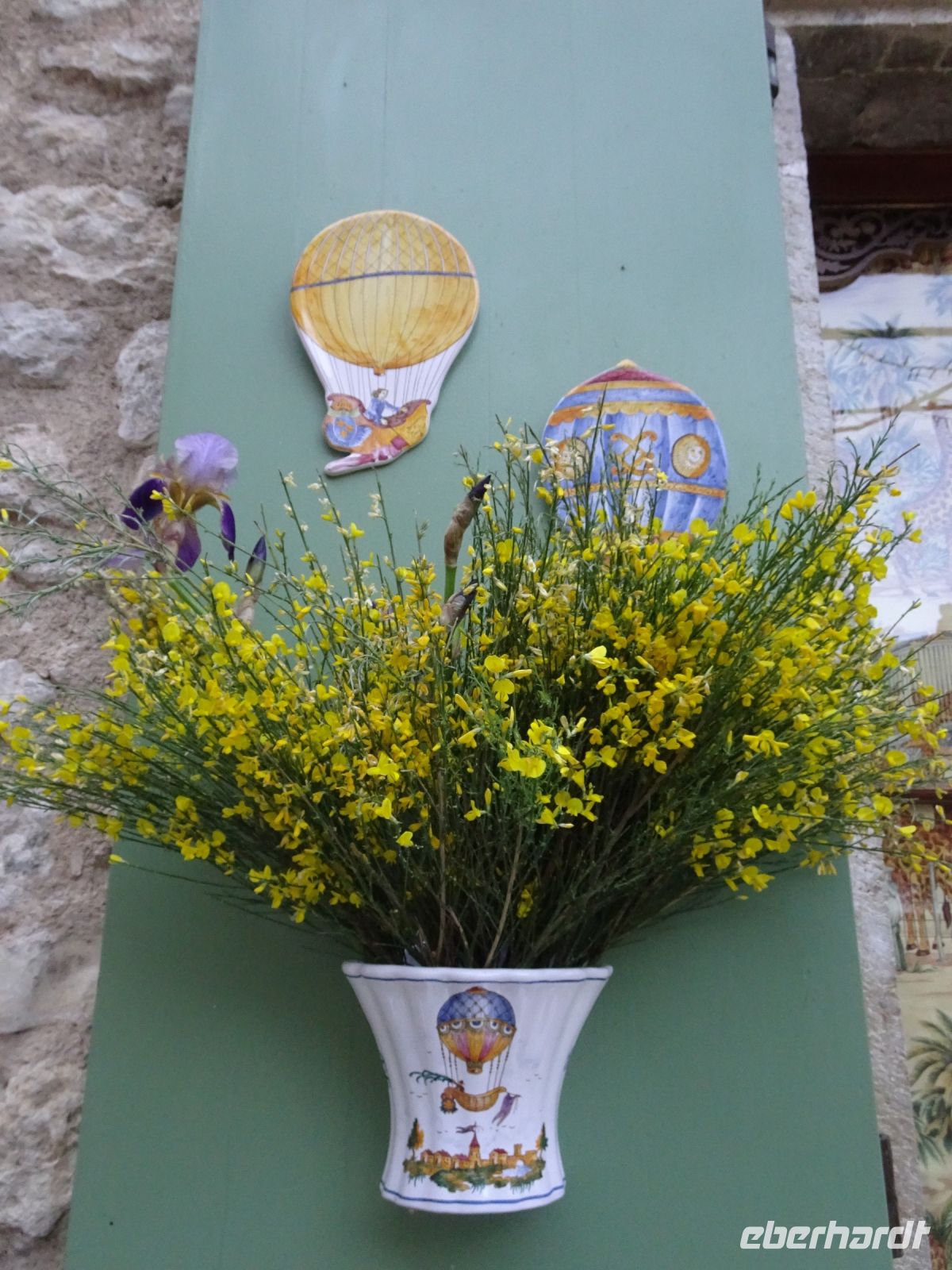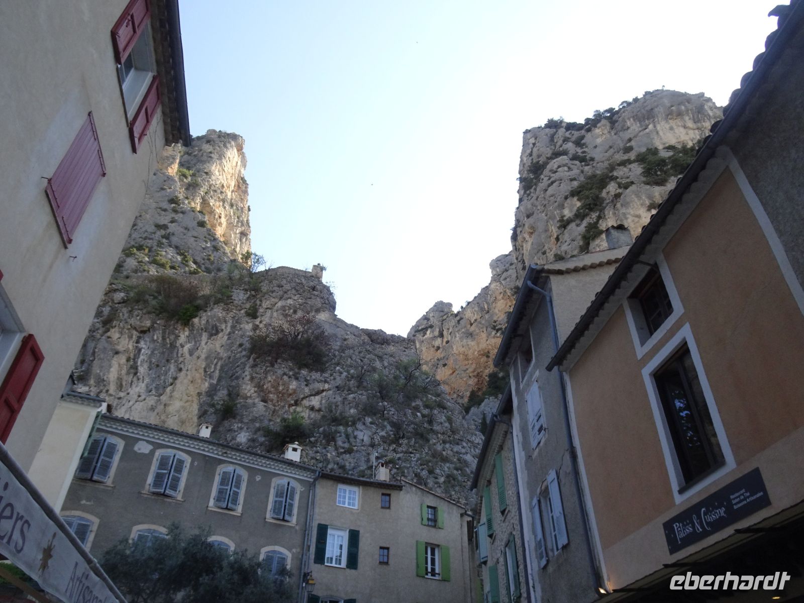 Eines der schönsten Dörfer Frankreichs ist der Ort Moustiers St. Marie, gelegen am Eingang der Verdon-Schlucht und oberhalb des Stausees Lac de St. Croix. Berühmt ist der Ort für seine amphitheaterartige Ortslage und seine Fayence-Handwerkskunst der Keramikherstellung. Da der Ort für Busse nicht geeignet ist, hieß es zu Fuß den etwa 15 minütigen Weg hinauf in den Ort zu wagen. Dabei hatten wir Gelegenheit, einem Fayencehandwerker bei seiner Tätigkeit zuzuschauen. Der Ort zog alle in seinen Bann. Gut, dass wir die Vorsaison nutzen konnten. So war der Ort noch nicht überlaufen.