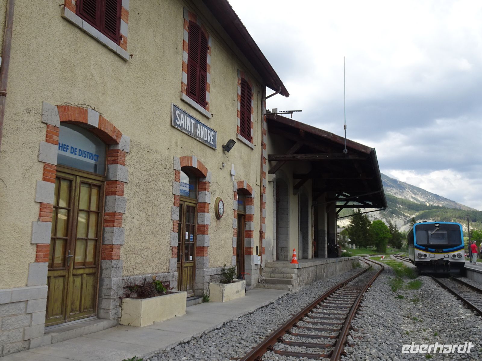 Einen wunderbaren Blick auf das türkisfarbene Wasser der Verdon hatten wir bei der Galetas-Brücke am Einlauf in den Stausee Lac de St. Croix. Weiter ging es mit unserem Bus über kurvenreiche und schmale Serpentinen bis auf eine Höhe von 1180 m, natürlich mit einigen Fotostopps, bis zur l´Artubybrücke. Aber die Schönheit der Landschaft ist mit Worten kaum zu beschreiben, freuen Sie sich an Ihren Fotos oder schauen Sie in die Bildergalerie. Kompliment hier besonders für unseren Busfahrer Sergey, der die engen Kurven und schmalen Straßen sehr gut meisterte. Wer sich einen Blick nach links erlaubte, sah welche tiefen Abgründe sich uns auftaten. Im letzten Abschnitt ging unsere Fahrt dann unmittelbar im Tal entlang an der Verdon nach Castellane. Kurzer Stopp, ein Überblick über den Ort und dann am Stausee vorbei nach St.-André-les-Alpes, wo unser Zug startete.