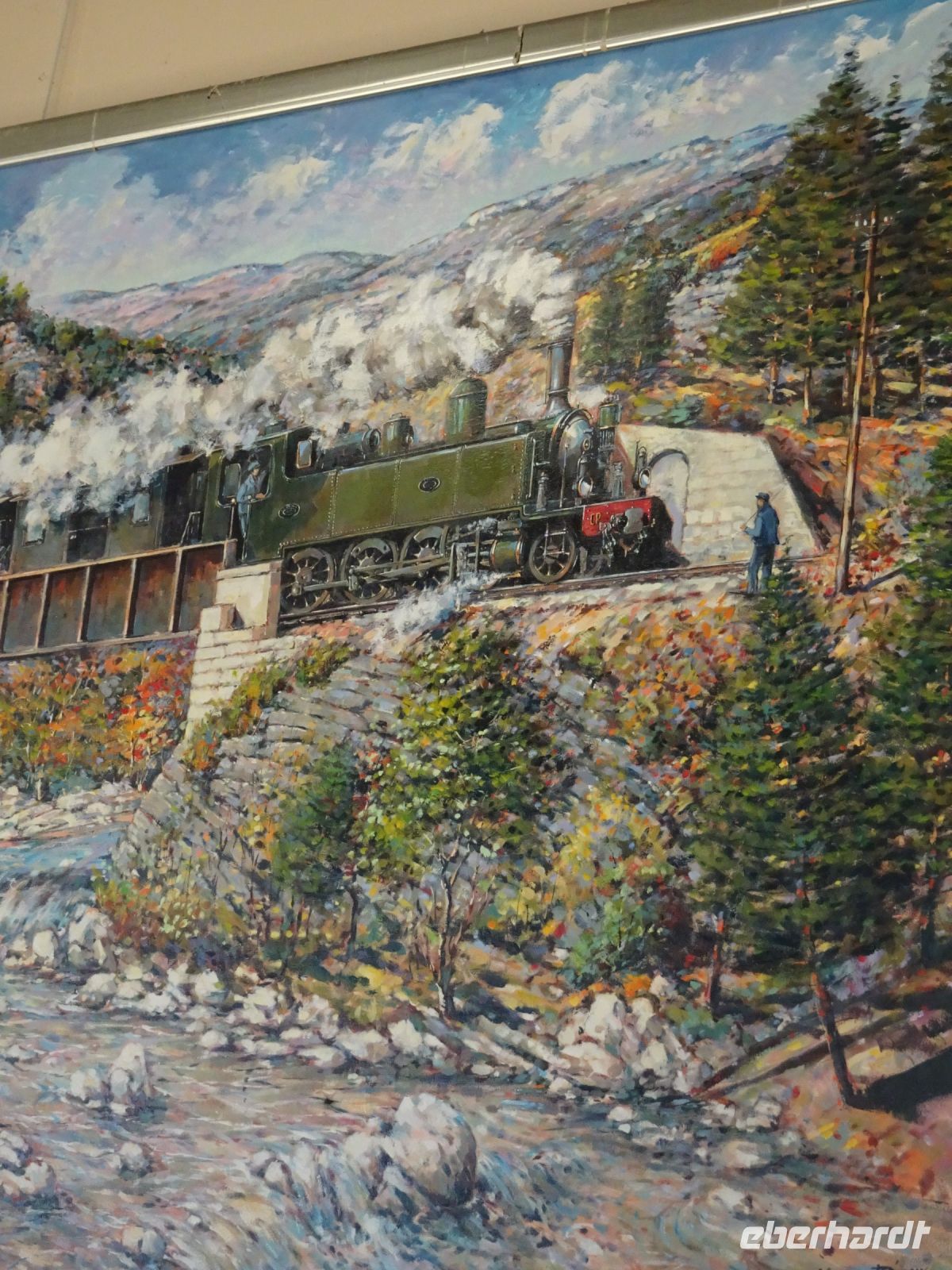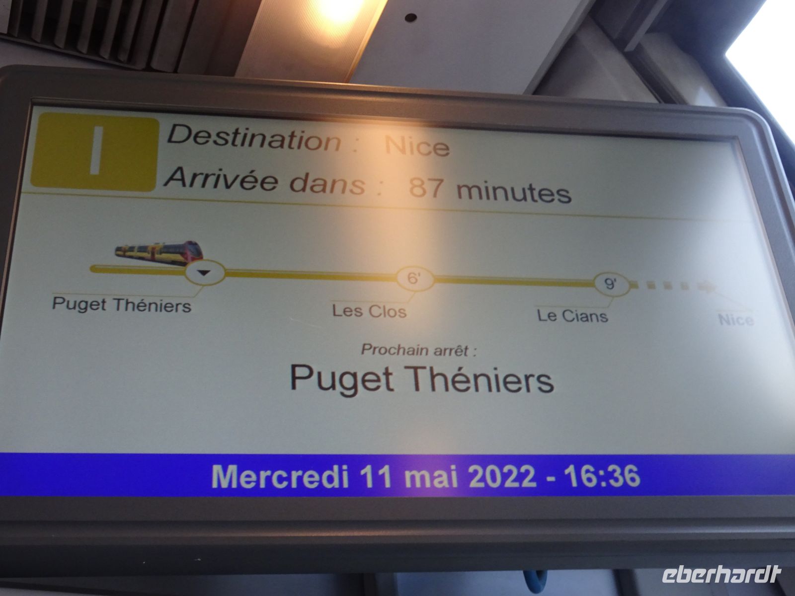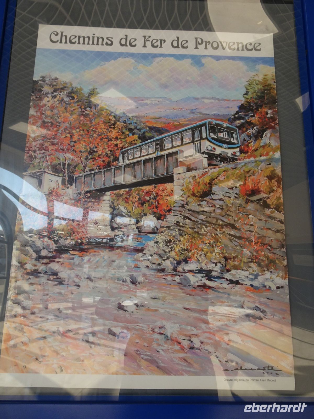 "Pinienzapfenzug" zwischen Nizza und St.-André-les-Alpes - abschnittsweise in Betrieb genommen zwischen 1892 und 1911 - wurde früher mit Dampf-, später mit Dieselzügen betrieben. Und wegen der vielen Steigungen nutzten die Reisenden die Fahrt, um Pinienzapfen für die häusliche Heizung zu sammeln. Allerdings ist der historische Pinienzapfenzug nicht mehr mit dem modernen Nahverkehrszug von heute zu vergleichen. In zweieinhalb Stunden ging es entlang dem Fluss Var nach Nizza. Auch hier wieder beeindruckende Landschaften, hohe Berge und kleinere Orte, die aber zunehmend auch wirtschaftlich geprägt wurden und die Nähe zu Nizza zeigten.