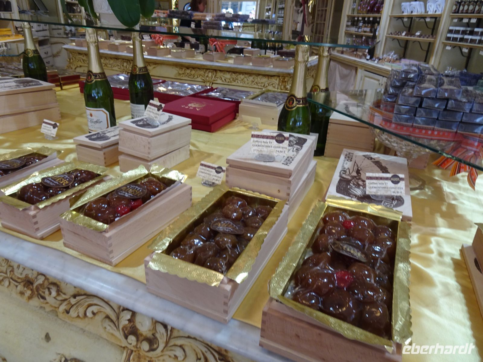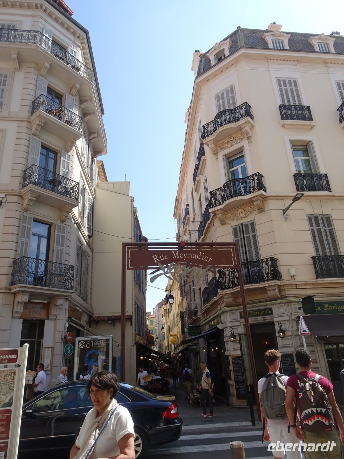 Wer es wollte, besuchte diese Orte mit mehr Beschaulichkeit und der Gelegenheit, sich Details und Besonderheiten anzusehen, mit unserem Reiseleiter zu Fuß. So stiegen wir zuerst zum Mont Chevalier auf und hatten so die Möglichkeit, die Altstadt und den Hafen mit seinen unzähligen protzigen Yachten und Schiffen quasi von oben zu bewundern und zu bestaunen. Besonders interessant war beim Gang durch die Altstadt von Cannes wiederum die Markthalle, der wir einen kurzen Besuch abstatteten. Wir erfreuten uns an dem vielfältigen Angebot und haben auch in den engen Gassen allerhand touristische und kulinarische Angebote genossen. In Richtung zur Croisette dann der Übergang zu den Luxusboutiquen und Luxushotels (Cannes soll davon in Frankreich die höchste Dichte haben!!)