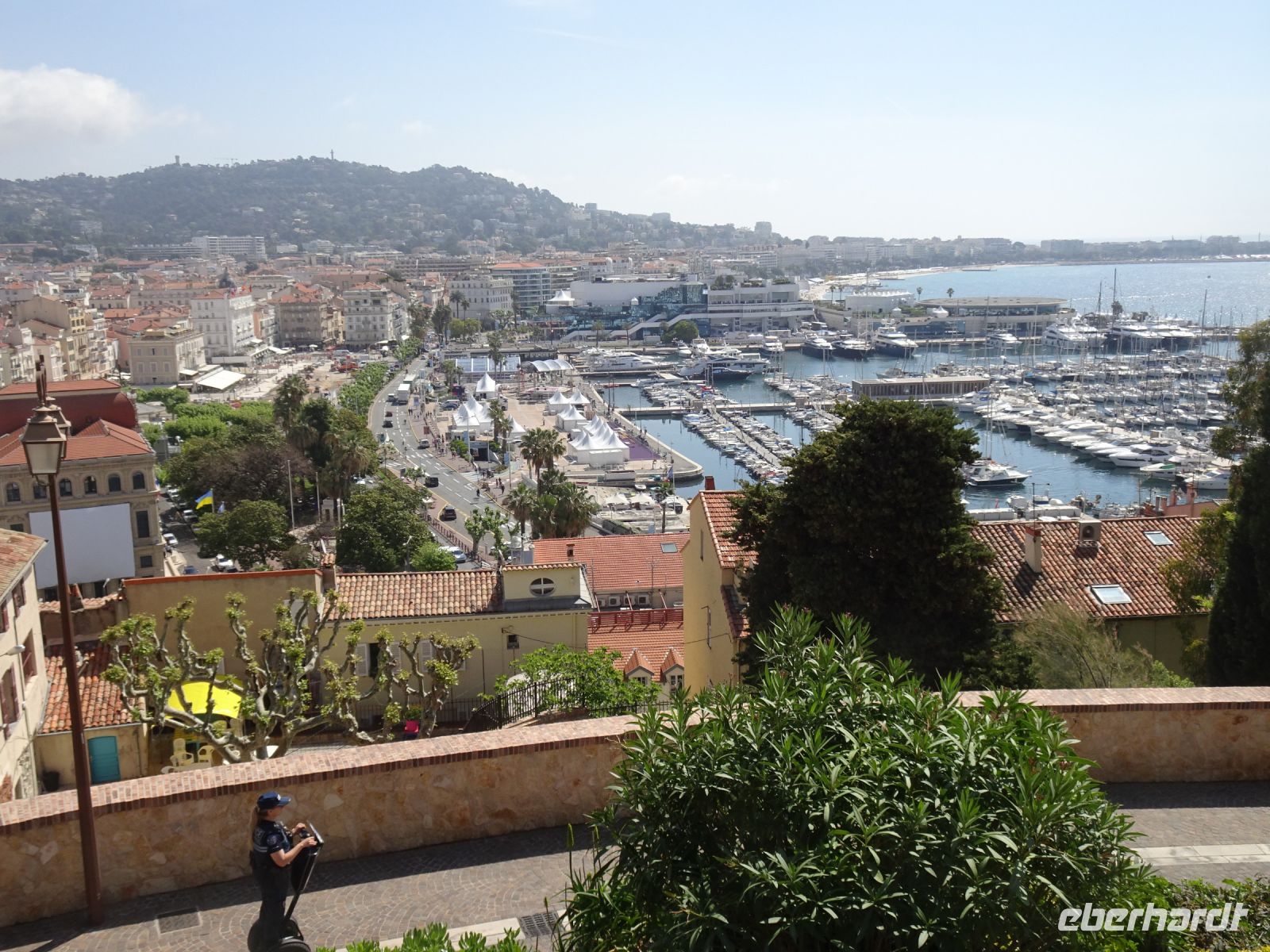 Am nächsten Tag entschädigte uns dafür aber wieder ein umfangreiches Frühstücksbuffet. Anschließend ging es weiter nach Cannes. Auch dort stand ein großes Ereignis bevor: die 70. Internationalen Filmfestspiele in wenigen Tagen. Entsprechend quirlig ging es auf dem Boulevard de la Croisette mit dem Festivalpalst zu. Wir konnten unseren Bus doch sehr zentral am Hafen abstellen. Wer wollte hatte nunmehr die Gelegenheit, mit dem Petit Train Nizza zu erkunden. Entlang der Croisette mit umfassenden Erläuterungen wer mit wem in welchem Hotel was gemacht hatte ging es danach durch die Altstadt le Suquet auf den Mont Cevalier mit Schloss und Kapelle St.-Anne.