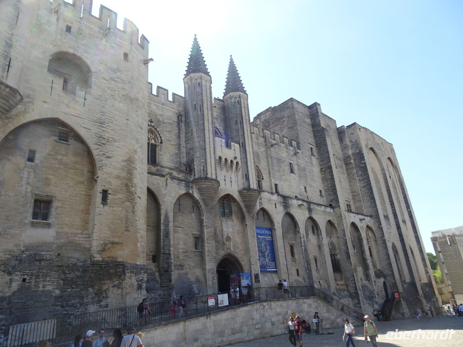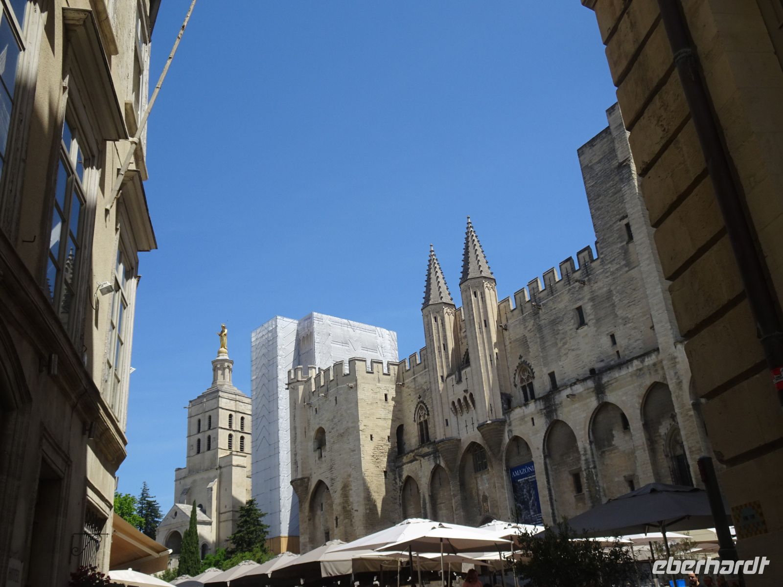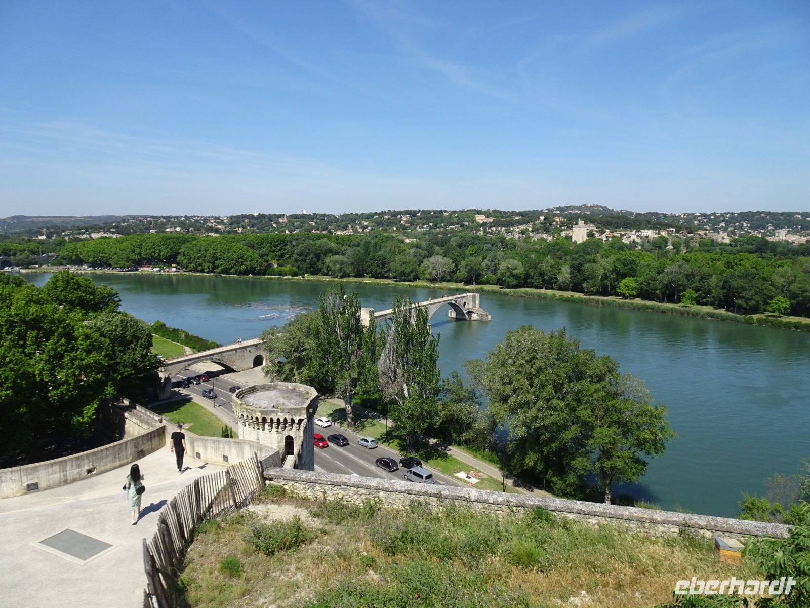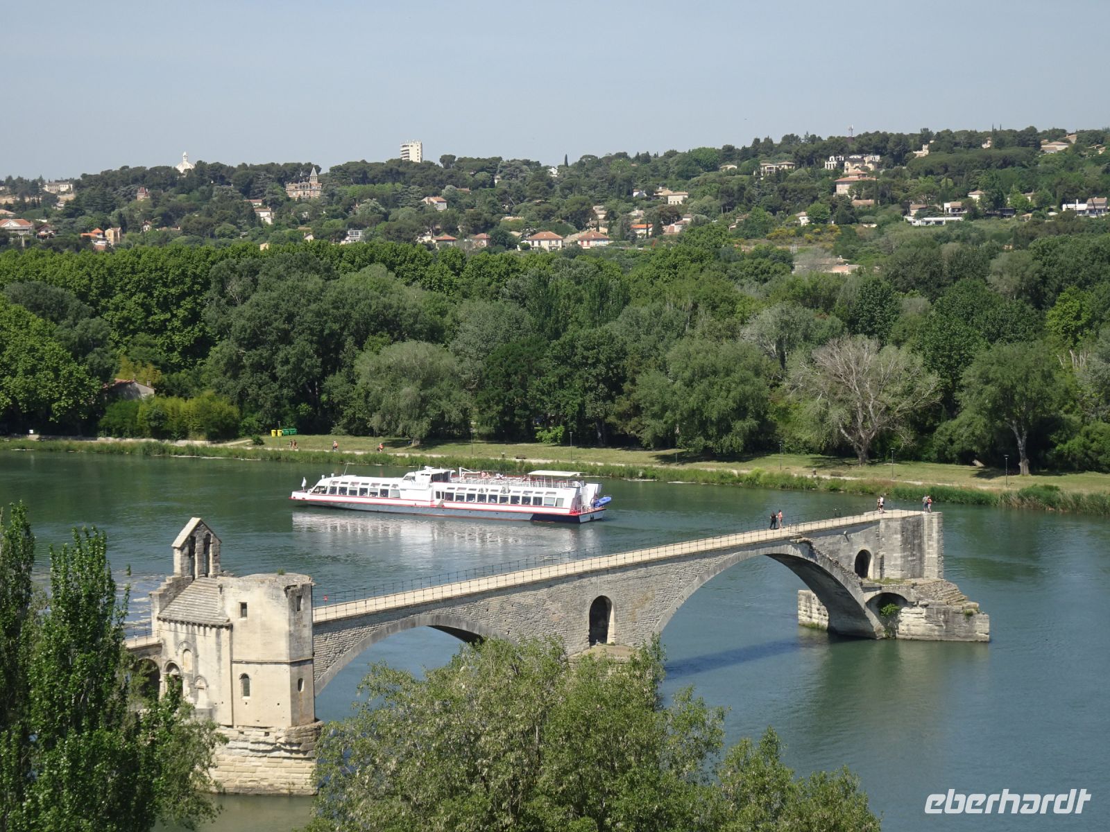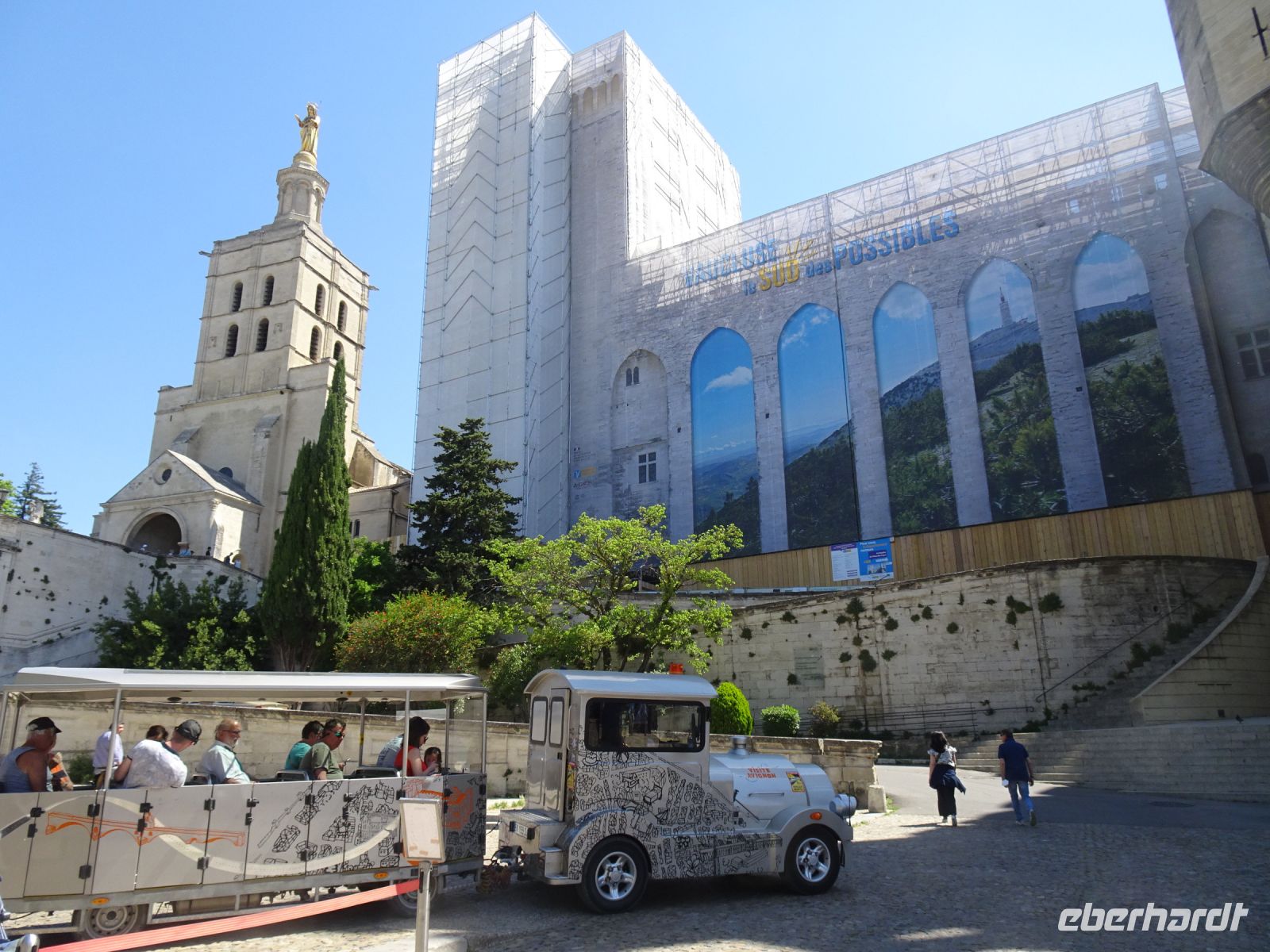 Am nächsten Reisetag hieß es mal wieder Koffer packen und wir fuhren mit dem Bus weiter nach Avignon. Hier stoppten wir an der Pont St. Bénézet, die durch das Kinderlied "sure le pont..." sehr bekannt ist. Viele unserer Reisegäste summten dieses Lied und erinnerten sich auch an den Spatz von Avignon - Mireille Mathieu. Leider konnten wir die Brücke St. Bénézet über die Rhone nicht kostenfrei besichtigen. Einige Reisegäste besuchten in der Freizeit dann doch noch die Brücke. Gemeinsam ging es mit unserem Reiseleiter zum Platz vor dem Papstpalast. Avignon war von 1309 - 1376 Sitz von 7 Päpsten, die sich im sogenannten "Babylonischen Exil" befanden. Bis 1403 gab es dann in Avignon noch zwei Gegenpäpste. Unser Reiseleiter gab einige Erläuterungen zu den den Platz säumenden kirchlichen und musealen Gebäuden und Palästen. Anschließend gingen wir auf den Rocher des Doms, wo wir einen nunmehr kostenfreien Ausblick auf die Pont St. Bénézet hatten. Zurück auf dem Platz des Papstpalastes gab es Zeit zur freies Verfügung mit der Möglichkeit, den Papstpalast zu besuchen, die Altstadt zu erkunden oder auch hier mit einem Petit Train eine kleine Stadtrundfahrt mit Erläuterungen zu erleben.