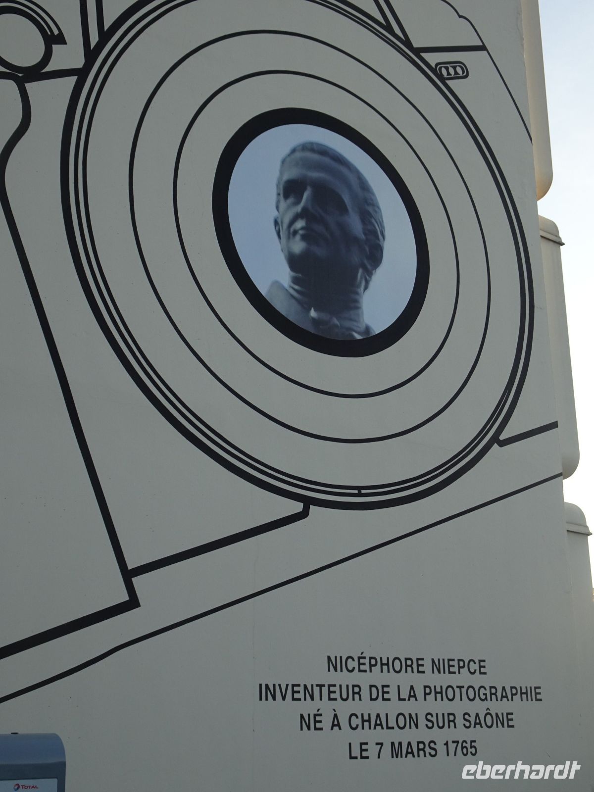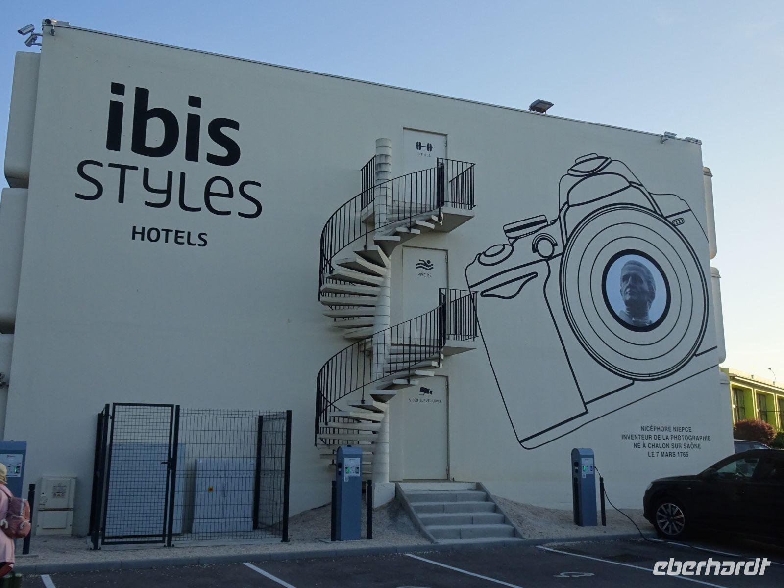 Der Ort ist auch der Geburtsort der Heliografie (einer Vorstufe der Fotografie) des Franzosen Joseph Niepce (1765 - 1833). Dies konnten wir an unserem Hotel dem "IBIS Styles" erkennen. Aber wir wollten mit dieser Reise ja auch Anregungen für zukünftige Reisen erhalten...