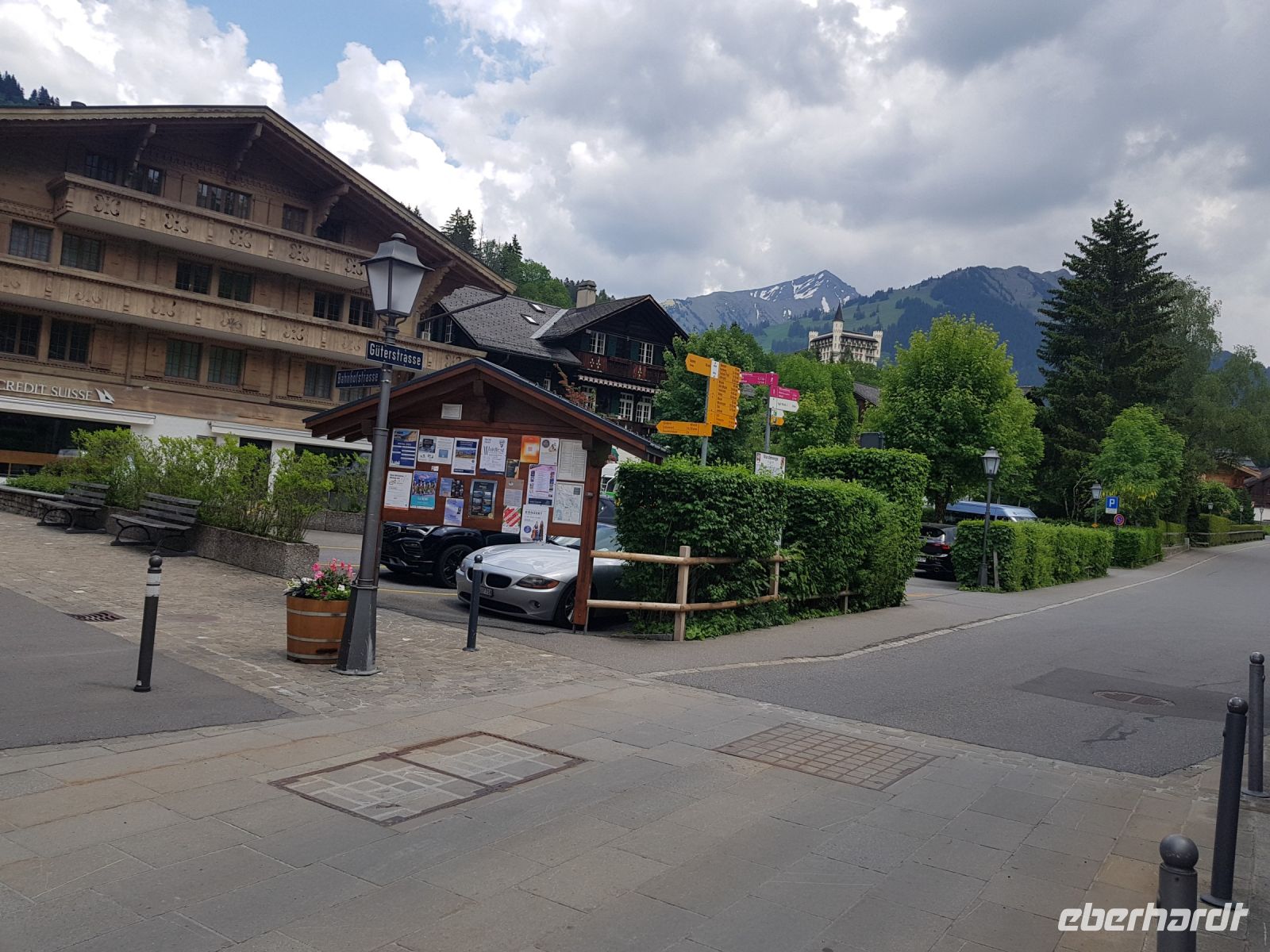 Dann fuhren wir weiter nach Gstaat. Hier stiegen wir in unseren ersten Alpenzug, den Golden Pass Panoramic, der uns zunächst ein wunderbares Panorama bot. Wenig später jedoch fiel unserer Aussicht regelrecht ins Wasser wahrer Regengüsse, die auf unseren Zug nieder gingen. Zum Glück war es bei unserer Ankunft in Montreux wieder halbwegs trocken, so dass wir einen Spaziergang auf der berühmten Seepromenade unternehmen konnten. Hier zieht es jeden erst einmal zur Skulptur des legendären Sängers Freddie Mercury, Mitbegründer der britischen Rockband Queen. Natürlich dachten wir hier auch an den durch eine Leuchtrakete ausgelösten Brand des Casino, der die britische Rockband Deep Purple zu dem Titel „Smoke on the water“ inspirierte.