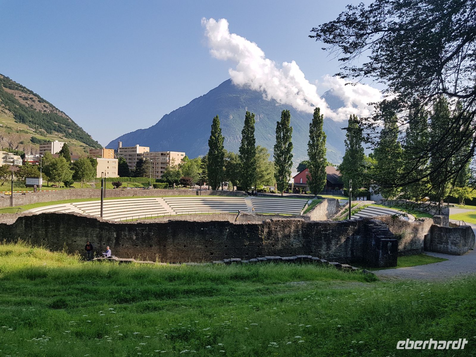 Vor unserer Abfahrt mit dem Mont Blanc Express besichtigten wir in Martigny das kleine Amphitheater des 57 v. Chr. Vicus Octodurus und im 1. Jahrhundert n. Chr. Forum Claudii Augusti oder Forum Claudii Vallensium genannten Ortes, aus dem sich in den folgenden Jahrhunderten das heutige Martigny entwickeln sollte. Dem gegenüber manifestiert sich die mittelalterliche Geschichte des Ortes in der Burg La Bâtiaz, die einst von dem Bischof von Sitten errichtet wurde und die heute erhaben über dem Ort thront.