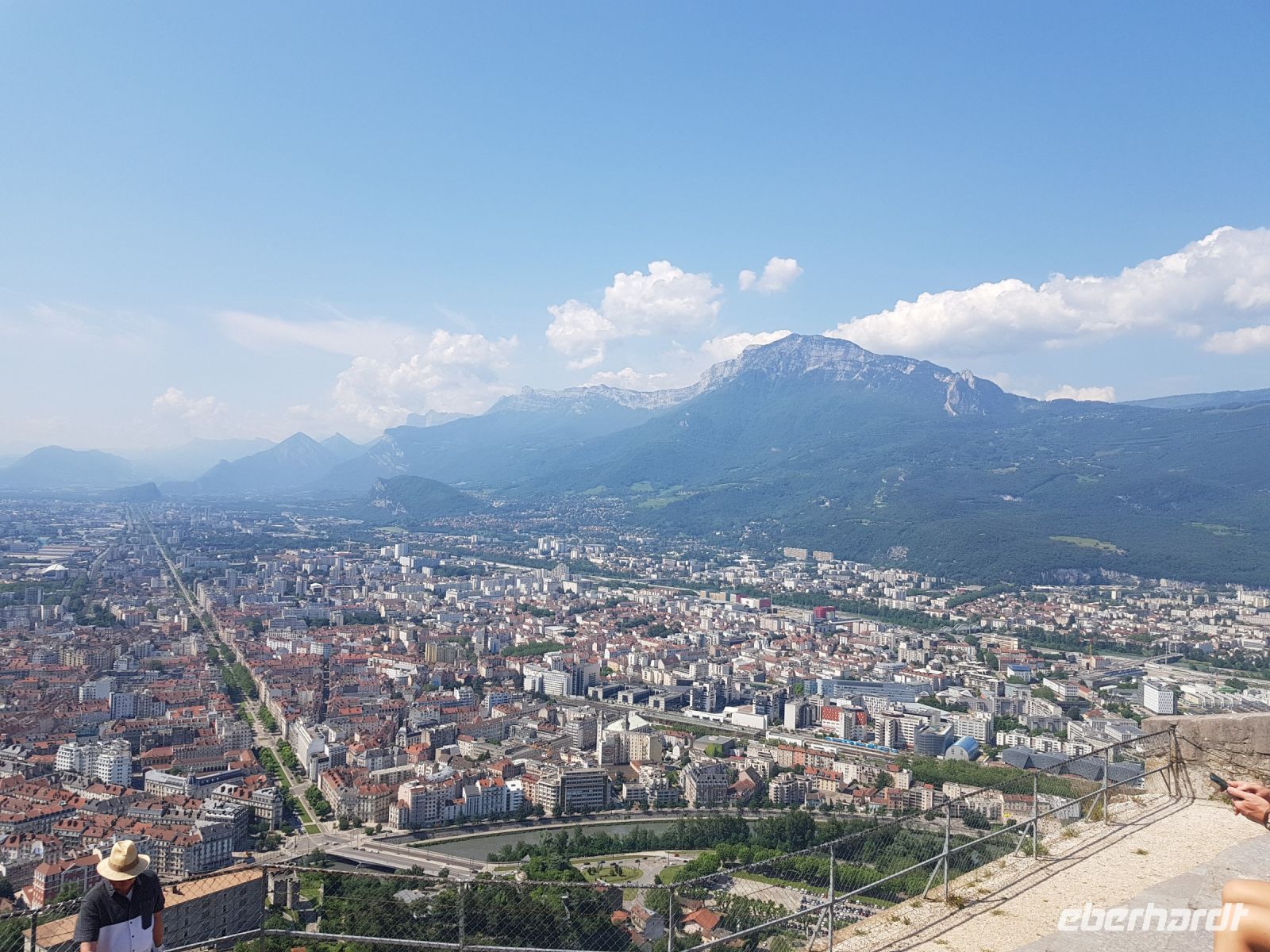 Dann ging es mit der Kabinenbahn Télépherique de Grenoble über die Isère hoch hinauf zur Bastille. Die einstige Burg wurde nach dem Deutsch-Französischen Krieg zur Grenzfestung ausgebaut. Von hier hat man einen großartigen Blick nicht nur über die Stadt und Metropolregion von Grenoble sondern vor allem auf die umliegenden Höhenzüge der Chartreuse.