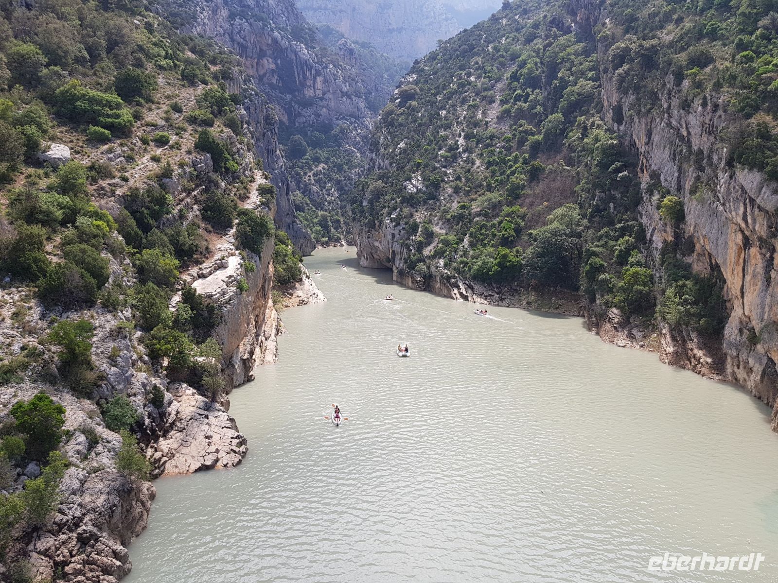 Zunächst machten wir am Eingang der Schlucht und dem großen Stausee Lac de St. Croix einen Fotostopp. Schon hier beeindruckten uns die gewaltigen Felsen, die dem Fluss Verdon nur ein schmales Bett lassen. Dann zog uns eine Landschaftssensation nach der Anderen in den Bann. Schließlich jedoch wurde klar, dass sich diese großartigen Naturszenerien kaum fotografieren lassen und das man sie lieber voll und ganz genießen sollte.