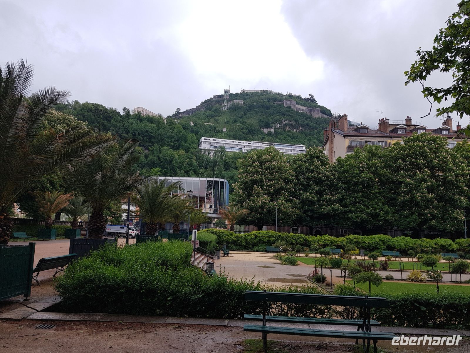 Anschließend fuhren wir mit der Seilbahn hinauf zur Bastille von Grenoble. Da jedoch der Regen zunahm, die Sicht aufgrund des Wetters sehr schlecht und das Restaurant auch nicht geöffnet war, fuhren wir bald wieder hinunter und setzten unsere Reise nach Süden fort.