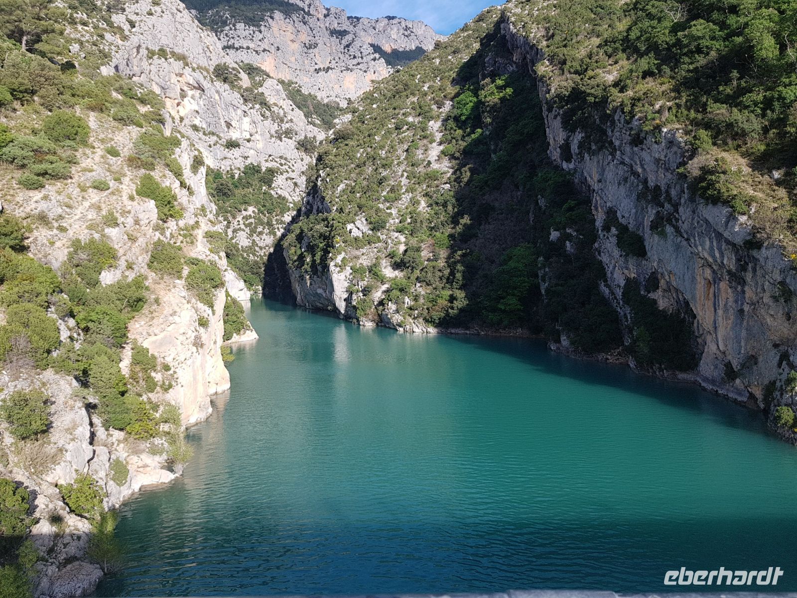 Während unserer Fahrt in die Provence hellte sich der Himmel auf, so dass uns im Dörfchen Moustiers-Sainte-Marie warmes, sonniges Wetter überraschte. Nach einem Rundgang durch dieses idyllische Dörfchen fuhren wir zum in unmittelbarer Nähe gelegenen Canyon du Verdon, der Verdon-Schlucht, die uns im milden Licht des späten Nachmittags als besonders photogen erwartete. Das hellgrüne Wasser des Verdon, auf dem Sonnenstrahlen spielten, bildete mit den imposanten Felswänden der Schlucht faszinierende Kontraste.