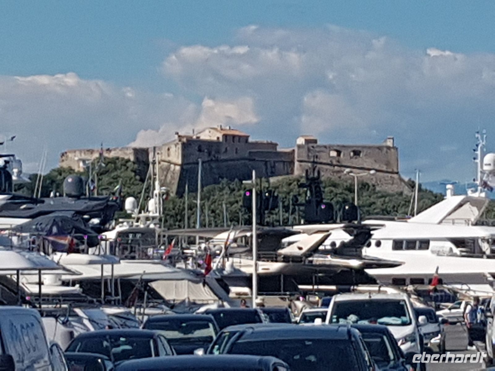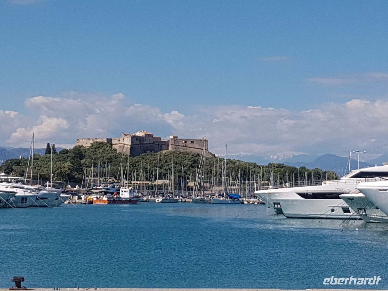 Nach einem guten Frühstück starteten wir am Morgen zu einem weiteren Ausflug an der Côte d'Azur, der uns heute in das mondäne Cannes und die alte Hafenstadt Antibes bringen sollte. In Cannes angekommen erklommen wir zunächst den Mont Chevalier, auf dem das Altstadtviertel von Cannes liegt. Zuerst besuchten wir die dortige Kirche Notre Dame de l'Espérance, gingen zum Aussichtspunkt an der Burg und genossen eine grandiose Aussicht über Cannes, die „La Croisette“ genannte Meerespromenade und die Inseln „Ils des Lerins“ in der Bucht von Cannes.
