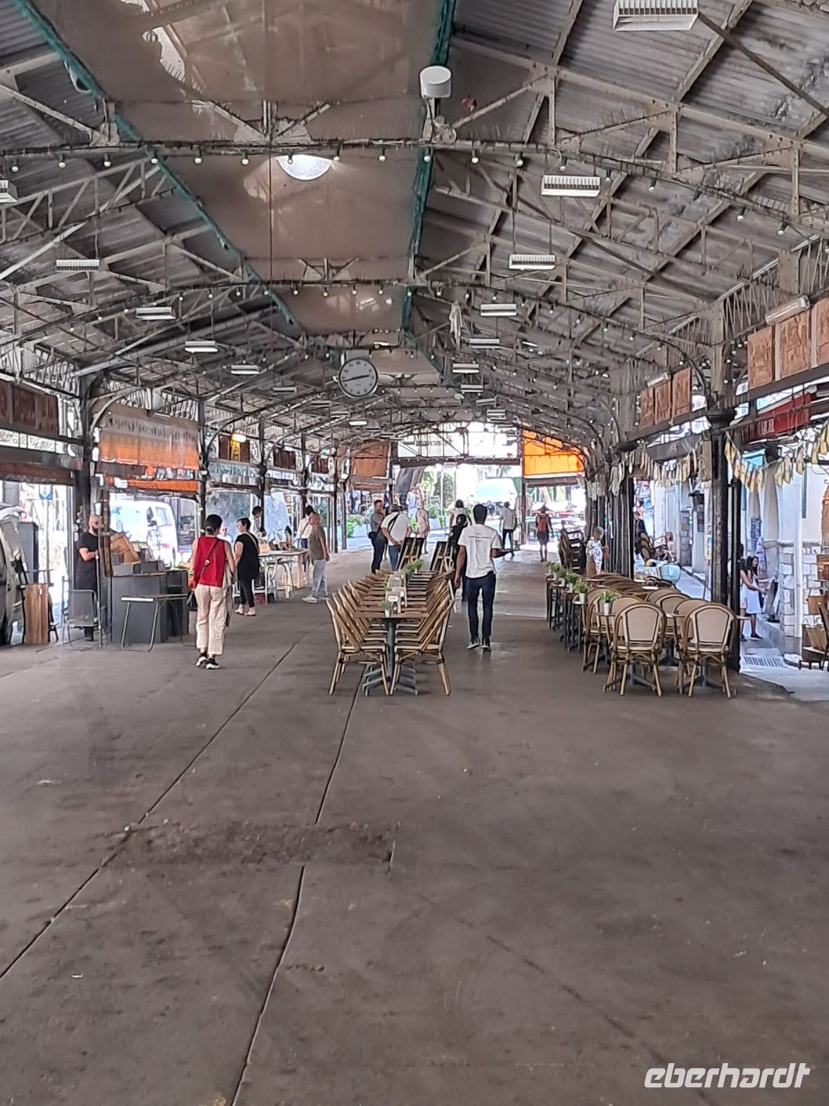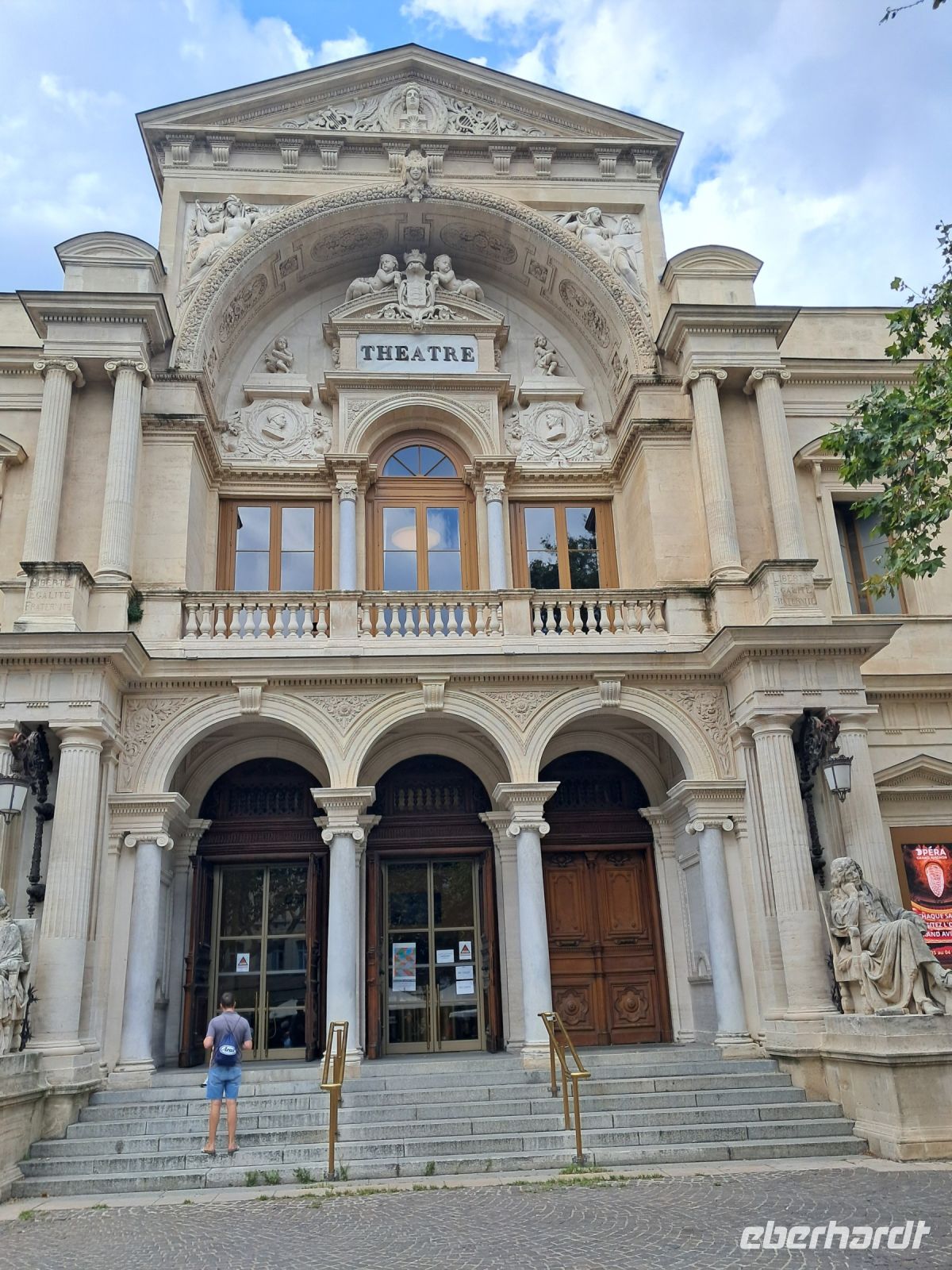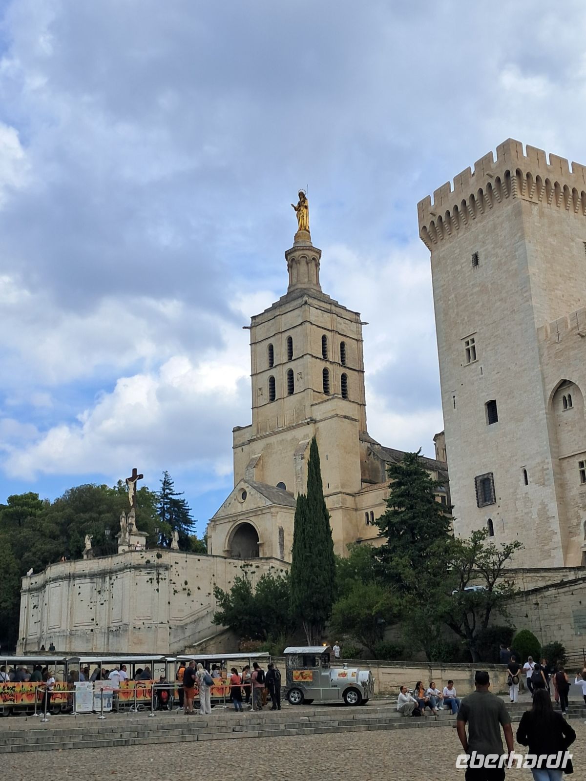 An einem Samstag in Avignon, gut, entspricht nicht ganz dem Original von Mireille Mathieu, da tanzen wir unter der Brücke von Avignon. Ok, auch nicht so ganz korrekt. Auf die Brücke haben wir es nämlich nicht geschafft, denn wir wollten ja noch die Markthalle sehen, den Place de l`Horloge mit seinem Glockenturm und dem dortigen Theater und ganz am Schluss den Papstpalast. Einige Teilnehmende haben sogar das Glück, kostenlos dort eintreten zu dürfen, weil wegen einer Reparatur nicht alle Räumlichkeiten zu sehen waren.